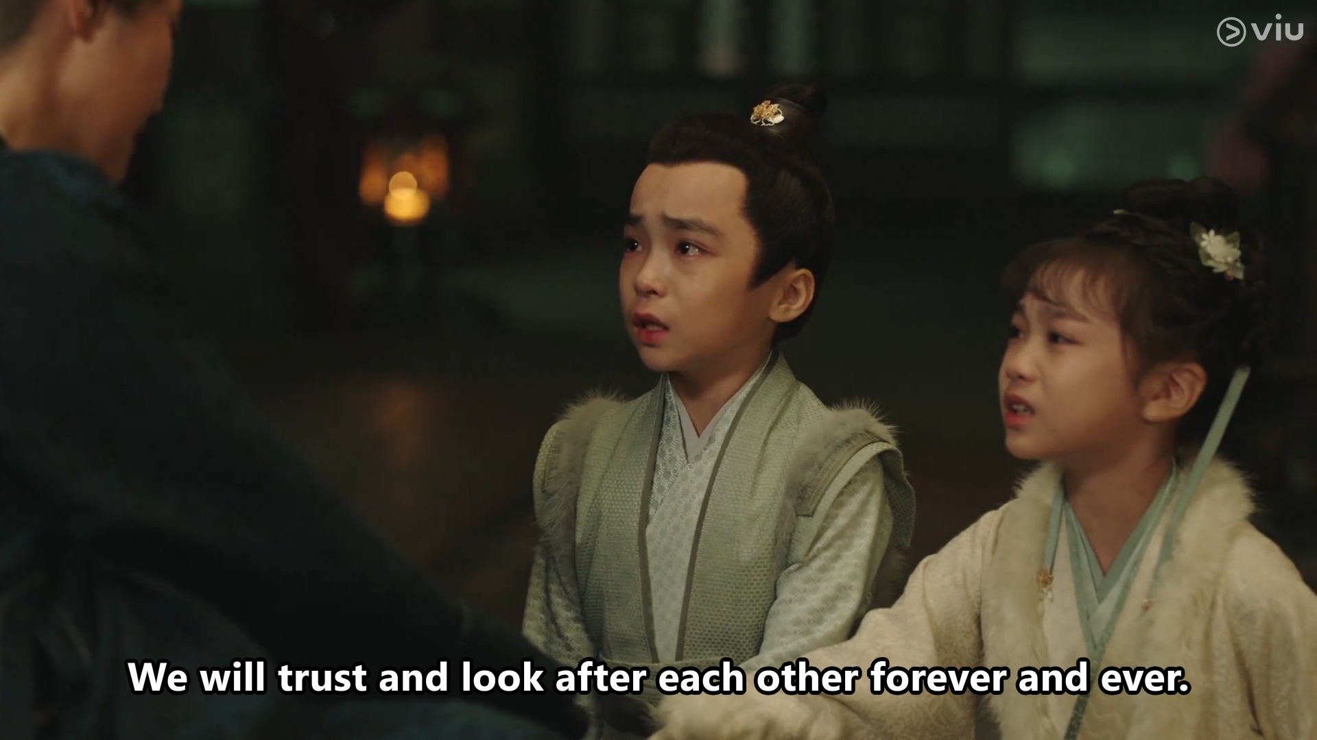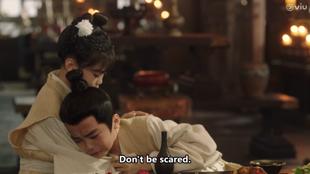 The two children comforted each other as they promised to keep the reason for Cang Xuan’s injuries from Xiao Yao’s mother.