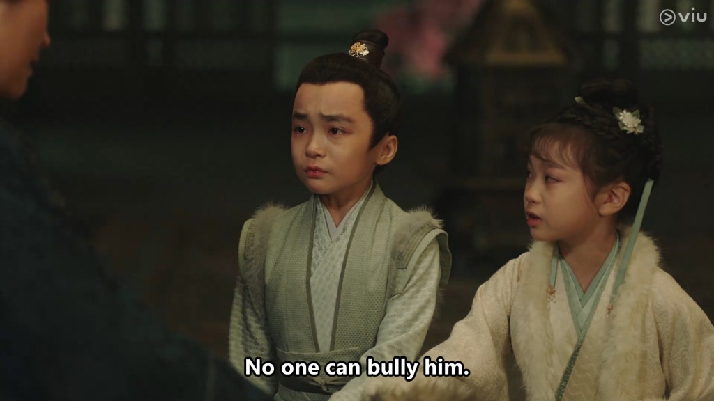 Xiao yao to the rescue! She told the leader of the pack Yue Liang to stop, but he mocked her for no longer having a father. Looks like Xiao yao’s mother has yet to tell her something as important as divorcing her father, and even though the news had spread far and wide, she only heard about it from this royal gang of little ruffians.