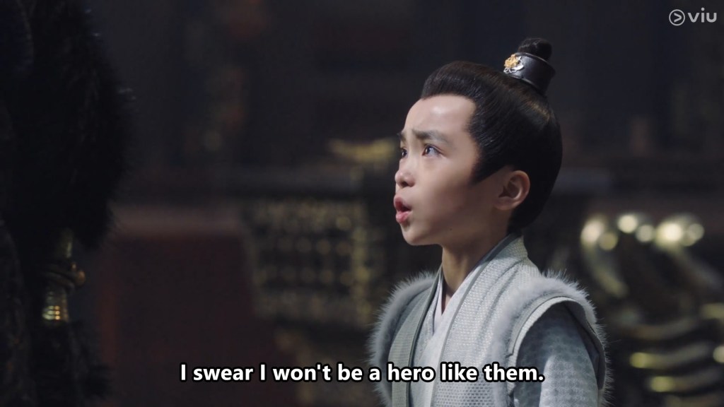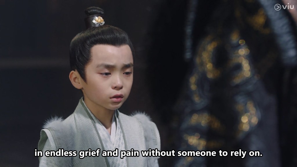 Young Cang Xuan sat by himself, lost in his own thoughts, thoughts that are far too serious for a young child. He berated himself for not protecting his mother or look after his grandmother, and was feeling overwhelmed by helplessness.