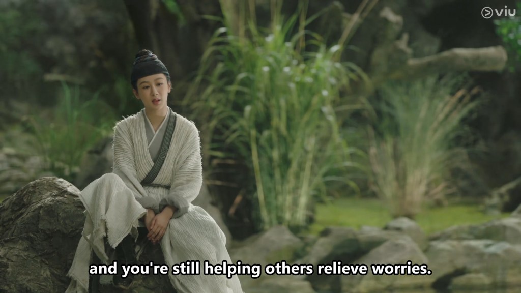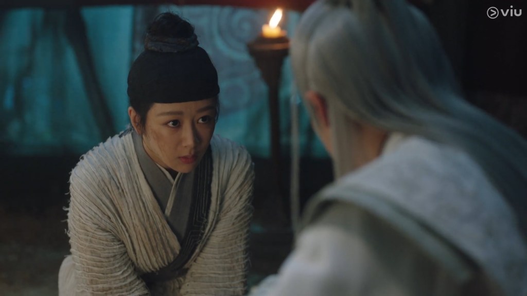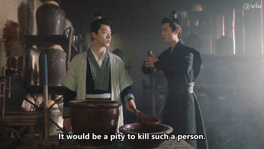 Mu still does not trust him, and he followed him out to ask him who he really is. He seemed satisfied with Shiqi’s determined reply, while we saw a snippet of Shiqi’s past, in which someone ridiculed him in public for being ‘nothing’.