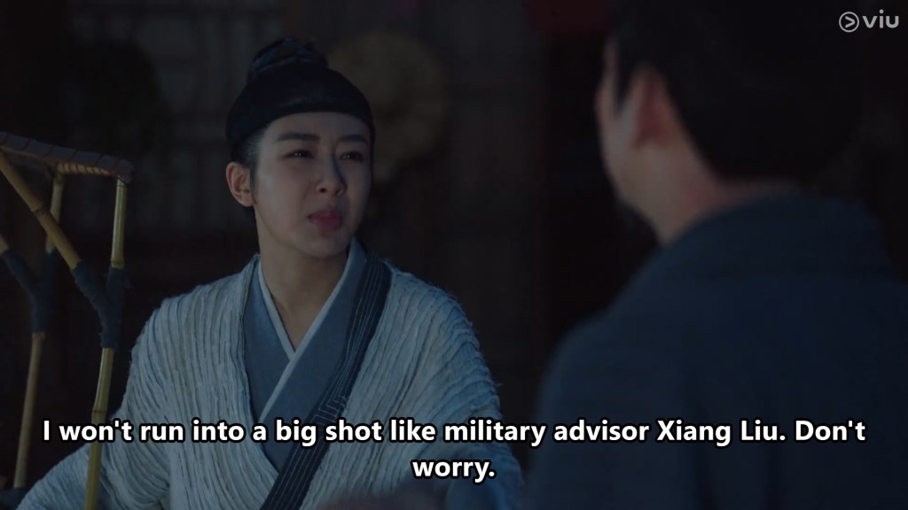 Mu tried to talk her out of it, because of the risks of heading into Chen rong’s rebel army territory, but Xiaoliu assured him that all will be fine.