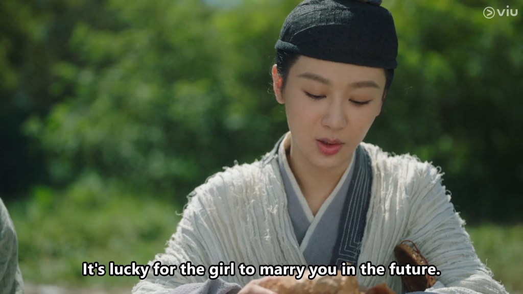 Xiaoliu makes an offhand remark about how lucky the girl he will marry will be, and he casts her a shy look.