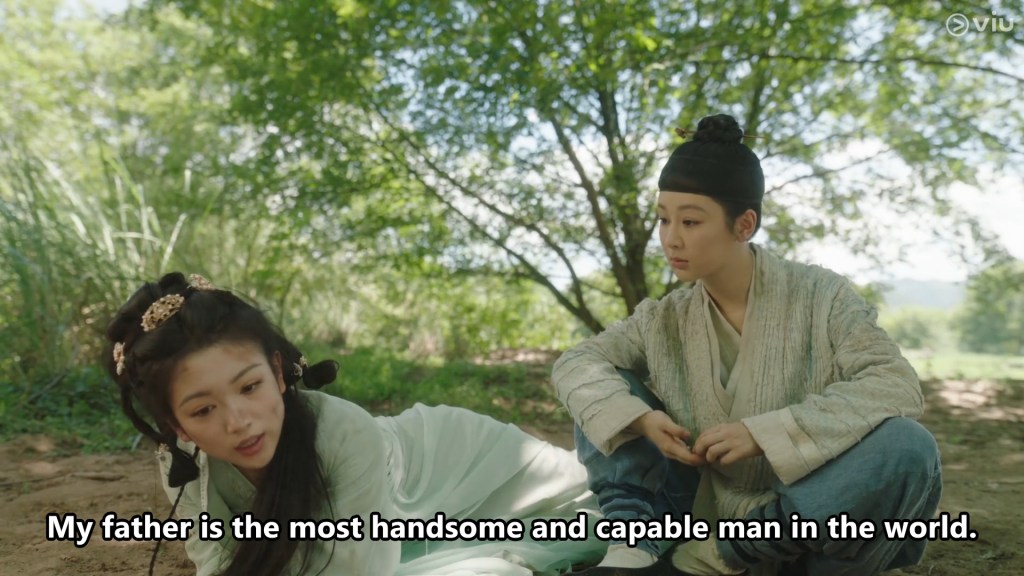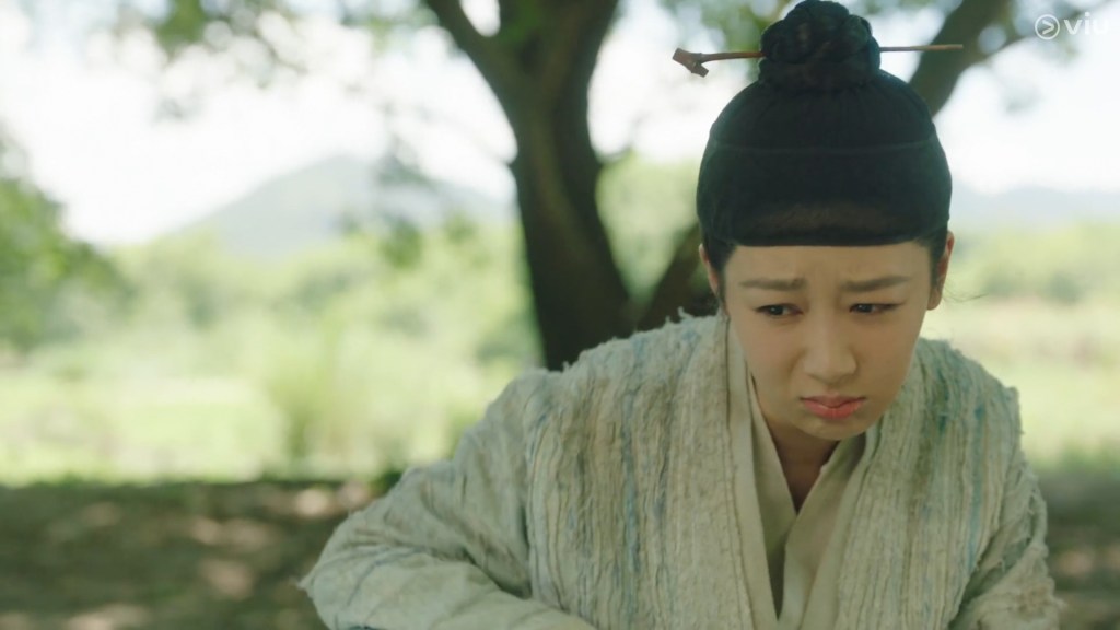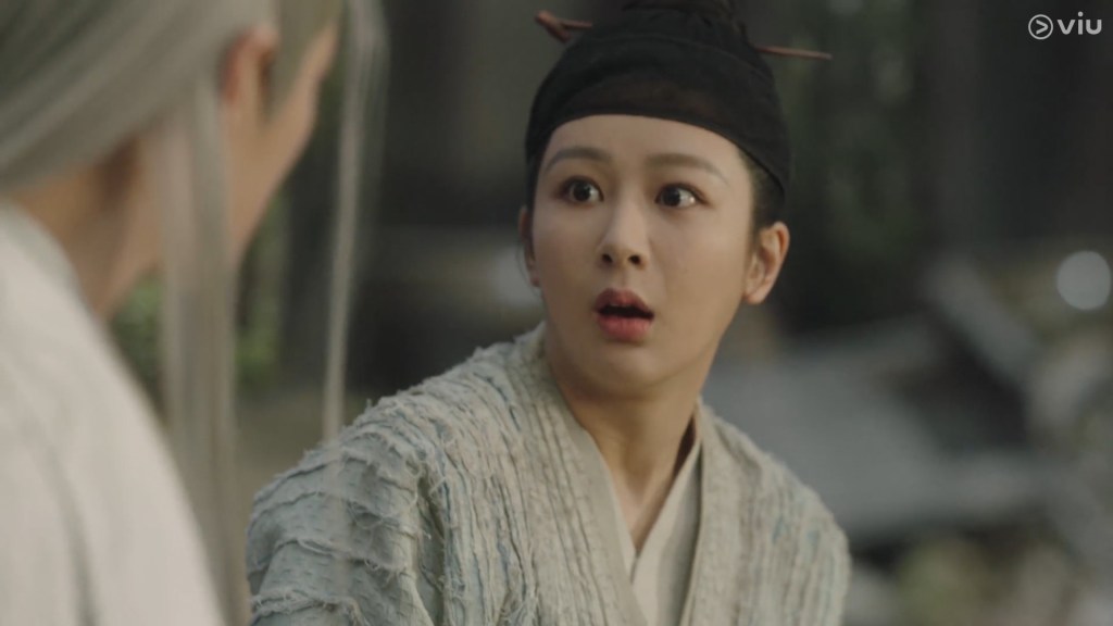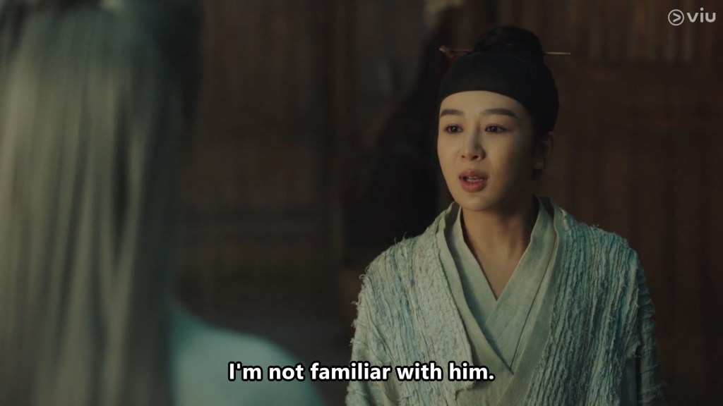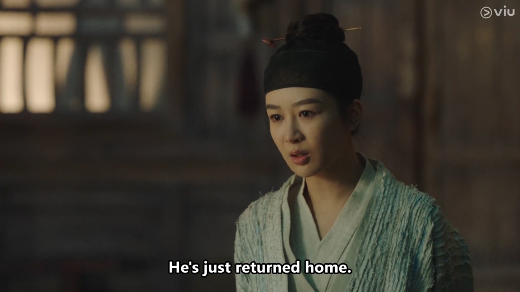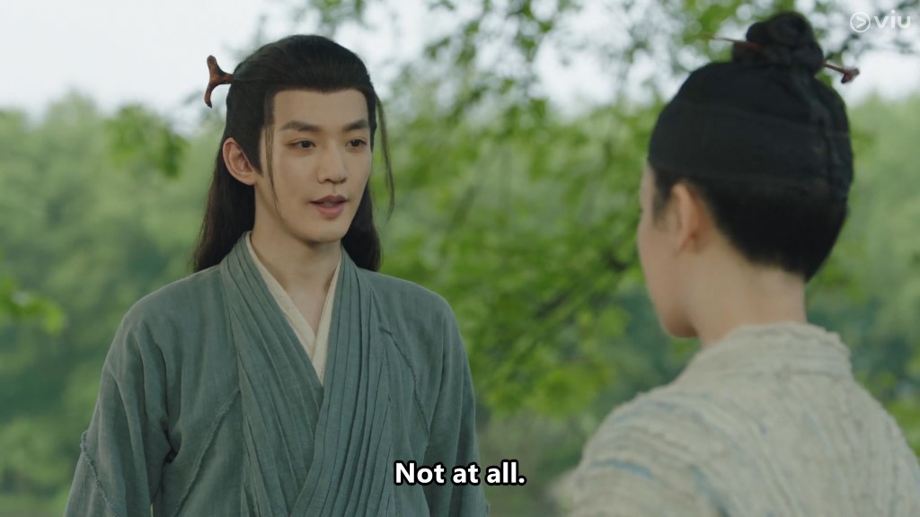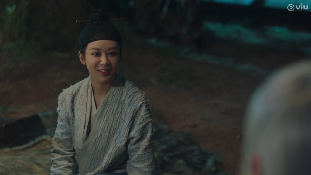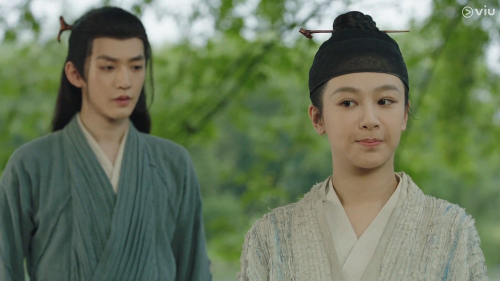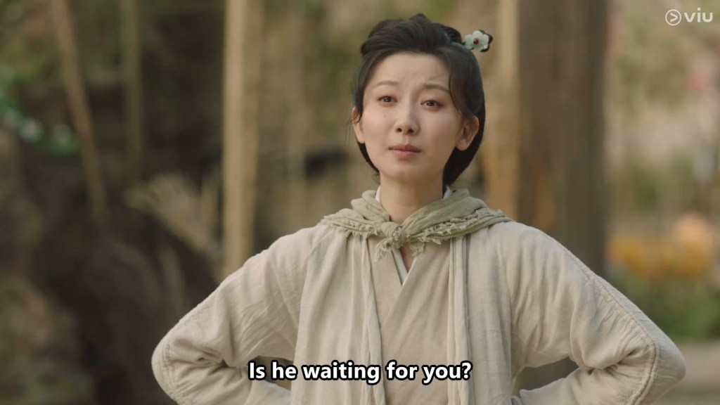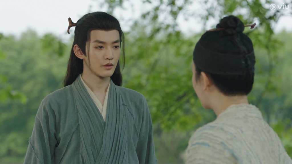 Her neck got tired, she finally smilingly looked at Jing. He is still wearing the same hemp clothes from the day he left. ( in the drama is not the same )