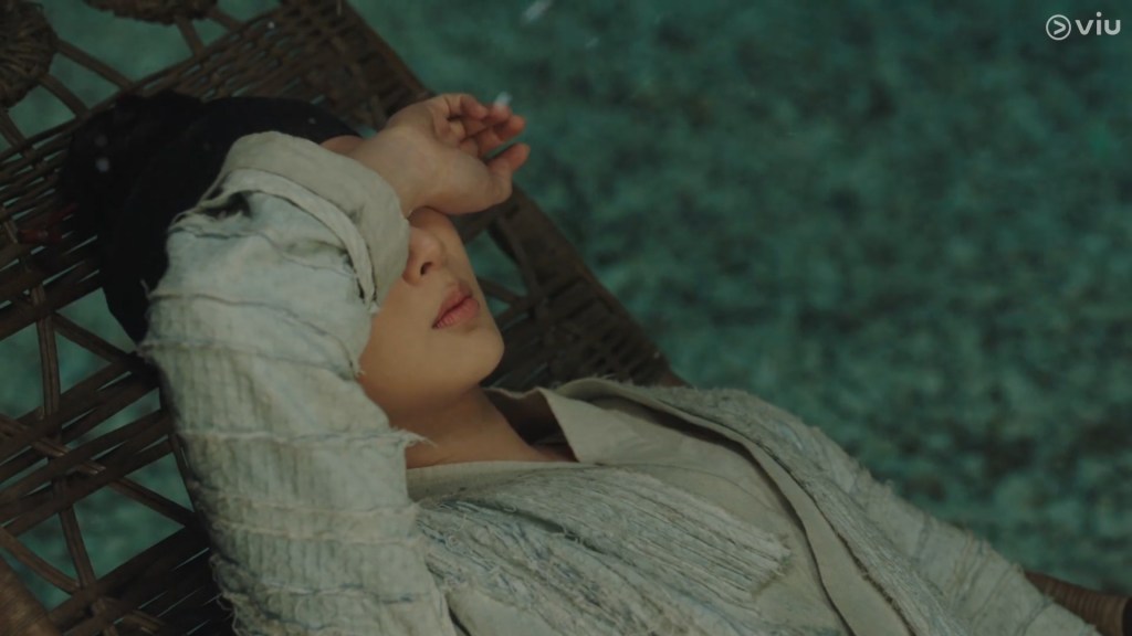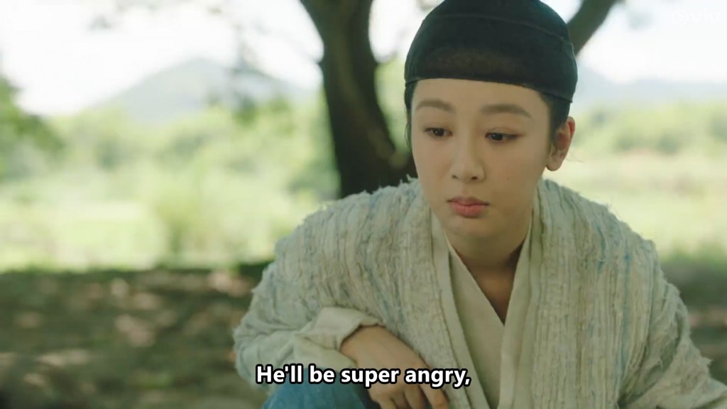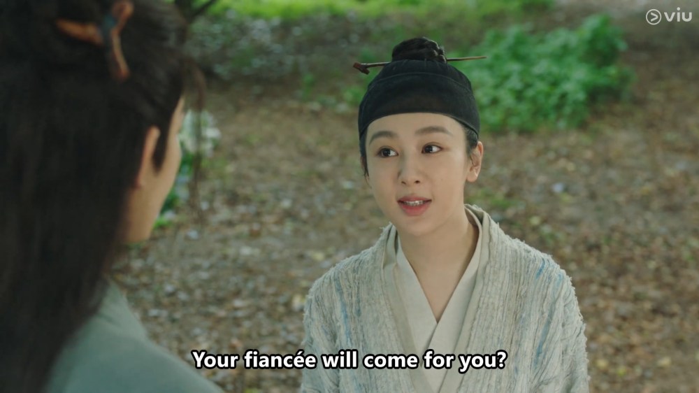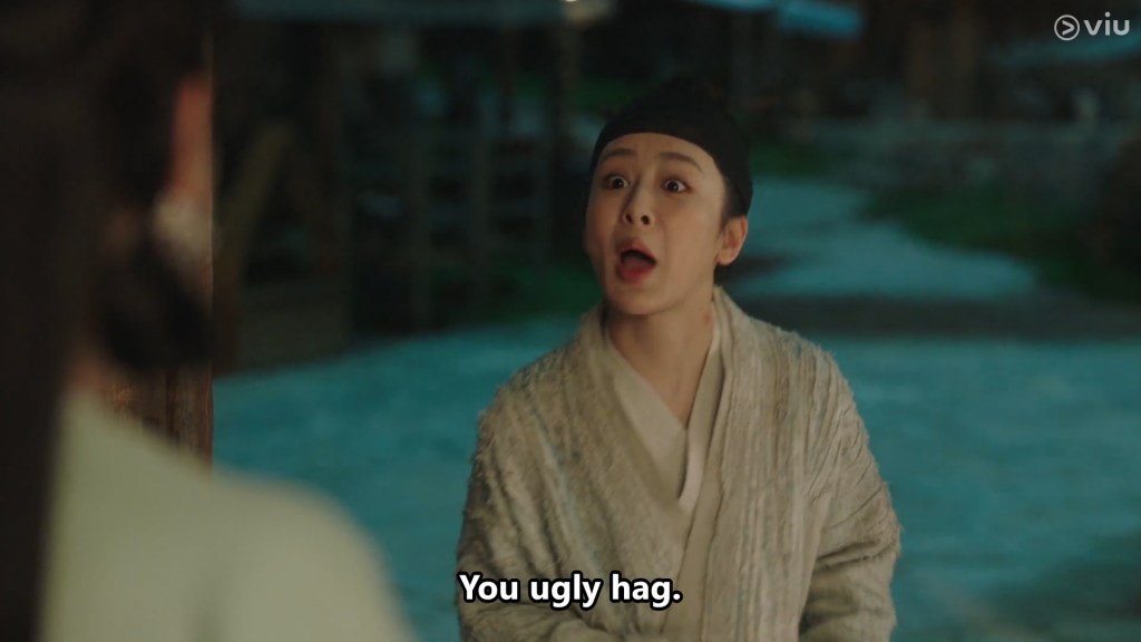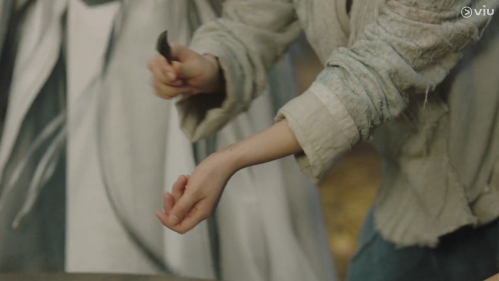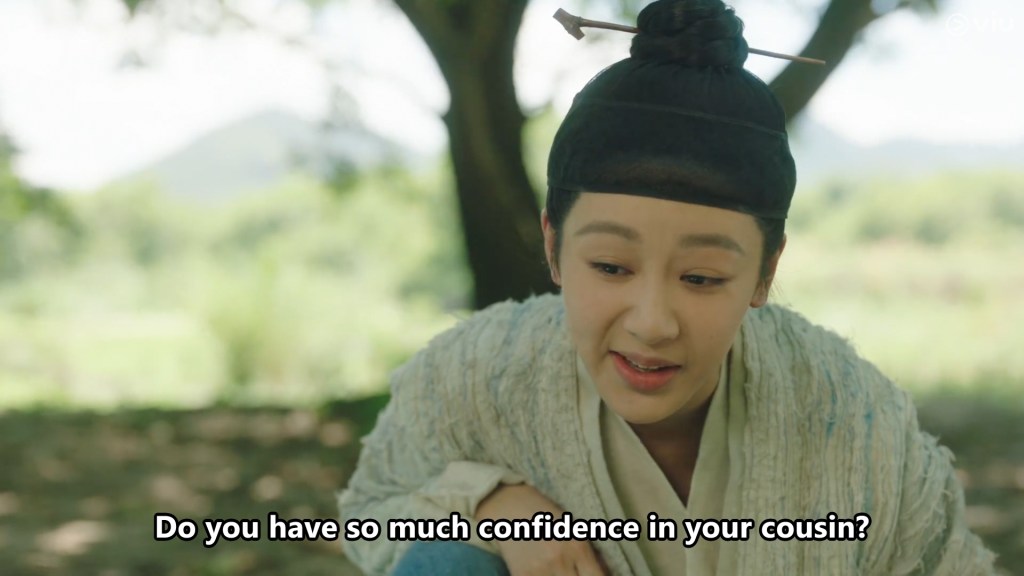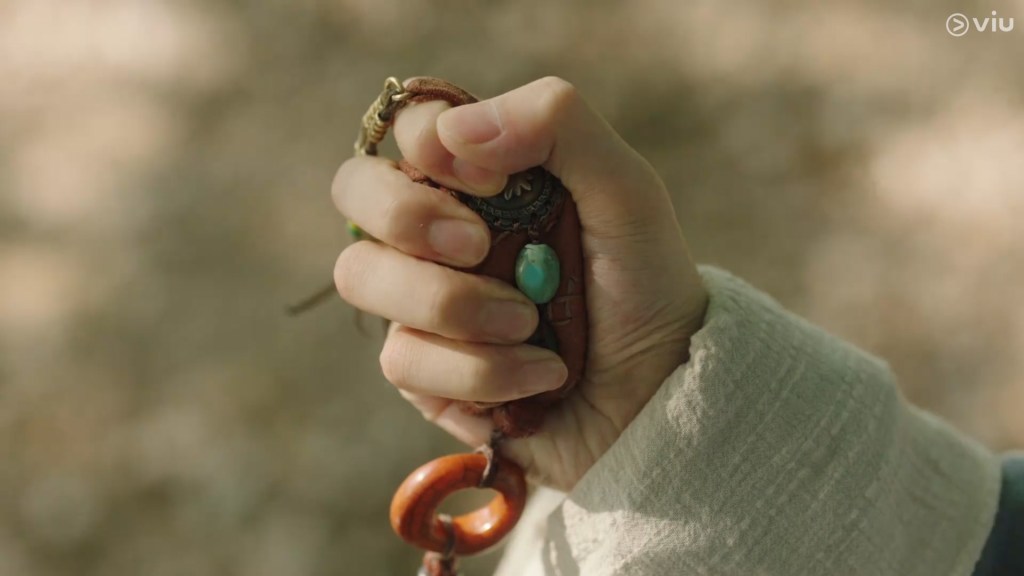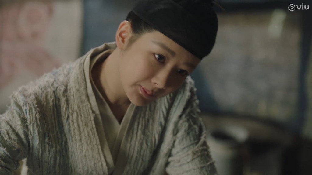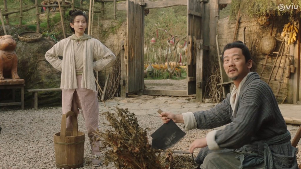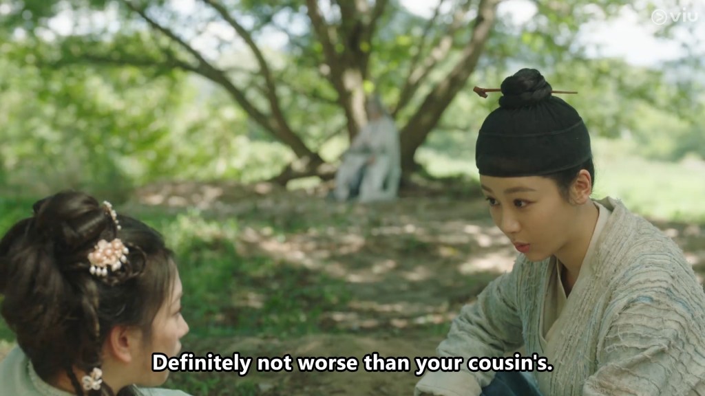 Her neck got tired, she finally smilingly looked at Jing. He is still wearing the same hemp clothes from the day he left. ( in the drama is not the same )