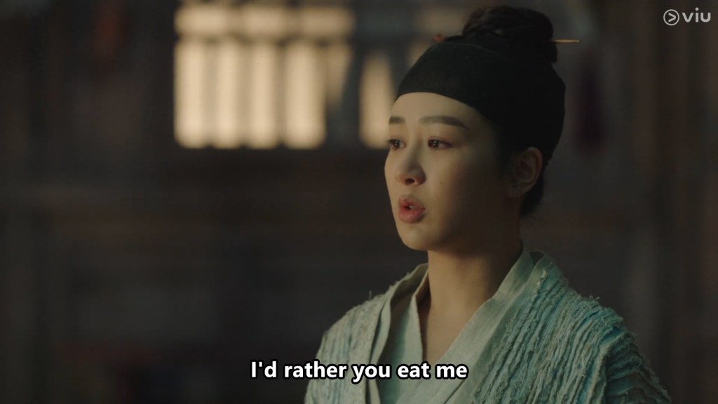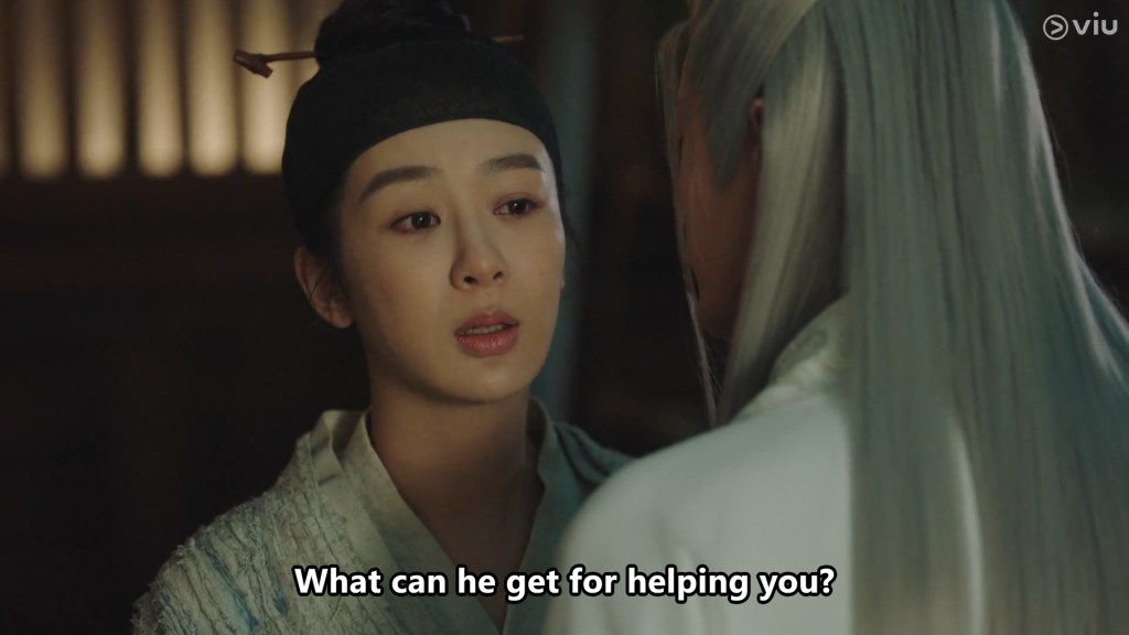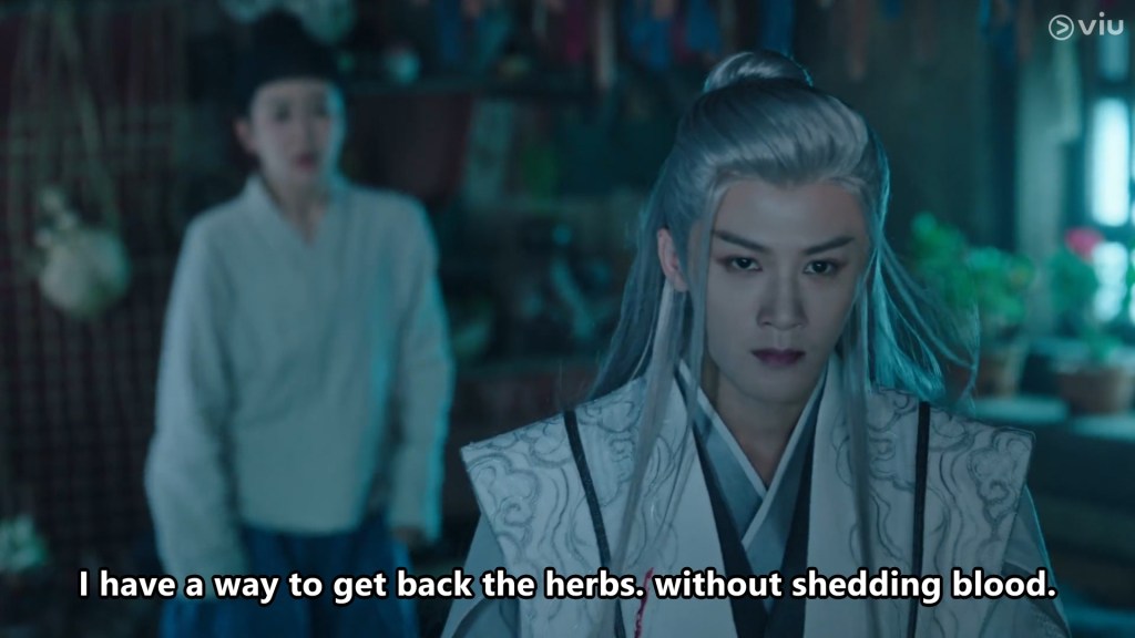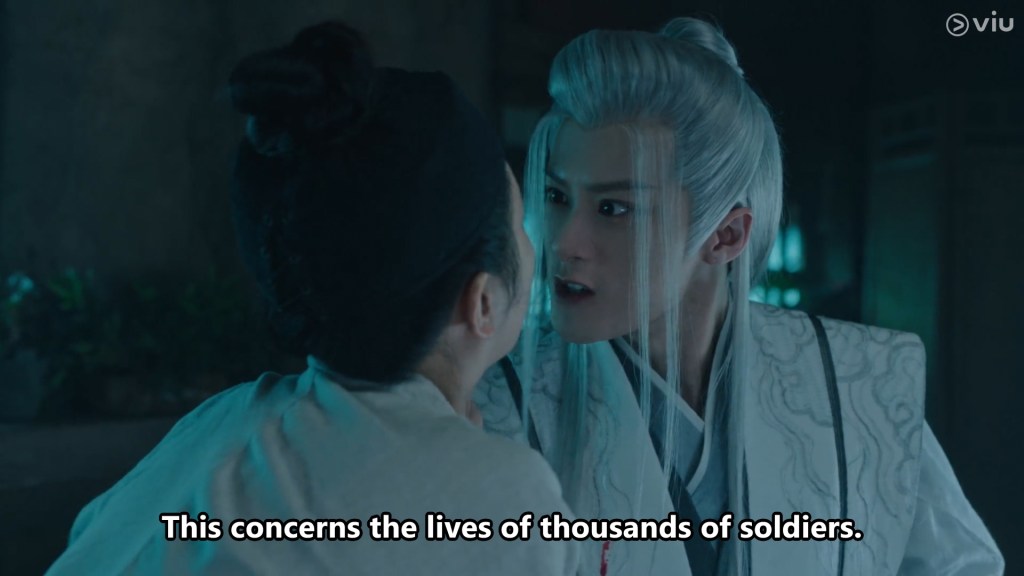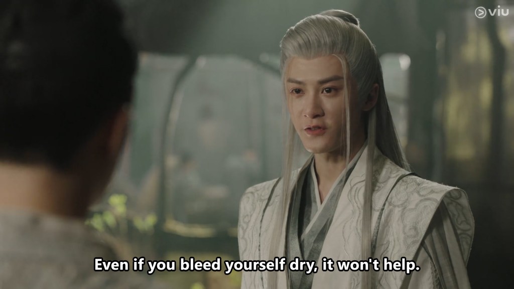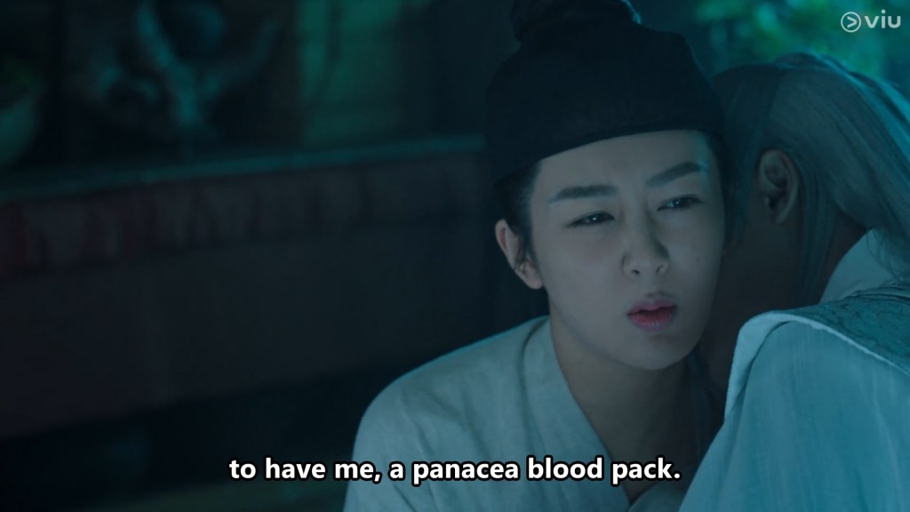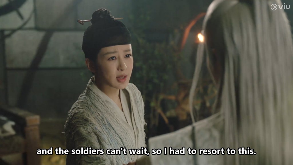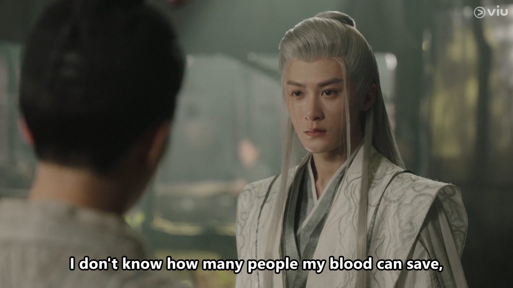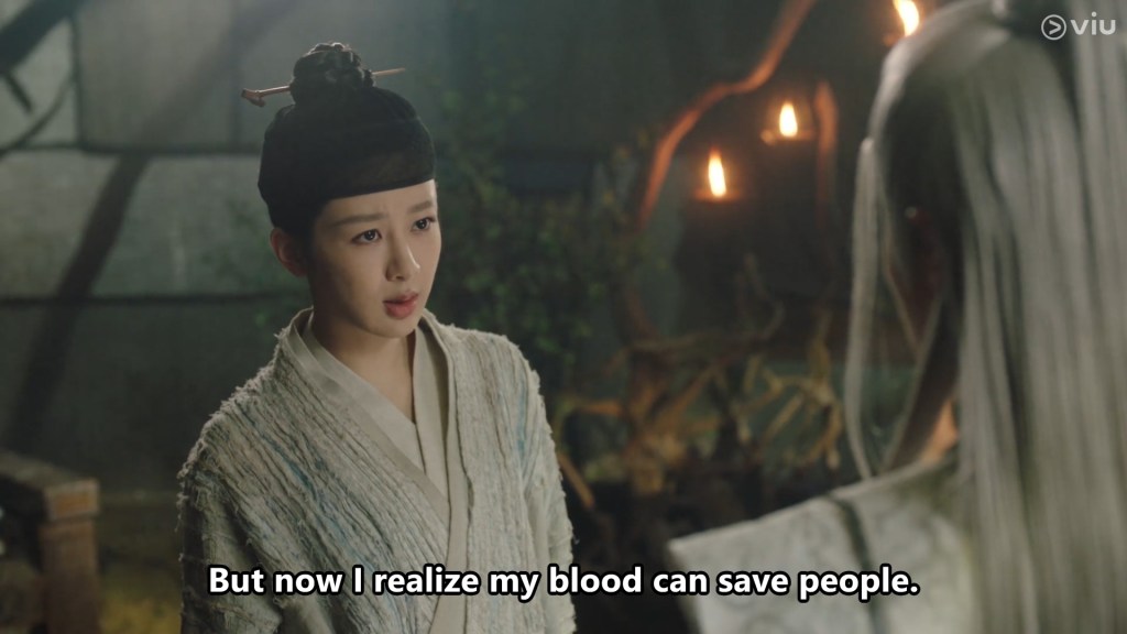 Now Xiaoliu sees Xiangliu differently, understands him a little more. She even gets actively involved in his cause to save the rebel soldiers. She was reluctant when Xiangliu threatened her into helping him get the herbs but after the rebel army are no longer faceless individuals , she did not even hesitate to use her own blood to try to save them from their illness.