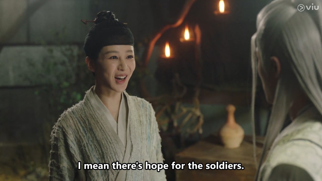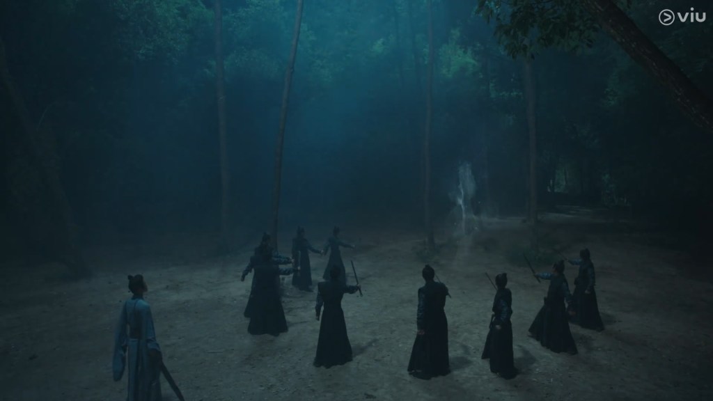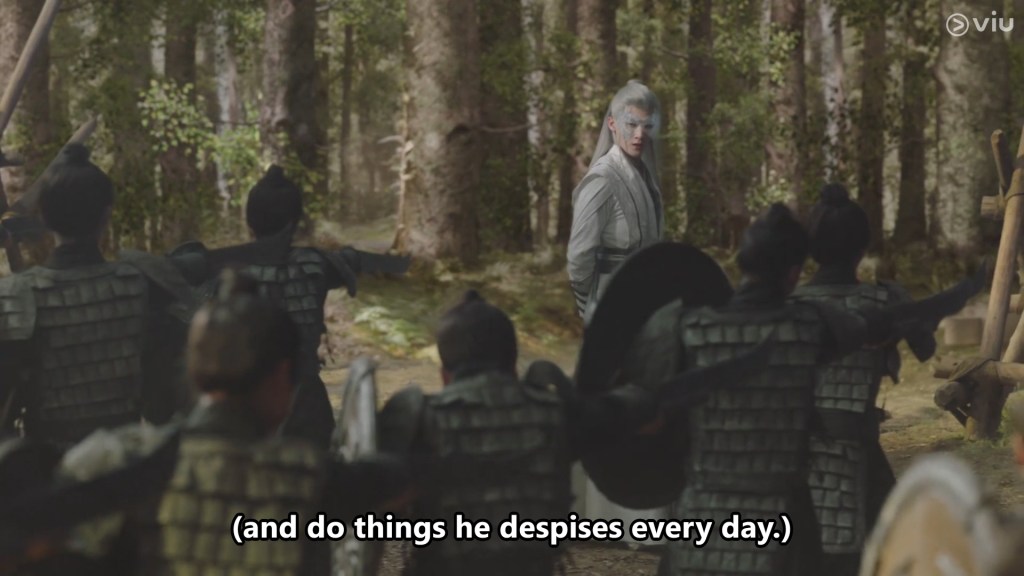 In case you are wondering like me how a noisy rebel army can train in a quiet forest for decades without being found, in the novel, a spell/skill that can conceal sounds can be cast to a specific area like a barrier, is frequently used. However in the drama, it has never come up. Perhaps they felt it will ruin the tone of the drama. Think of it like a cone of silence from Get Smart hehe