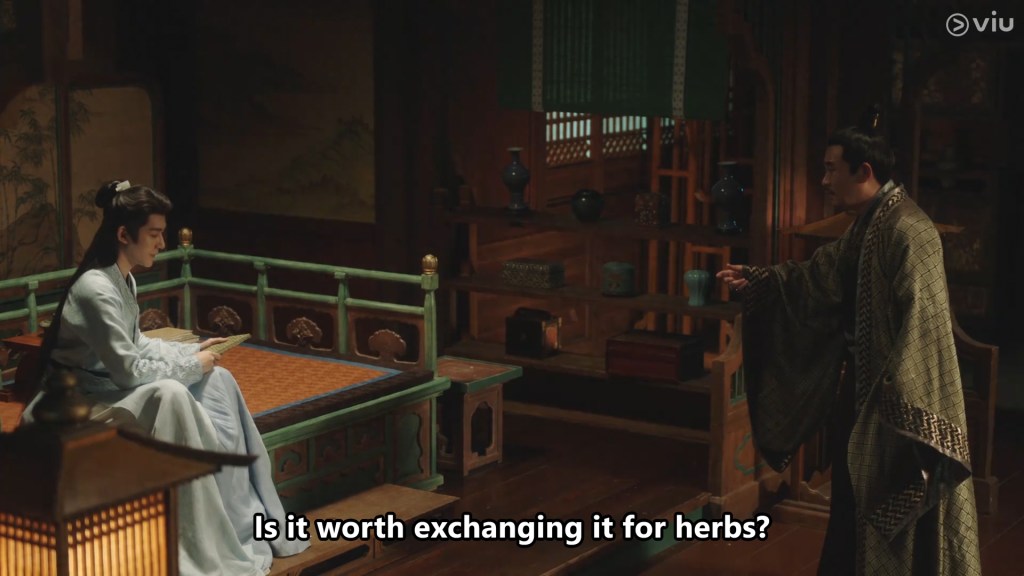 Jing came in person to inform Xiangliu where the herbs are stored. Xiangliu nodded in acknowledgement and left without any thanks. Xiangliu I don’t think the ‘no thanks needed’ was intended for you. hahaha