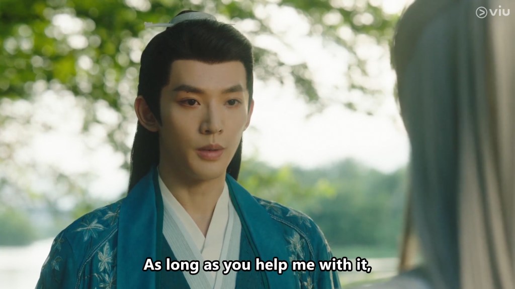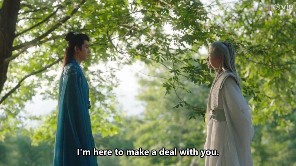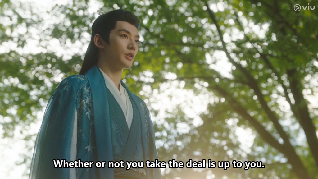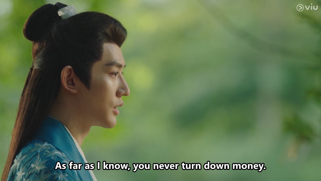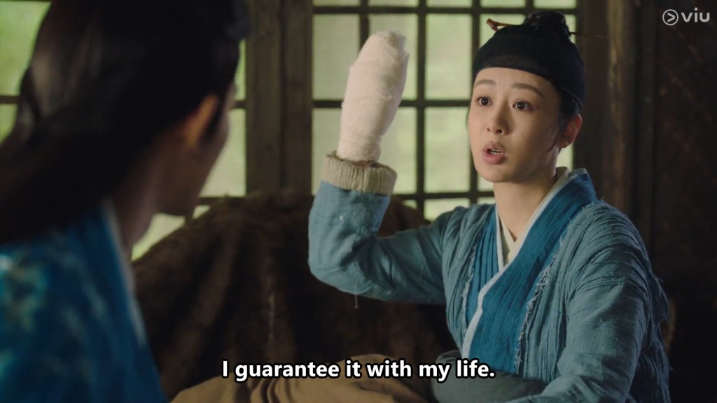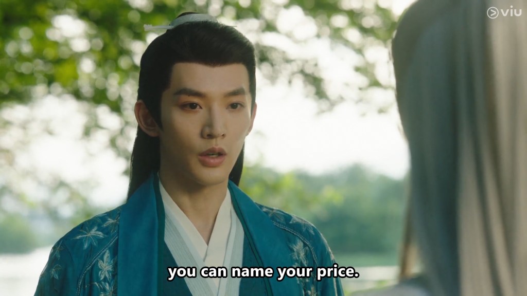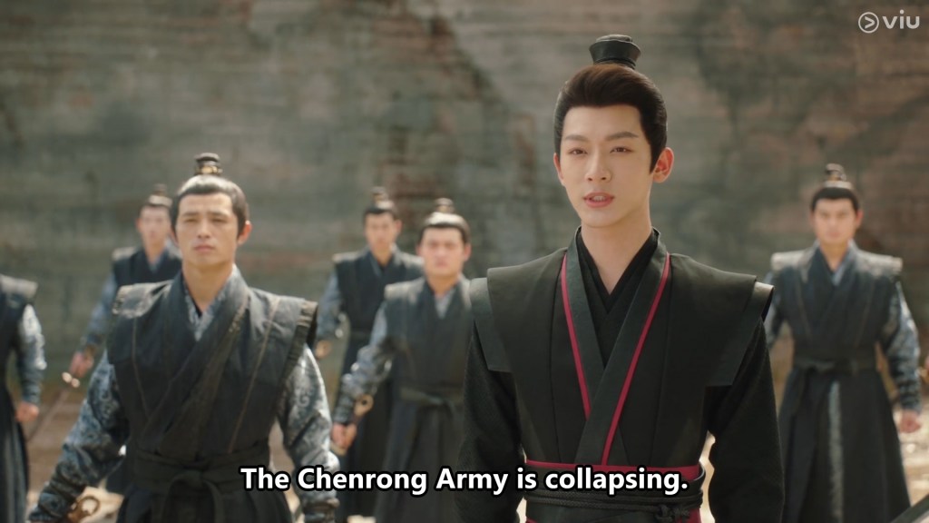The usually gentle and soft spoken Jing turned out to be a businessman that Xiangliu could not refuse. I should think Xiangliu would have still been willing to help save Xiaoliu anyway but he just can’t pass up the opportunity to help his Chen rong army by acting reluctant.
