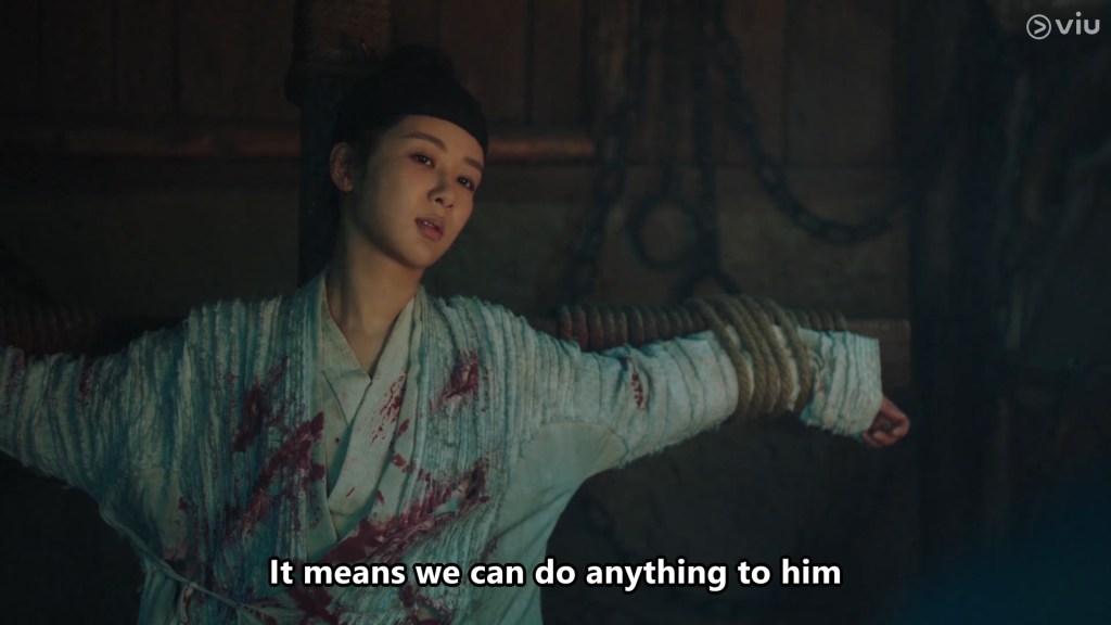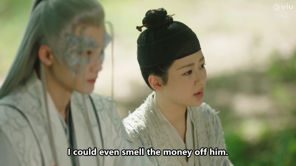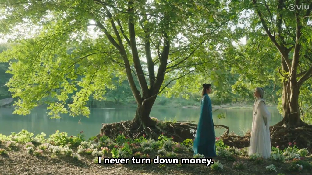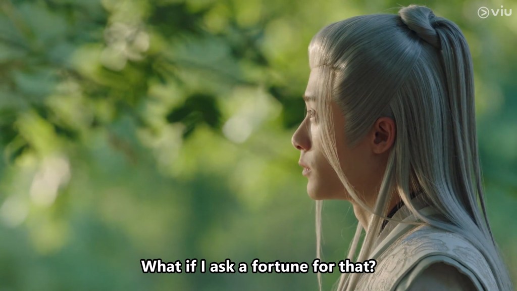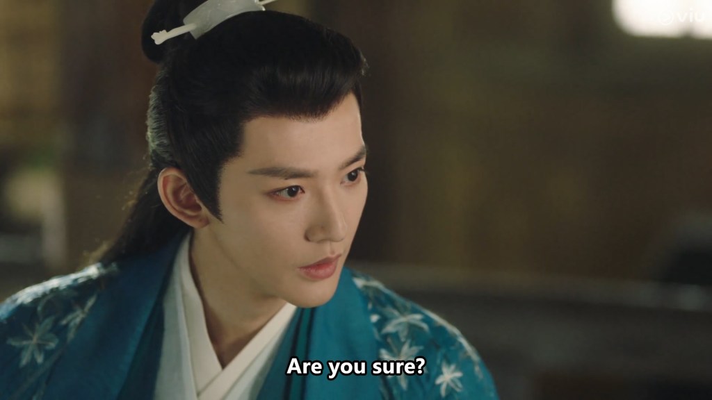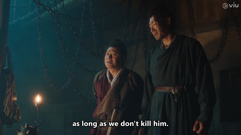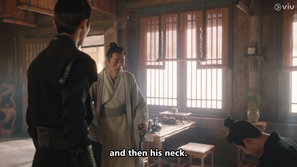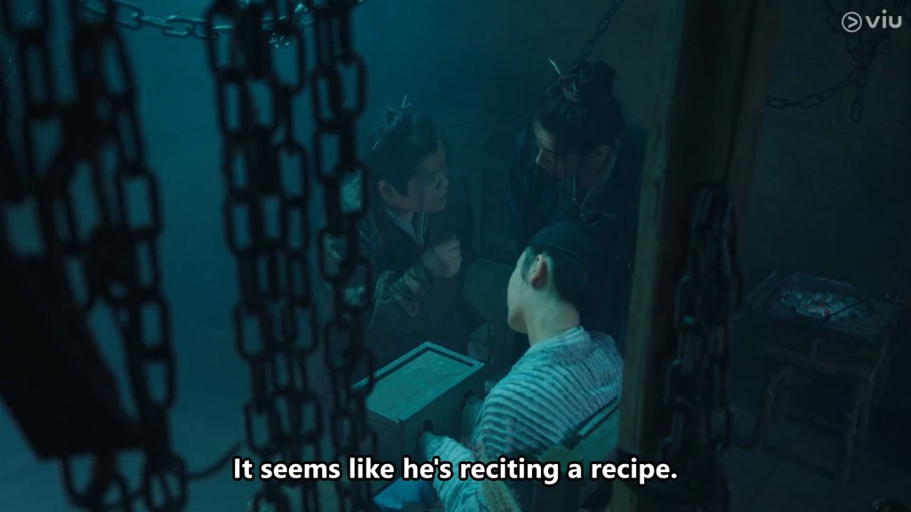 The usually gentle and soft spoken Jing turned out to be a businessman that Xiangliu could not refuse. I should think Xiangliu would have still been willing to help save Xiaoliu anyway but he just can’t pass up the opportunity to help his Chen rong army by acting reluctant.