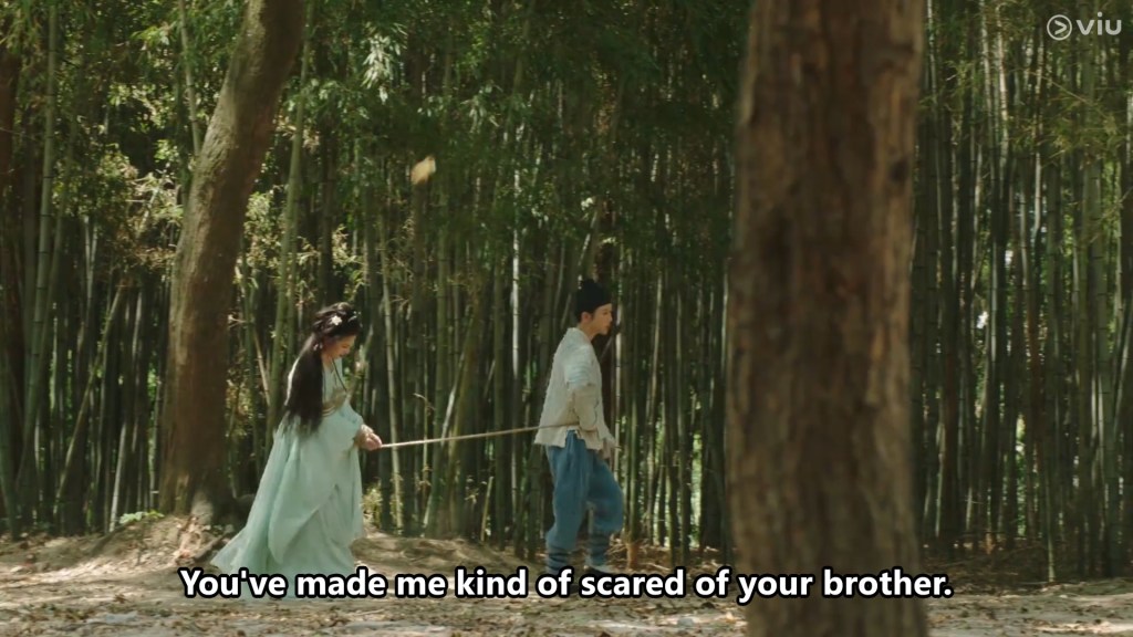 Xiangliu warned Xiaoliu that Xuan will not let her off for kidnapping his sister, and made an offer for her to stay with him until this incident blows over.
