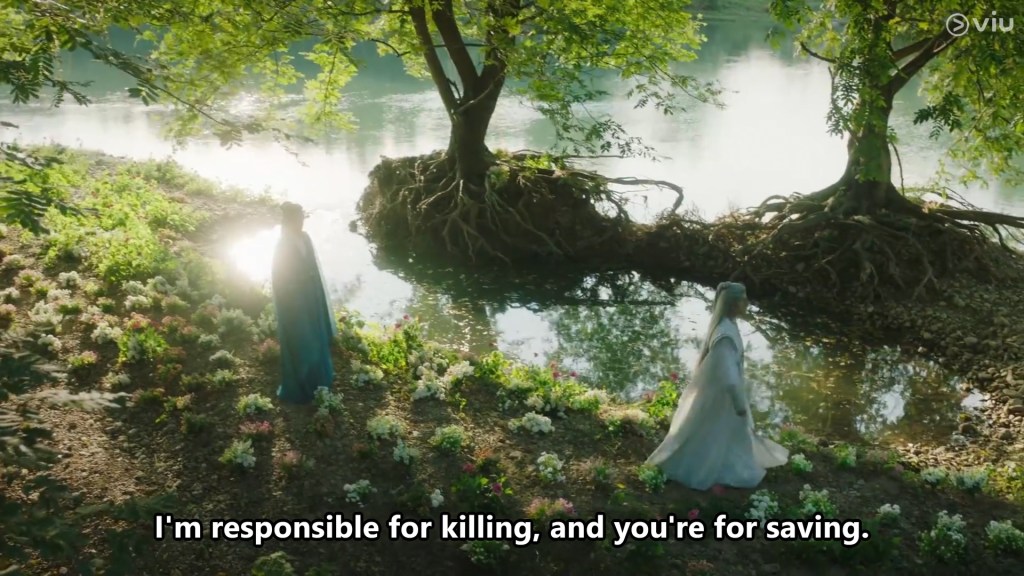 Seeing Xiaoliu’s smile as she flashed-back her childhood days, Xiangliu suddenly snapped out of his murderous intent, and instead left with her.