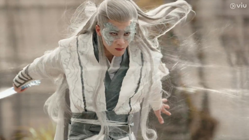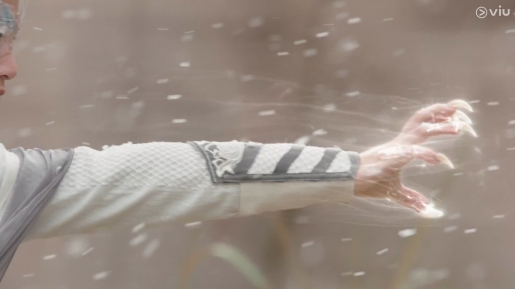 Xiangliu gives a frosty greeting to intimidate Jing, but Jing just used his spirit power to remove the ice and freed a frozen pair of butterflies.