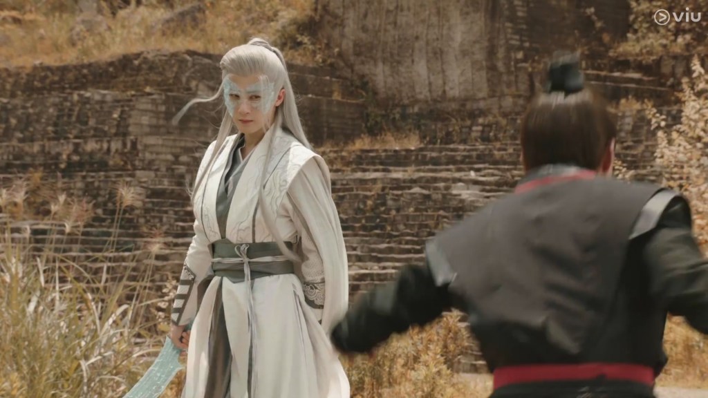 She clung onto Xiangliu to stop him from pursuing the fleeing Xuan.