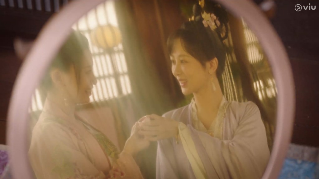 Shiqi and Xiaoliu shared an embrace after she asked him to drink poison on a whim, captured in her mirror.