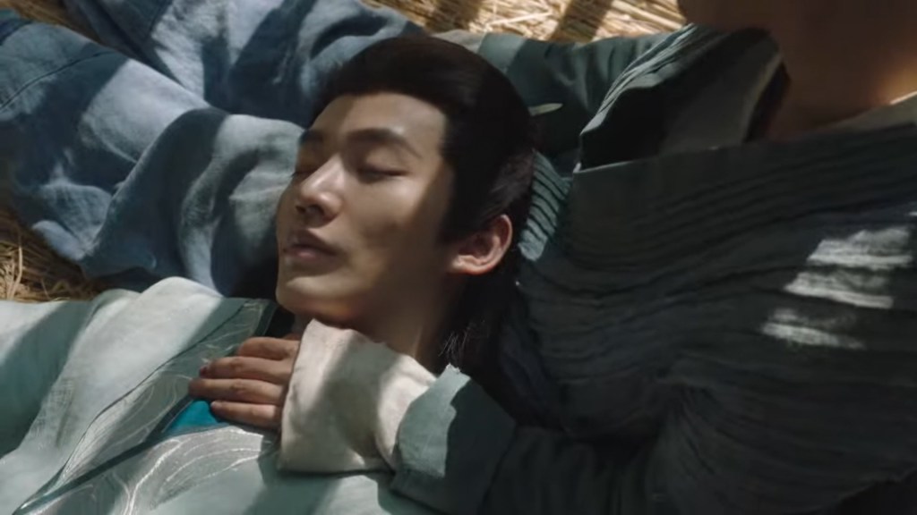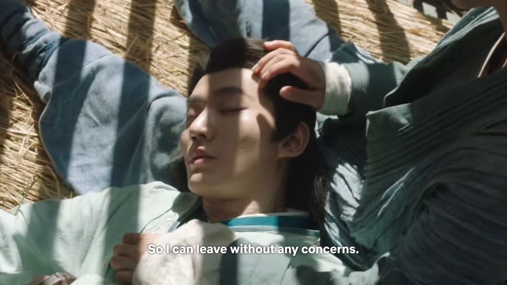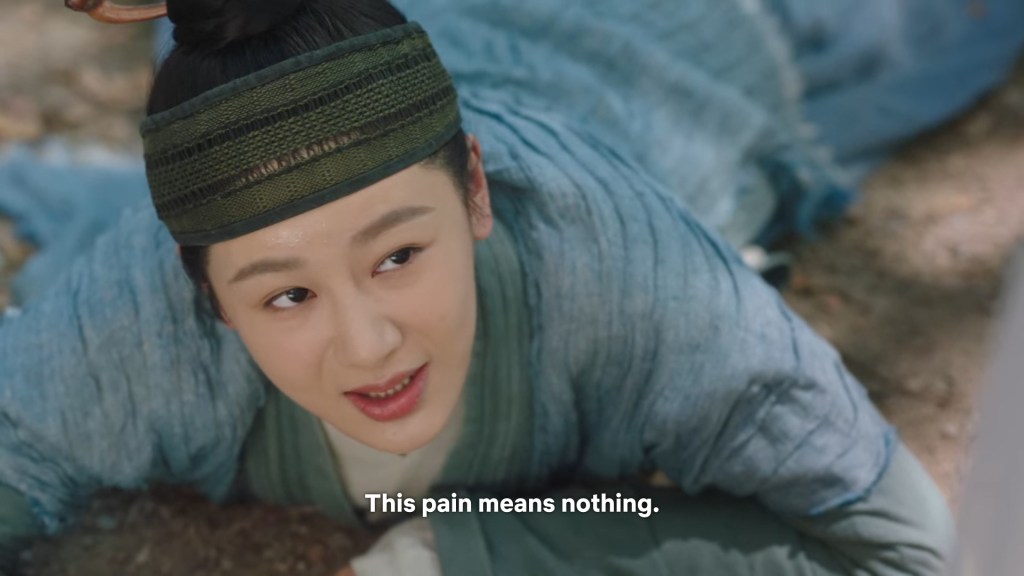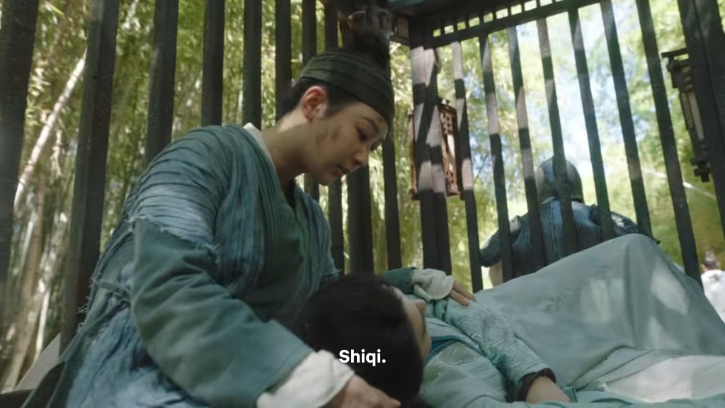 Even though she is in pain, Xiaoliu rested Shiqi on her legs so he would be more comfortable.
