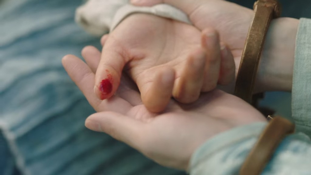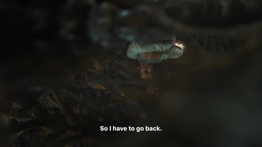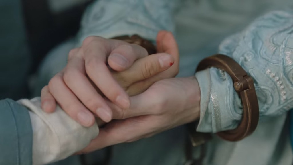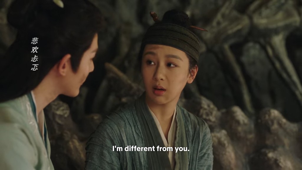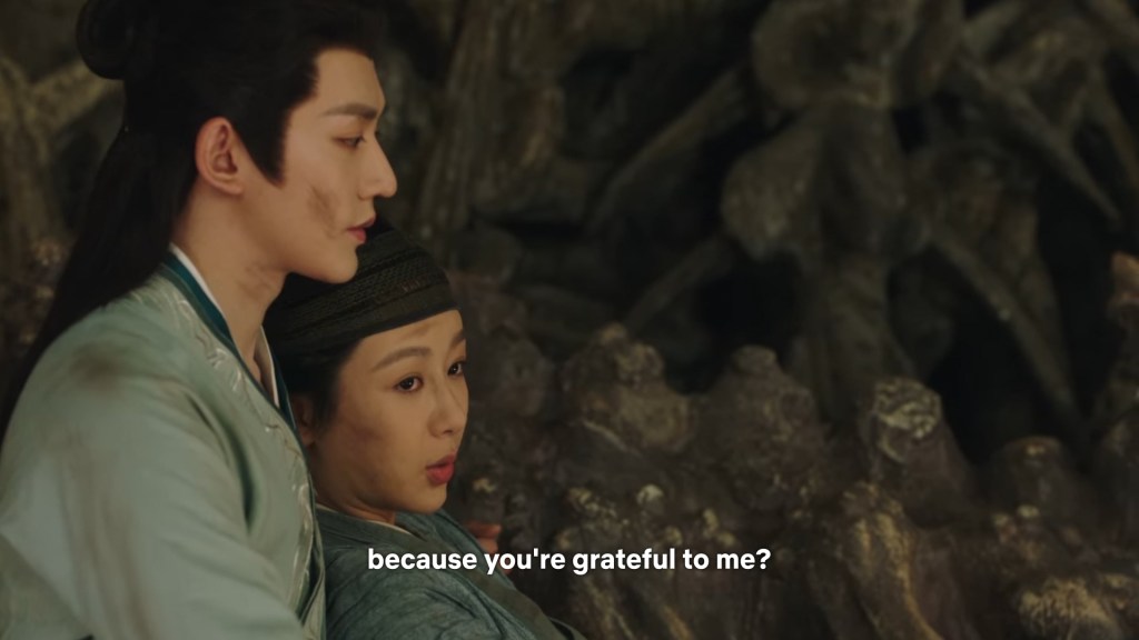 She immediately stopped leaning on him to remind herself, she can’t let herself be weak and rely on him.