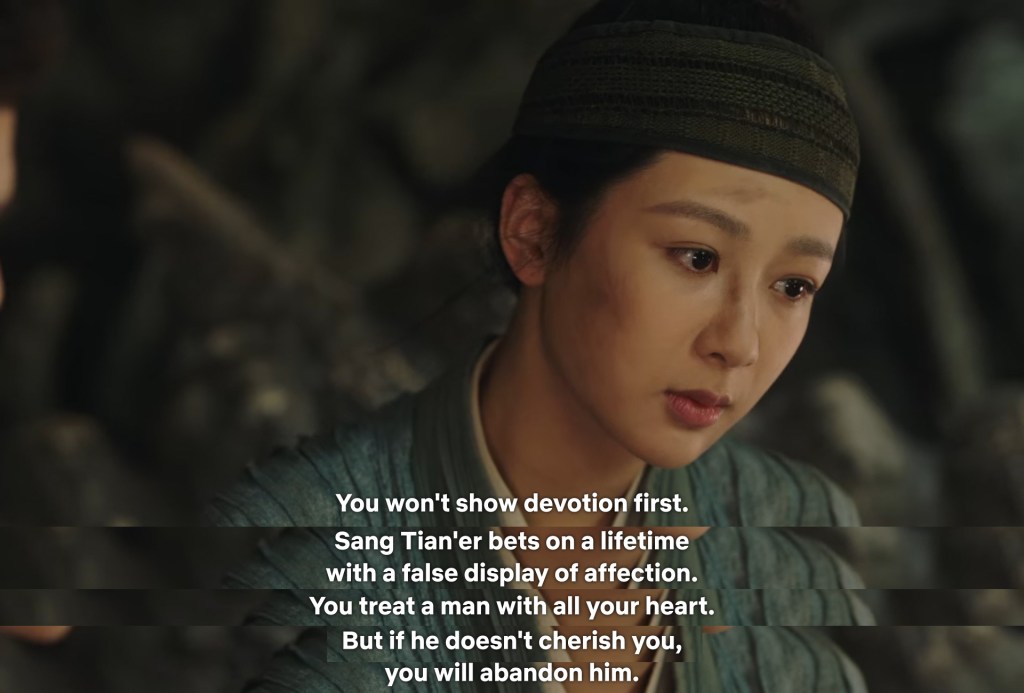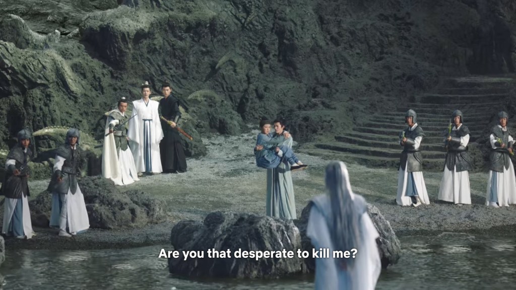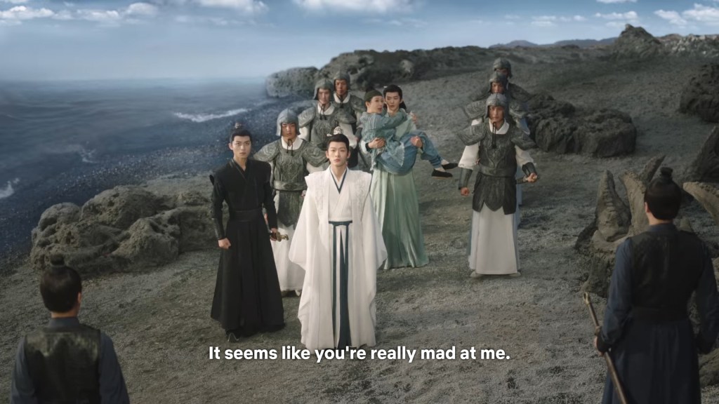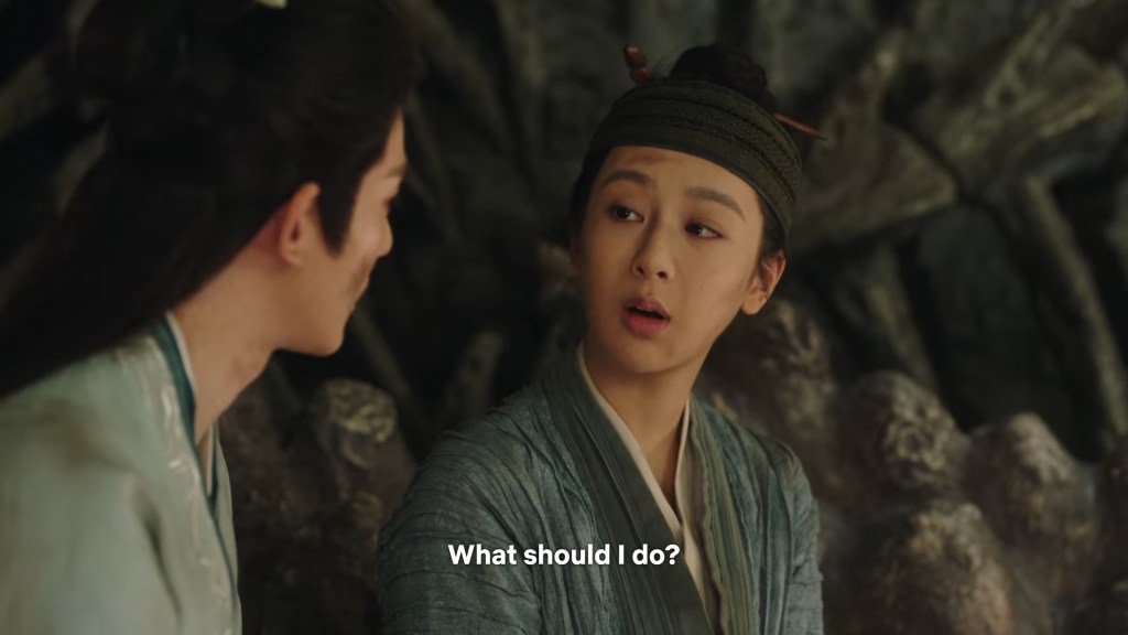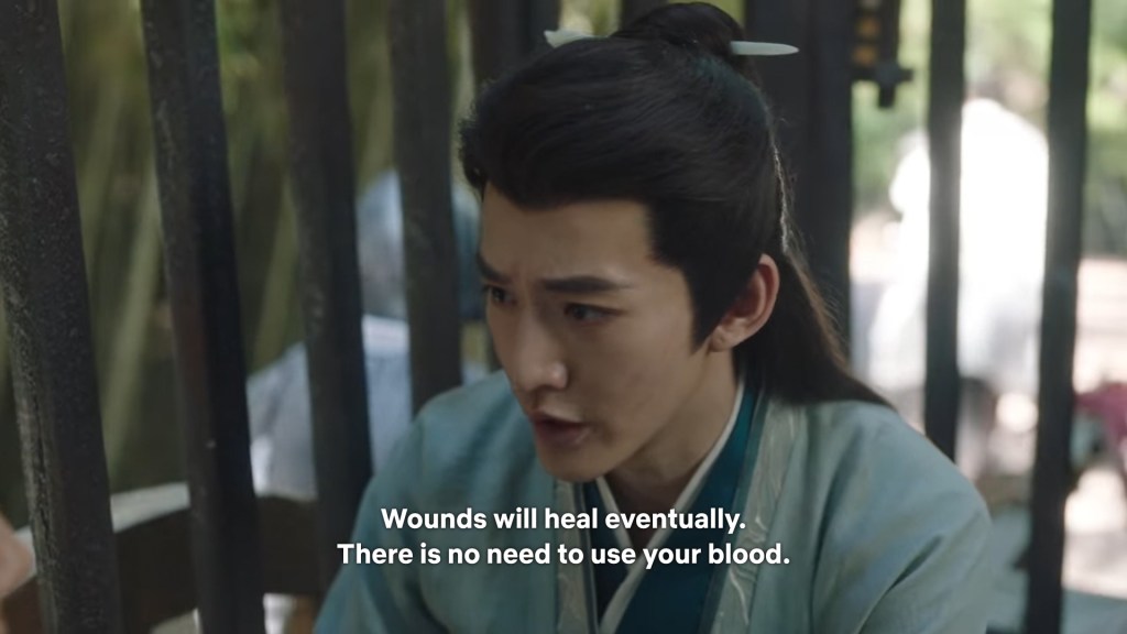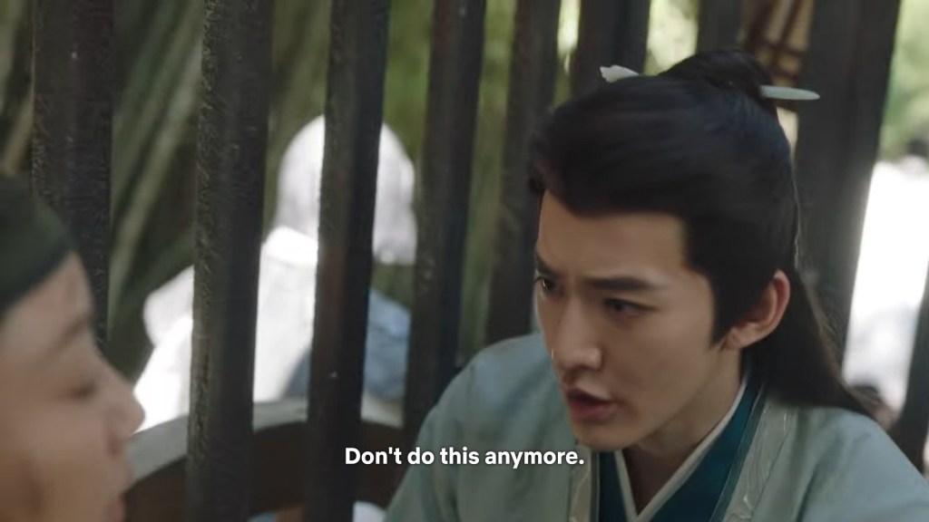 Xiaoliu has run back to see Jing captured. She asked Cang Xuan to release Jing so he can return to Qingqiu, but he is not having any of it. He gave an order to break her legs so she can’t run away again.