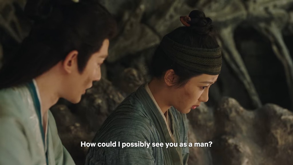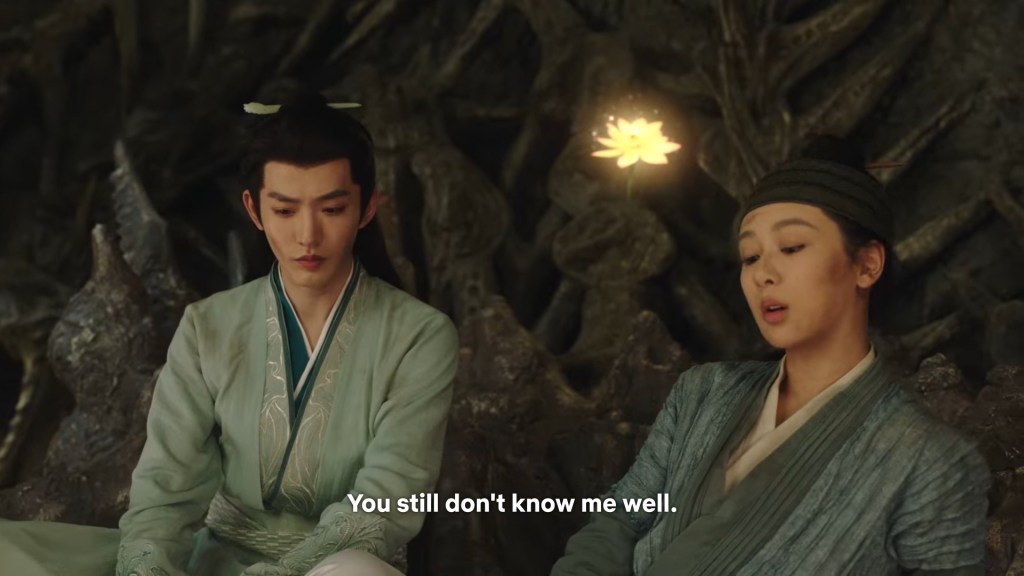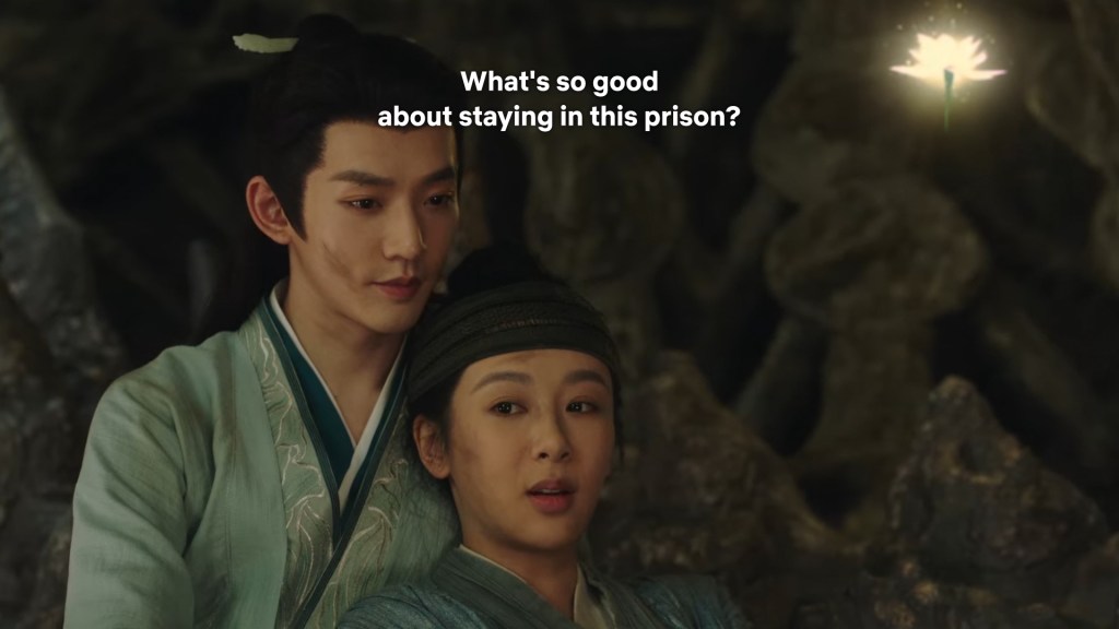 If Cang Xuan did not throw them into the Dragon bone prison, they won’t have the time to finally ‘sit down’ and sort out all the issues between them. Xiaoliu literally can’t run or escape from Jing and she had to hear him out.