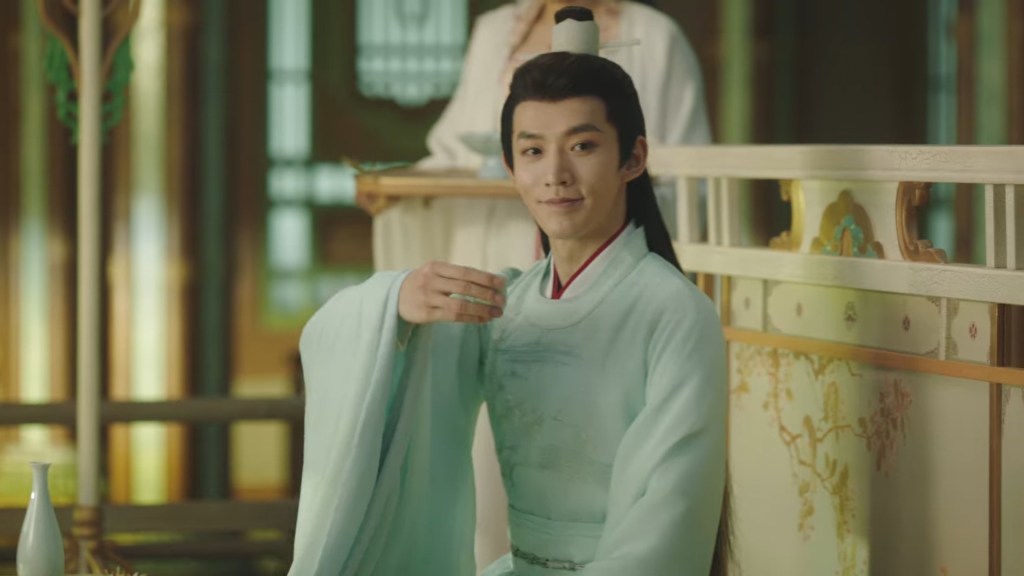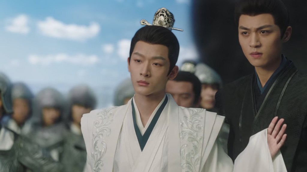 Haoling is warm all seasons of the year, so their clothing is thin and light, particular about flowing beauty, favoring wooden clogs. Shiqi is wearing an azure Haoling attire, with flowing sleeves and loose robes, light belted clothing with a jade crown hairdo. He walked like gliding clouds, clothing rippling, luminous like the bright moon, elegantly flowing like water.