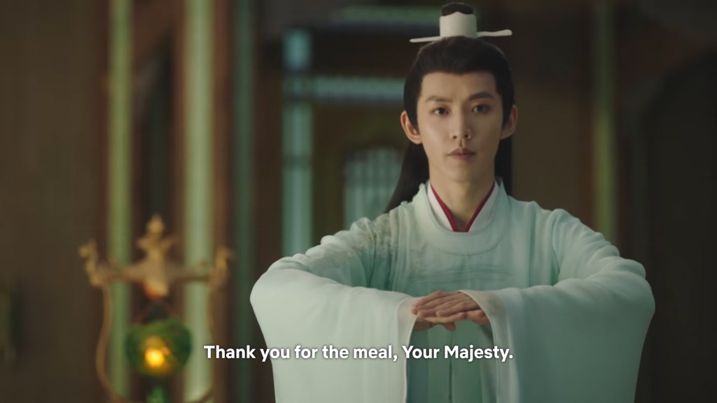 Xiaoliu again, did not excuse ‘himself’ to the King, but Shiqi spoke for the both of them to take their leave. The King did not mind, and excused them.