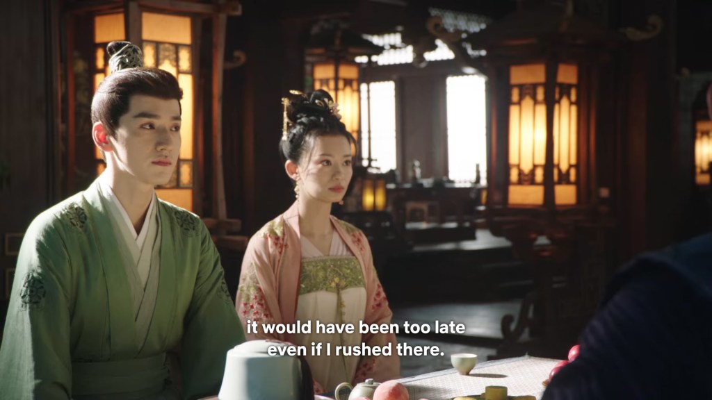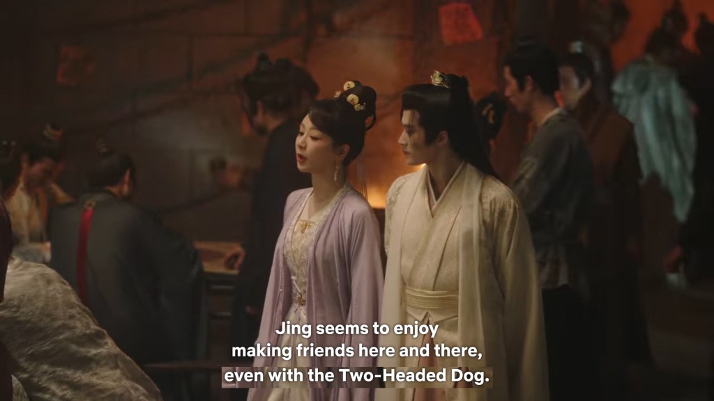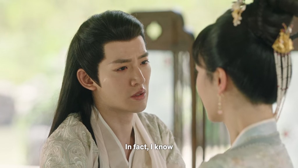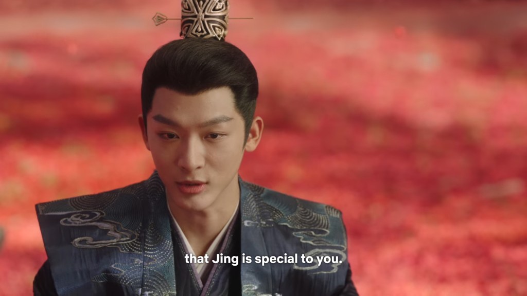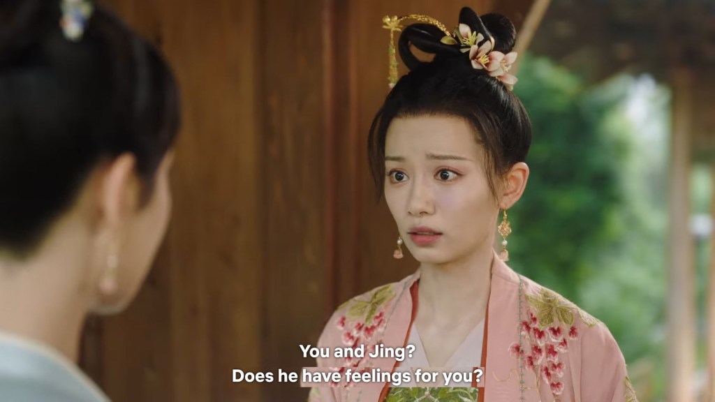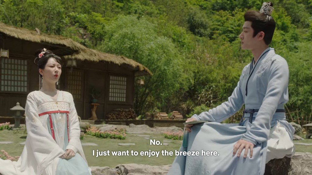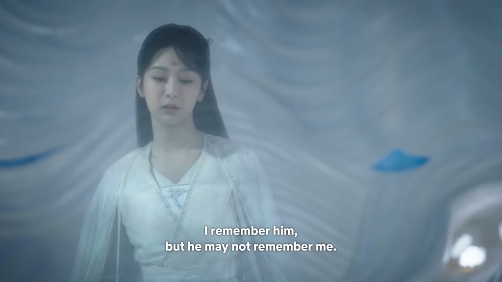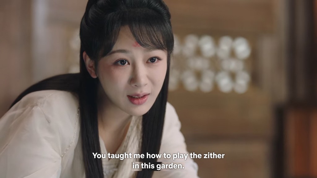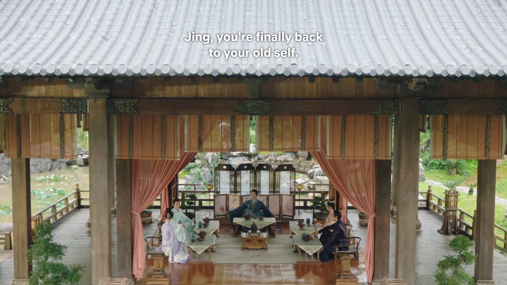 Xinyue asked Jing and Xiaoyao to sit down and as they did, Xinyue felt the scene before her very familiar, something suddenly clicked and she smiled at Fenglong “These two, had feelings for each other right under our noses. No wonder that day Xiaoyao’s song was appealing and full of affection.”