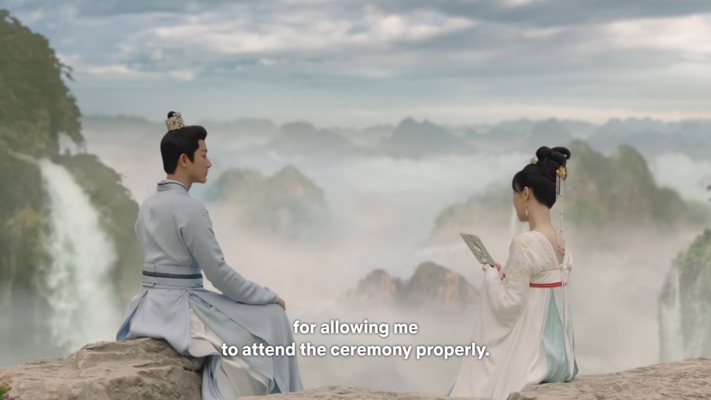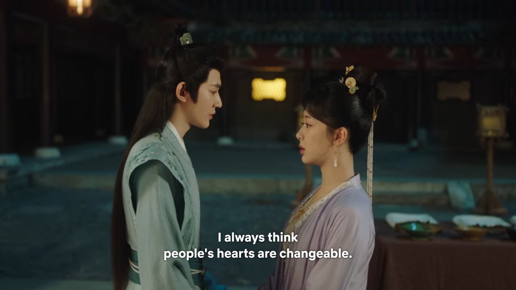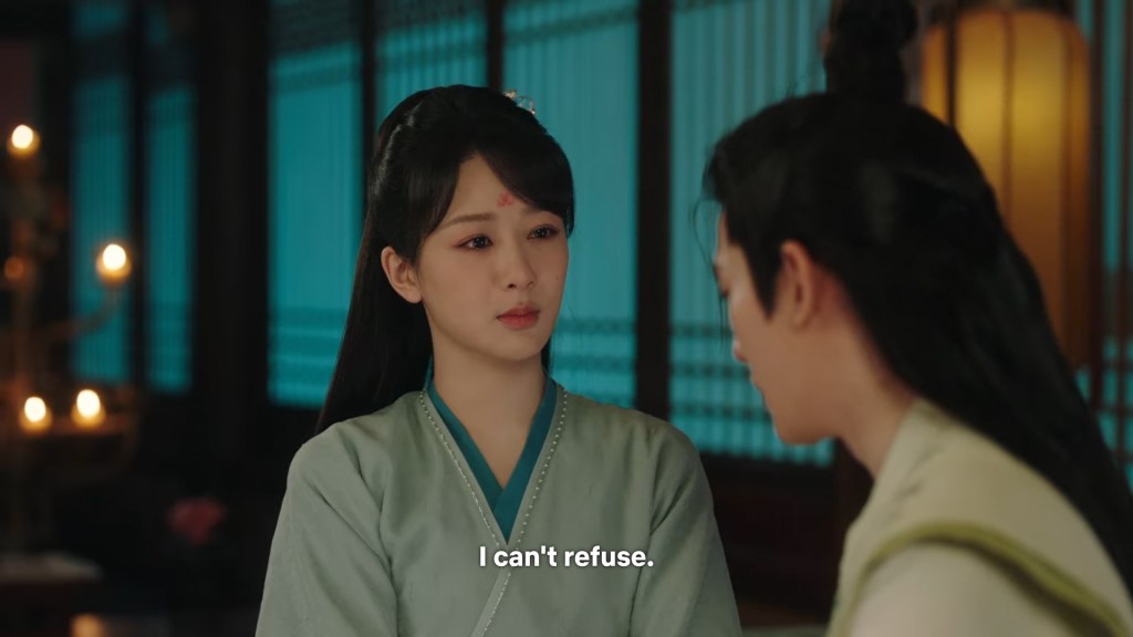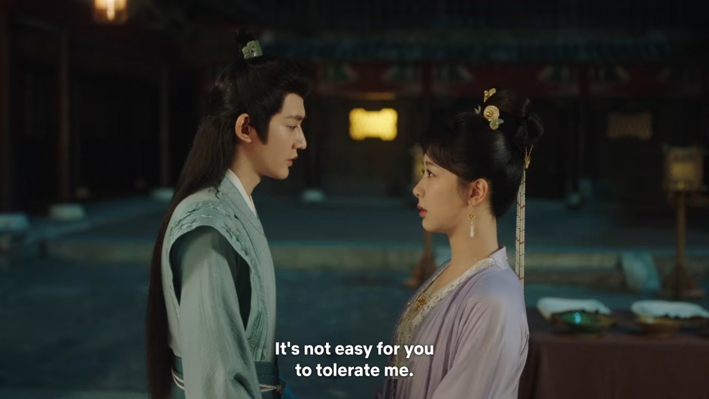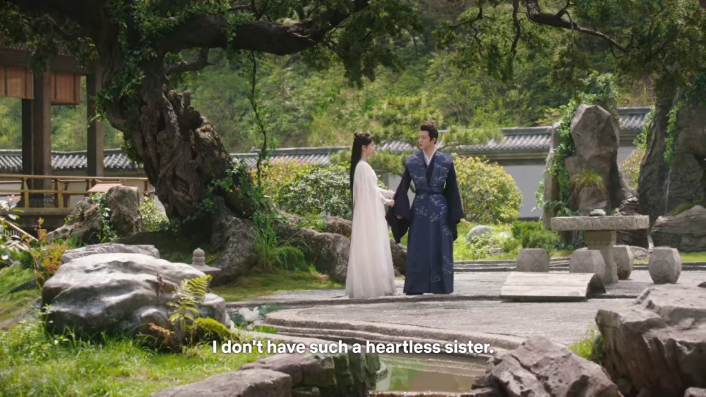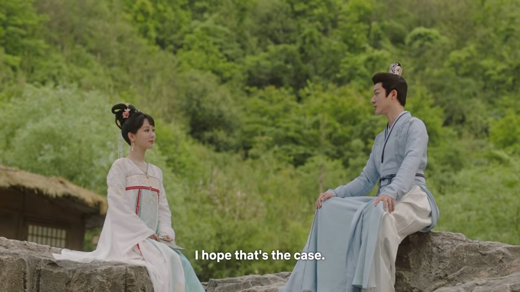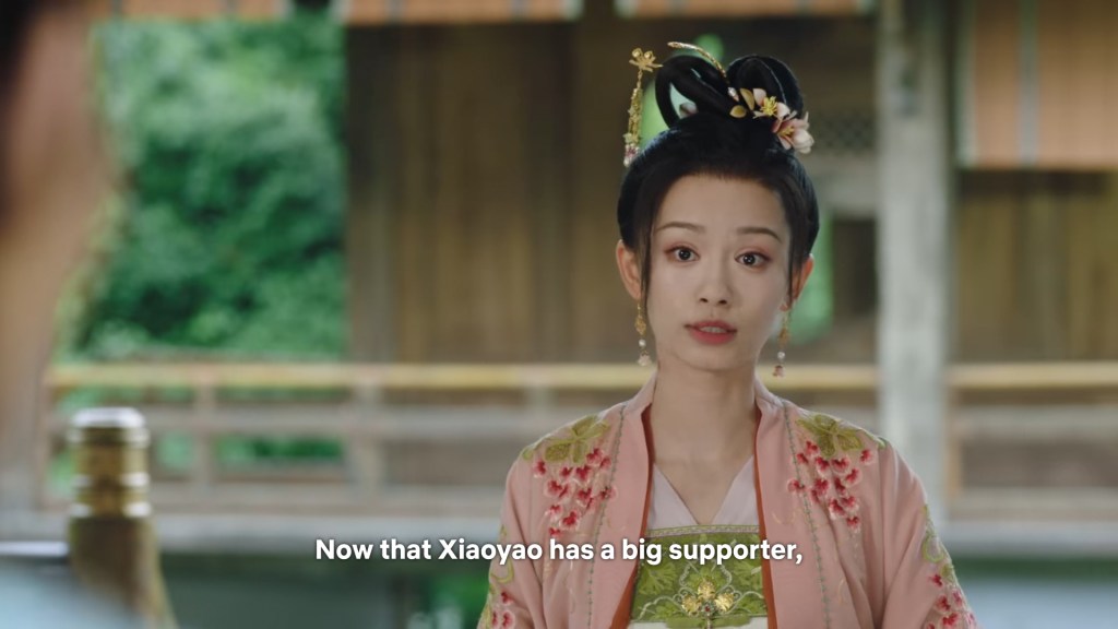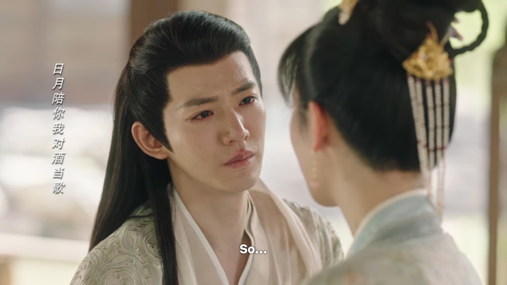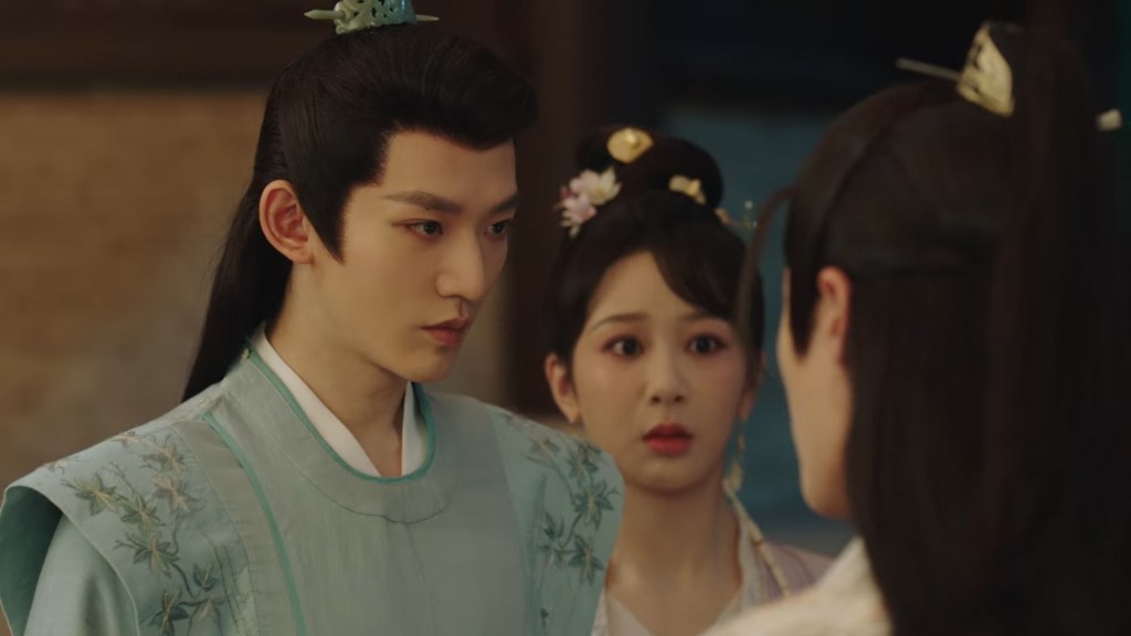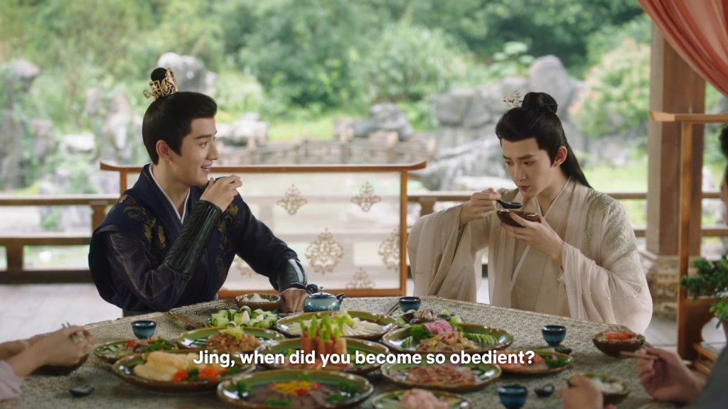 Xinyue asked Jing and Xiaoyao to sit down and as they did, Xinyue felt the scene before her very familiar, something suddenly clicked and she smiled at Fenglong “These two, had feelings for each other right under our noses. No wonder that day Xiaoyao’s song was appealing and full of affection.”
