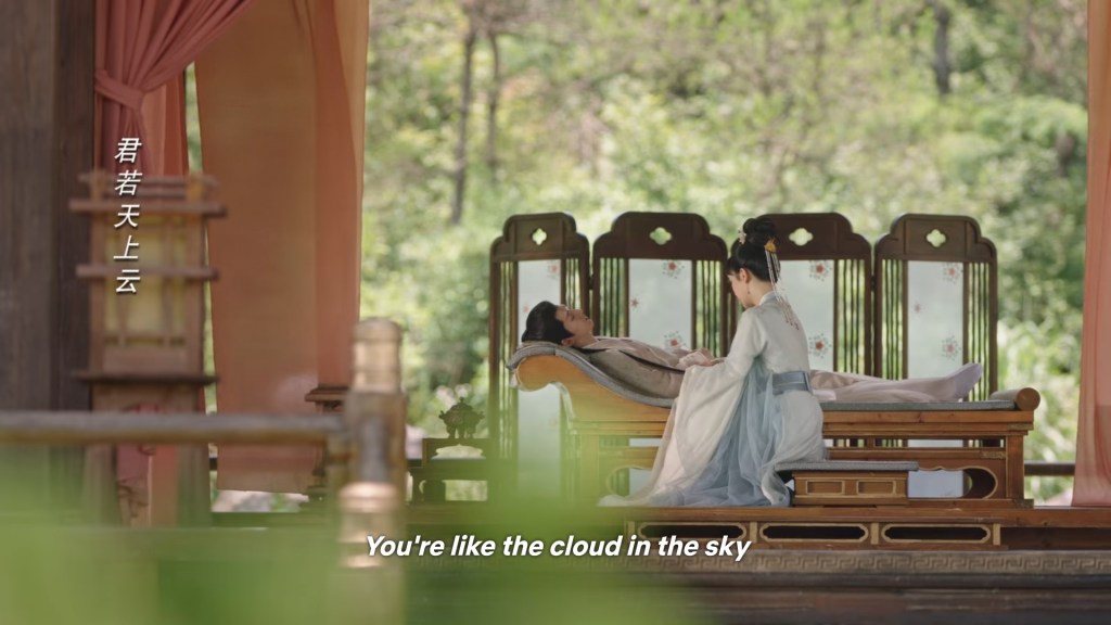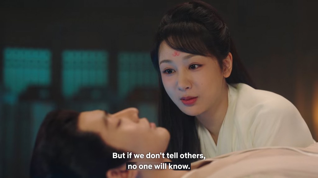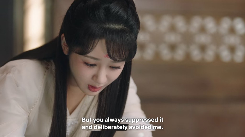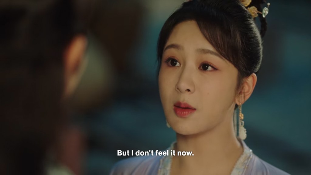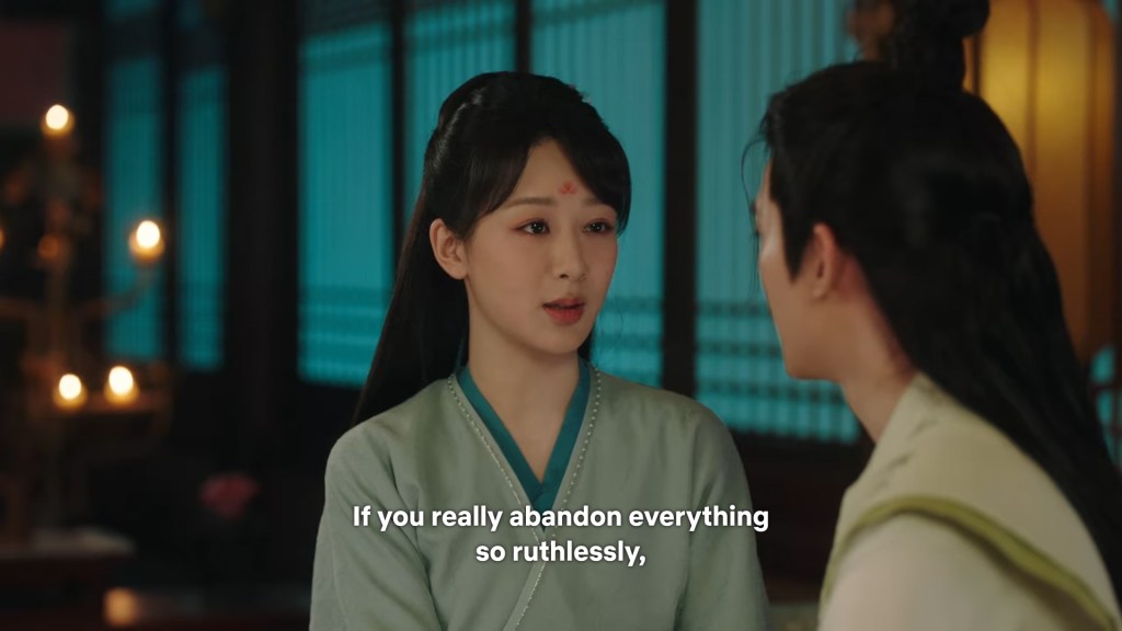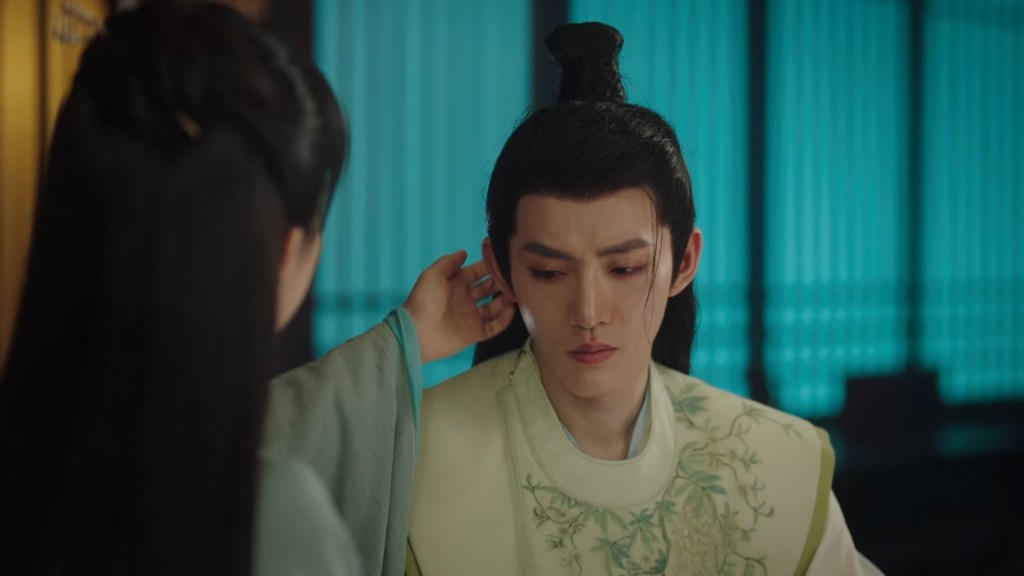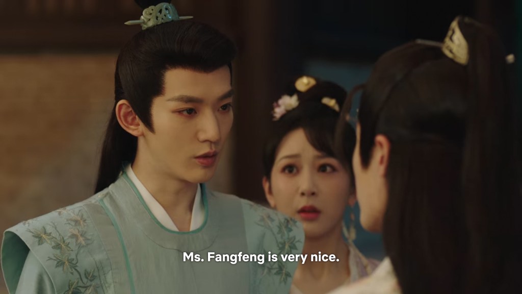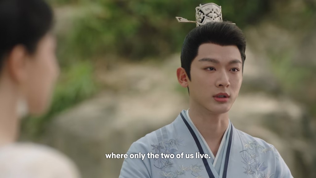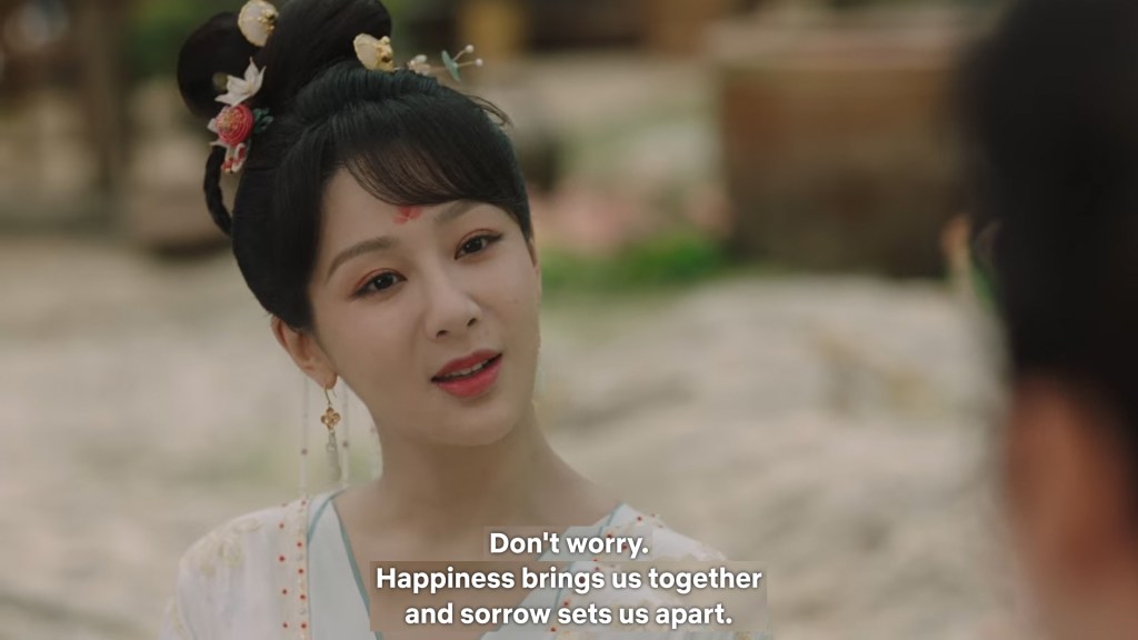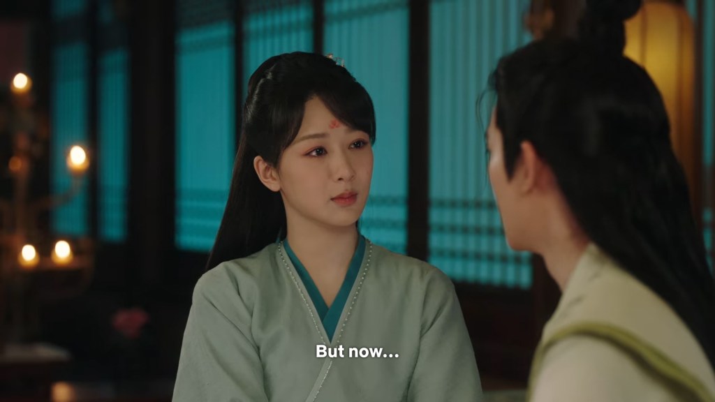 Xinyue asked Jing and Xiaoyao to sit down and as they did, Xinyue felt the scene before her very familiar, something suddenly clicked and she smiled at Fenglong “These two, had feelings for each other right under our noses. No wonder that day Xiaoyao’s song was appealing and full of affection.”