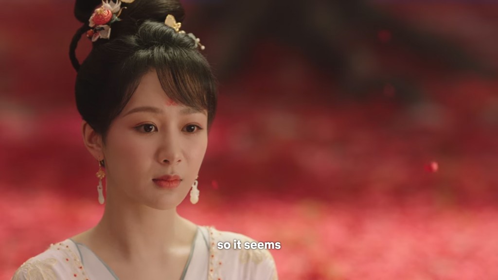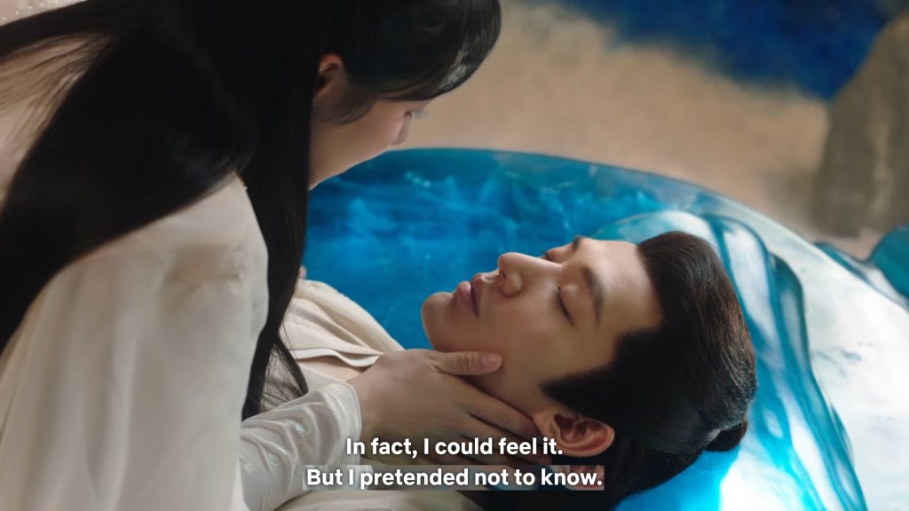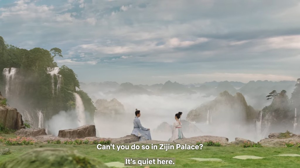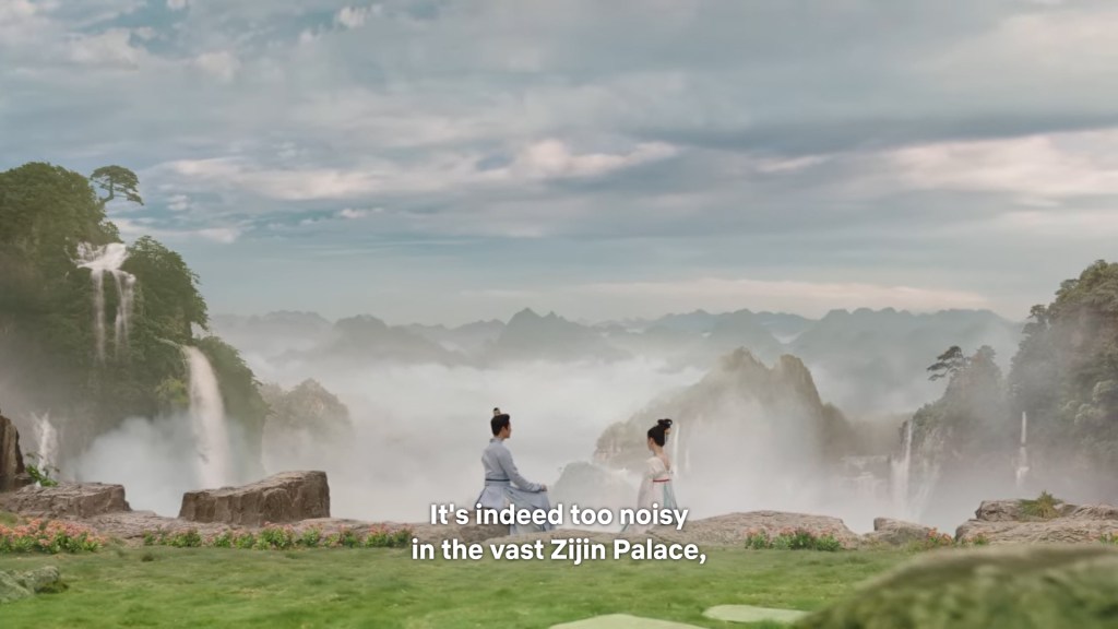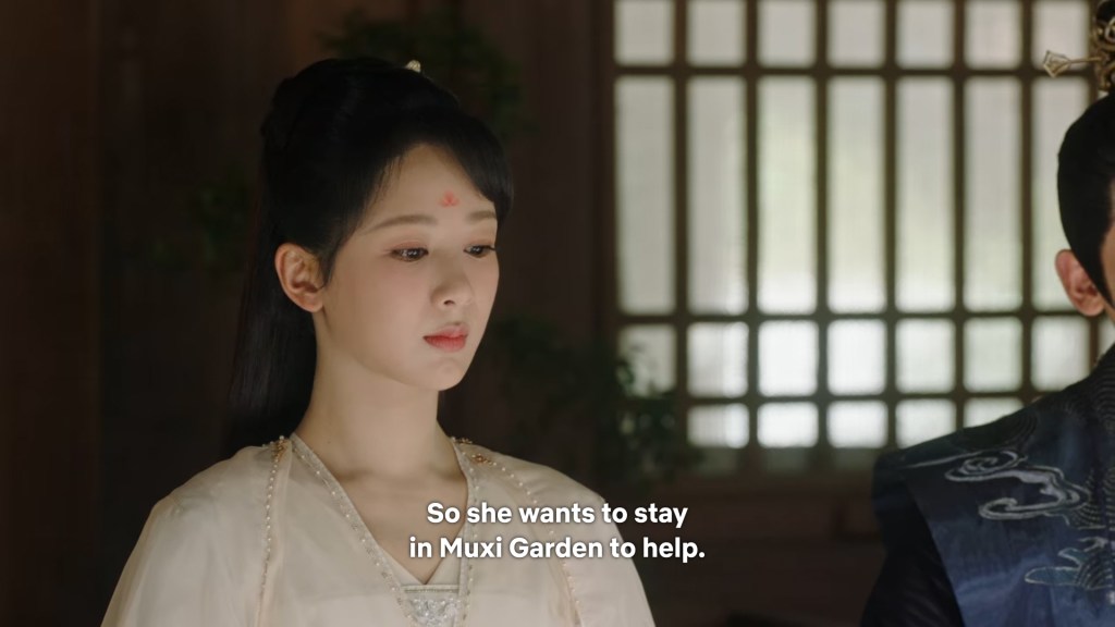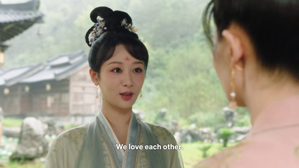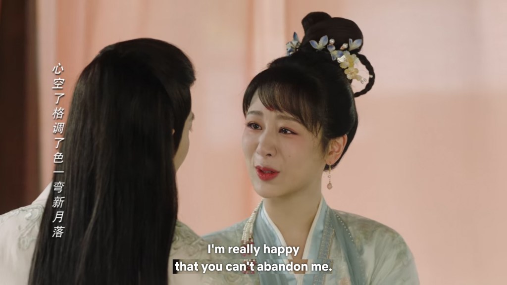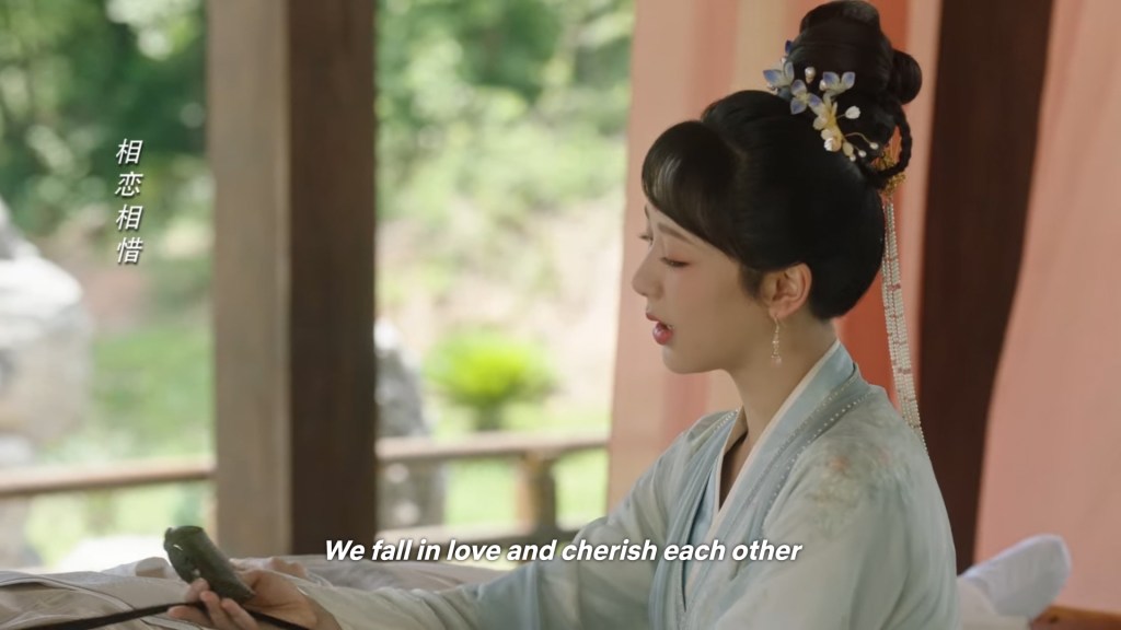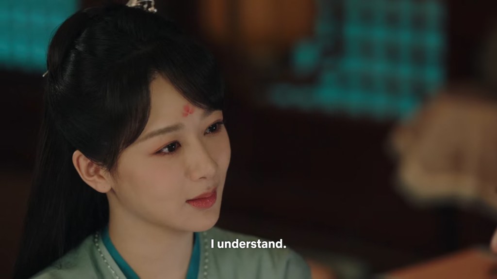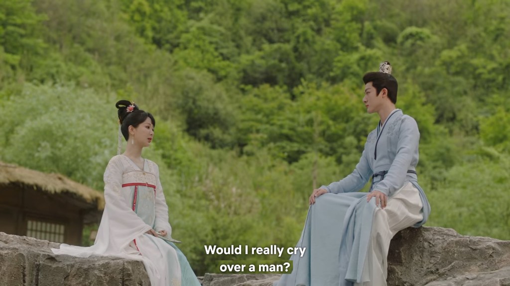 Xinyue asked Jing and Xiaoyao to sit down and as they did, Xinyue felt the scene before her very familiar, something suddenly clicked and she smiled at Fenglong “These two, had feelings for each other right under our noses. No wonder that day Xiaoyao’s song was appealing and full of affection.”