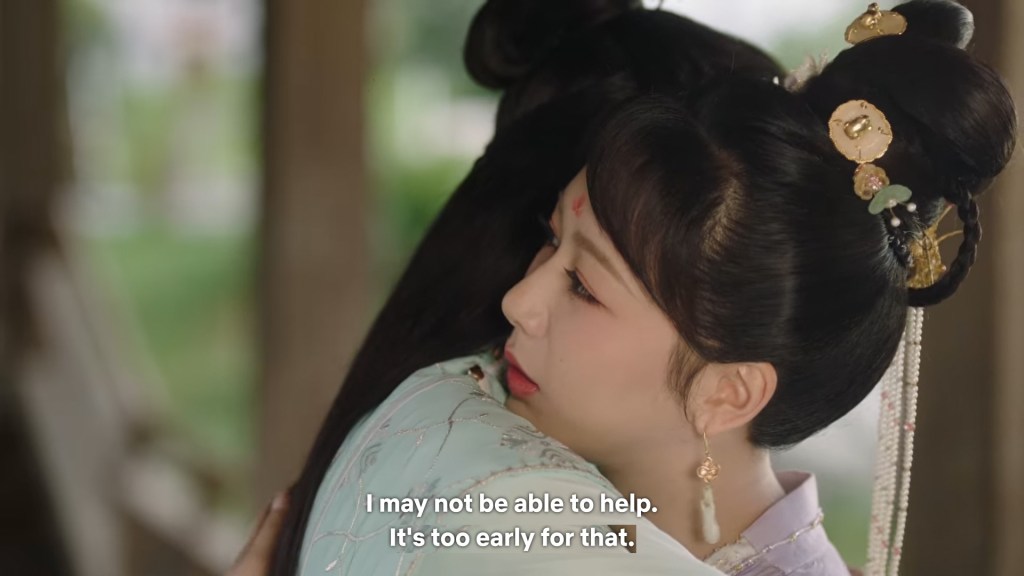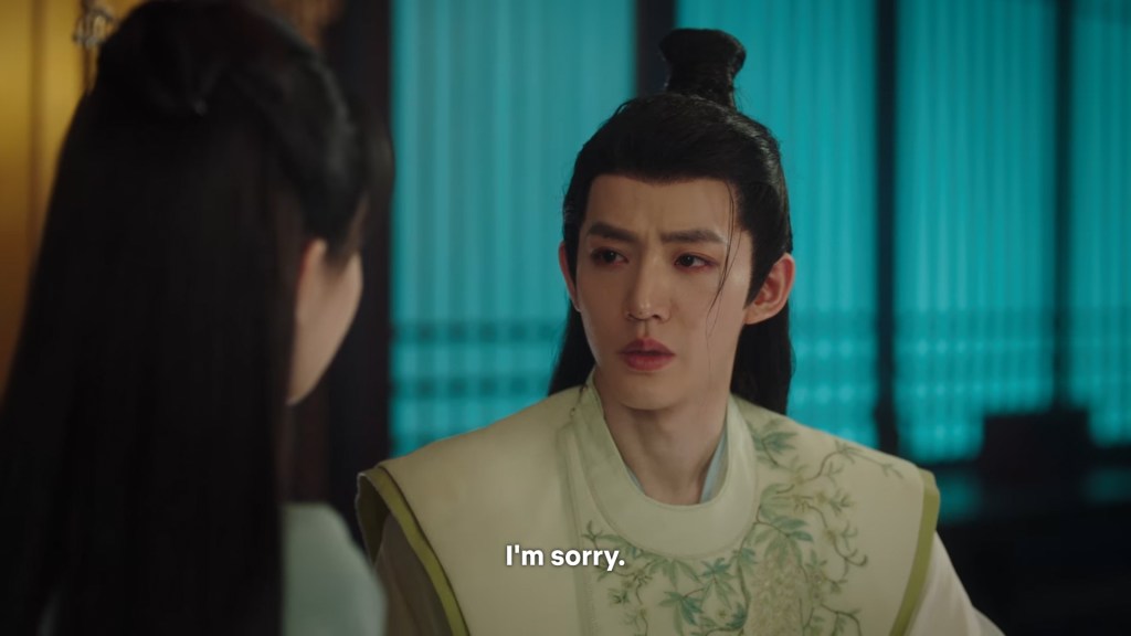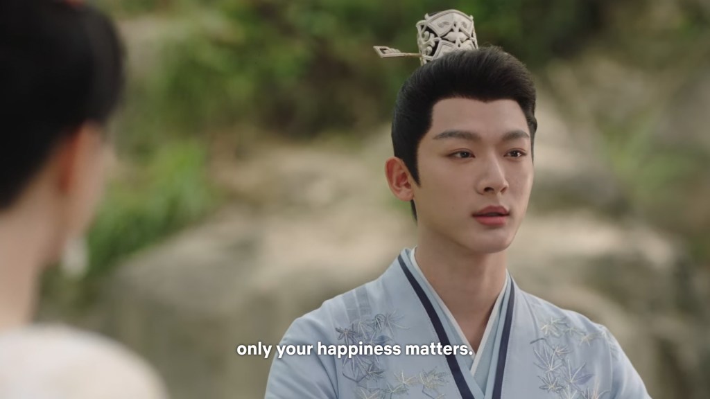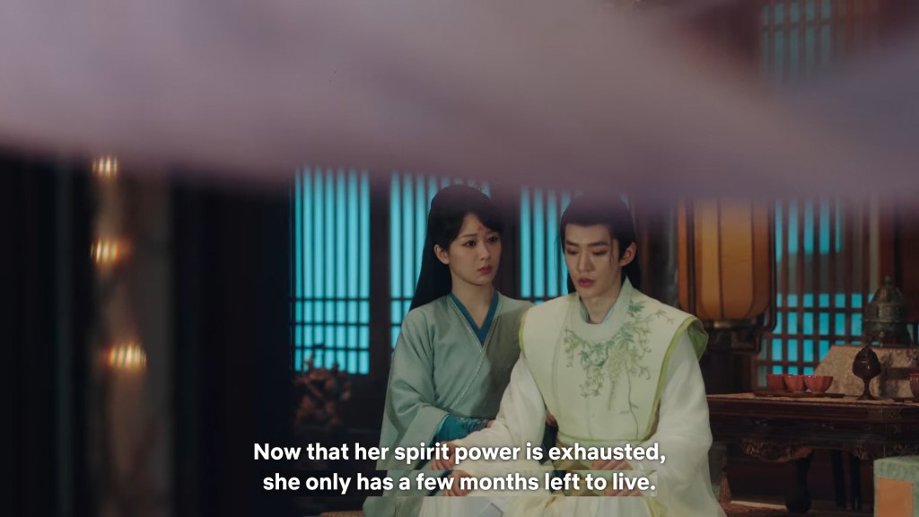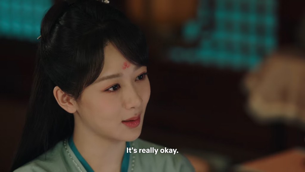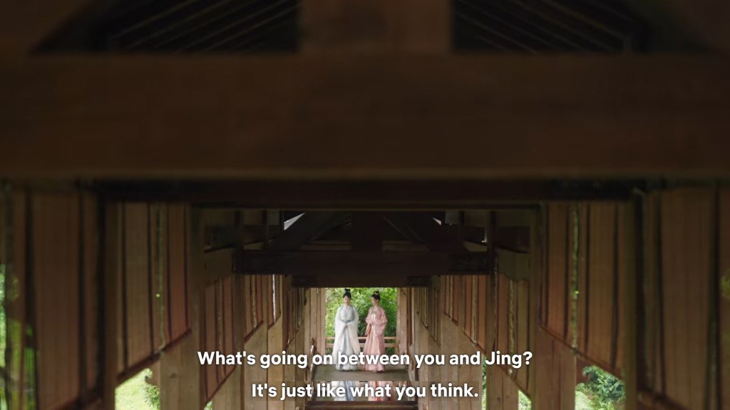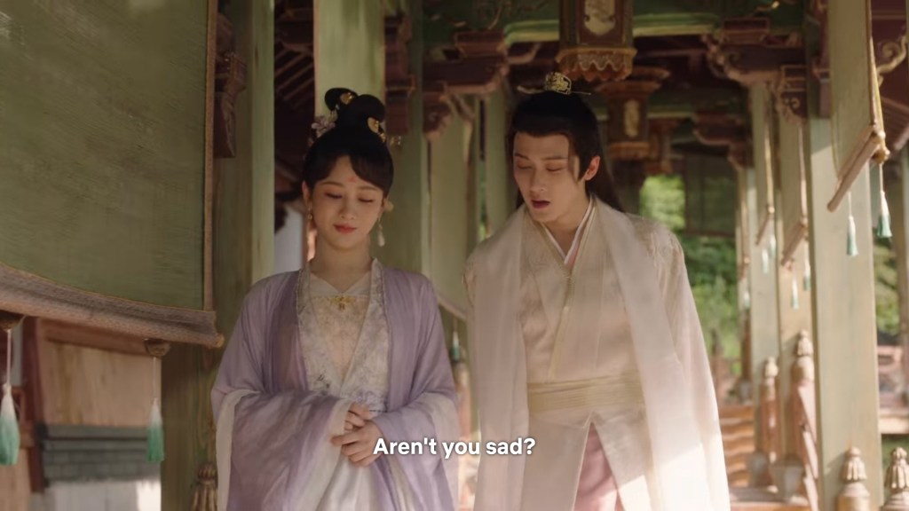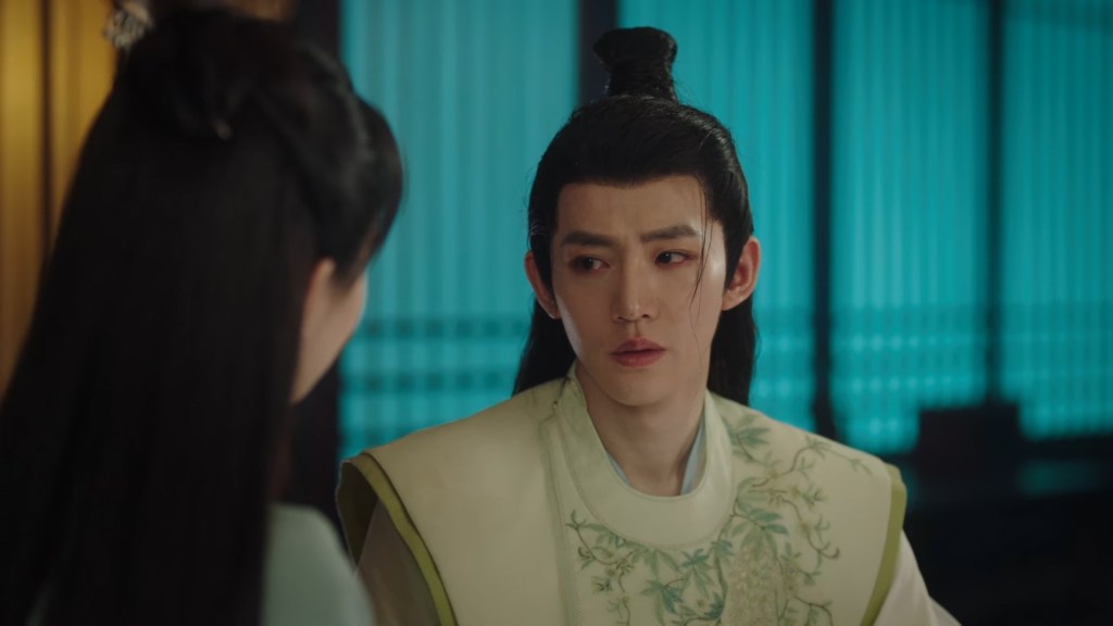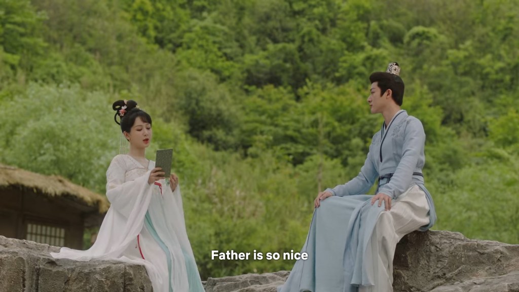 Xinyue asked Jing and Xiaoyao to sit down and as they did, Xinyue felt the scene before her very familiar, something suddenly clicked and she smiled at Fenglong “These two, had feelings for each other right under our noses. No wonder that day Xiaoyao’s song was appealing and full of affection.”