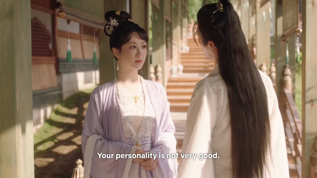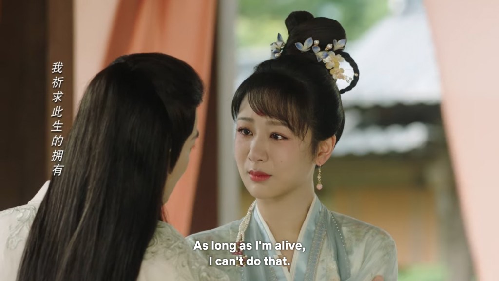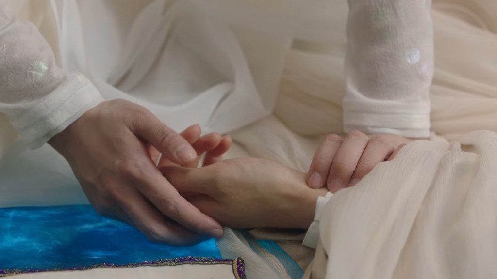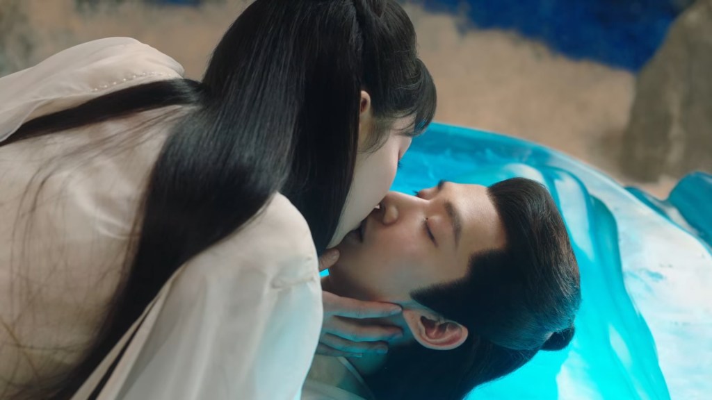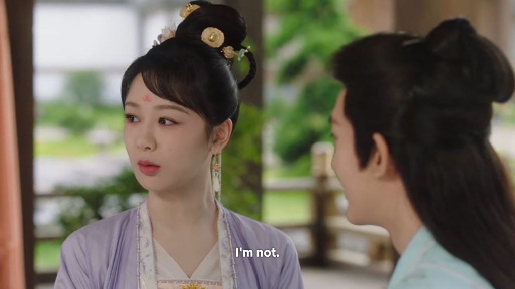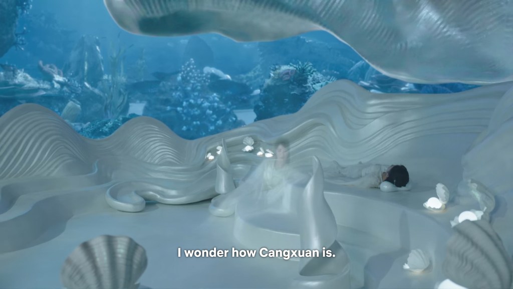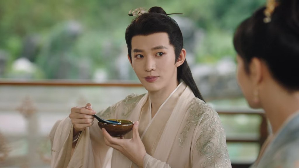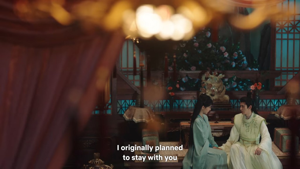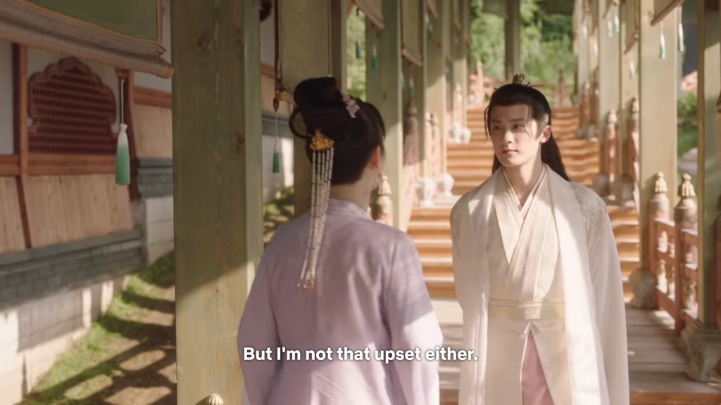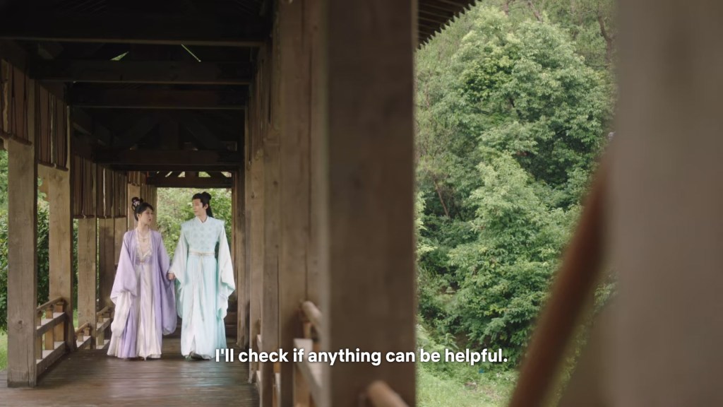 Xinyue asked Jing and Xiaoyao to sit down and as they did, Xinyue felt the scene before her very familiar, something suddenly clicked and she smiled at Fenglong “These two, had feelings for each other right under our noses. No wonder that day Xiaoyao’s song was appealing and full of affection.”