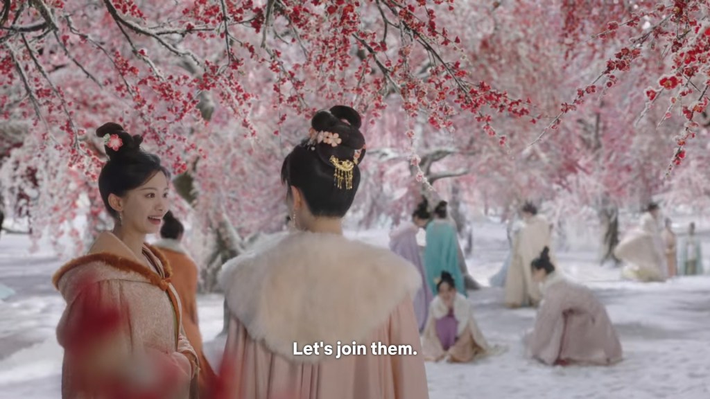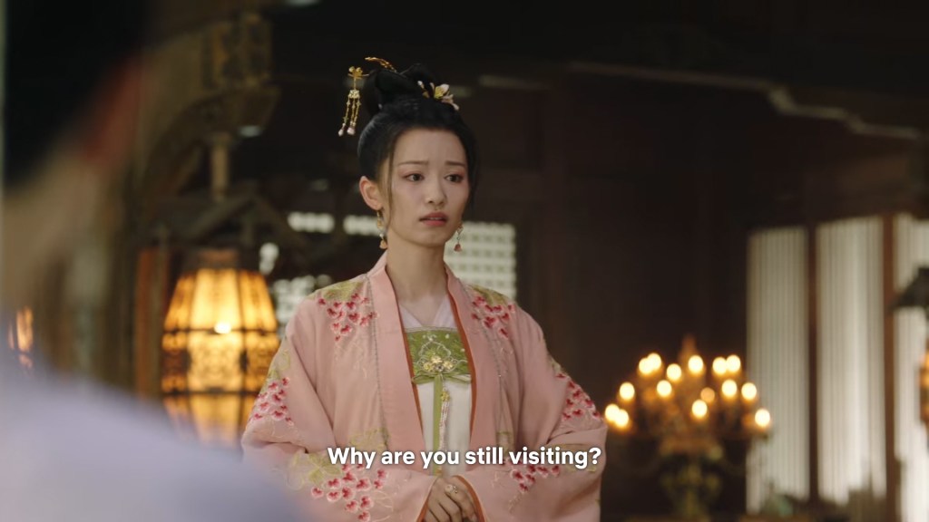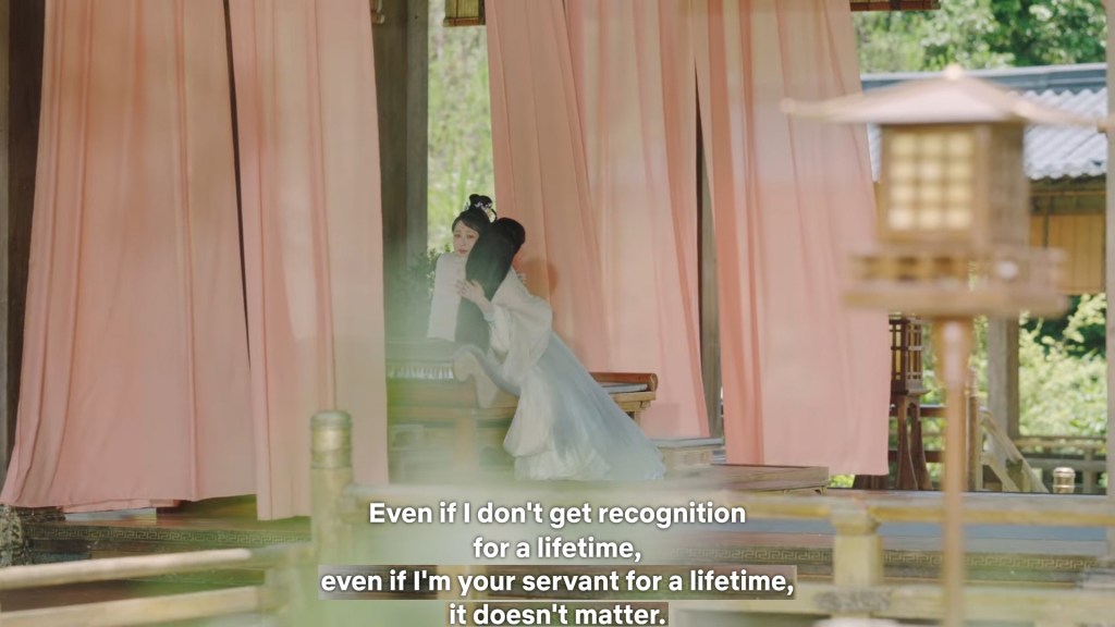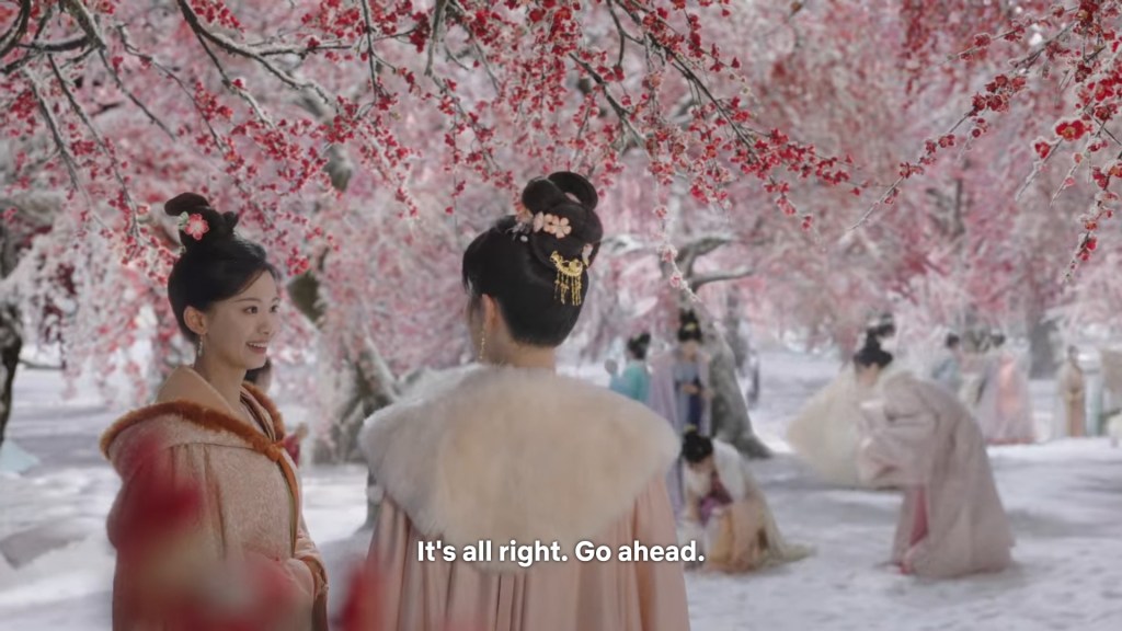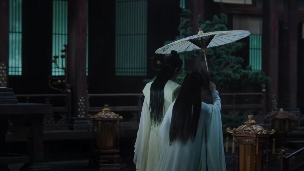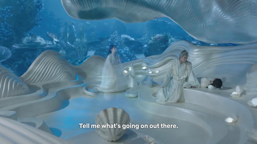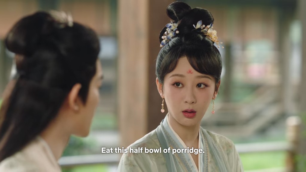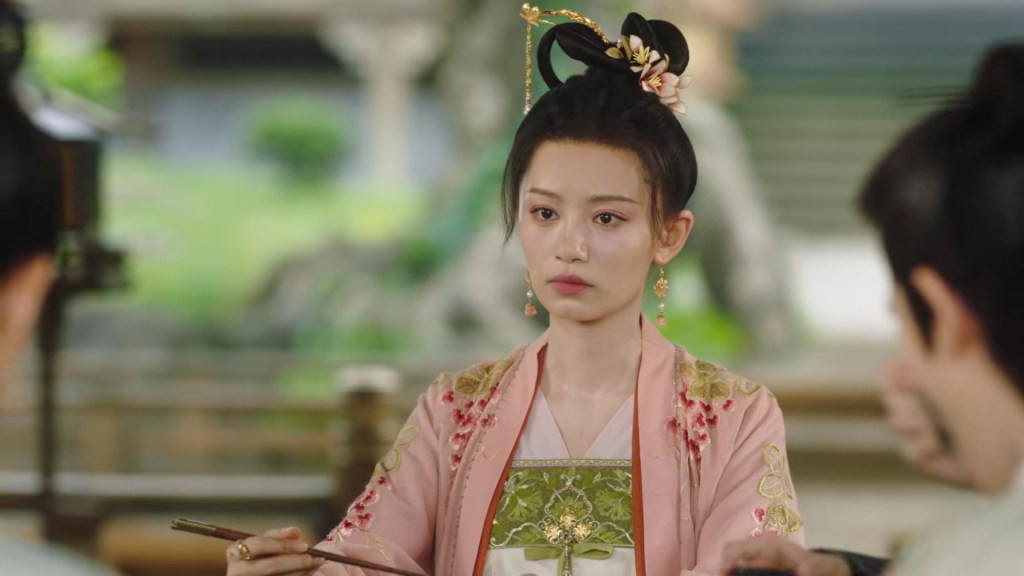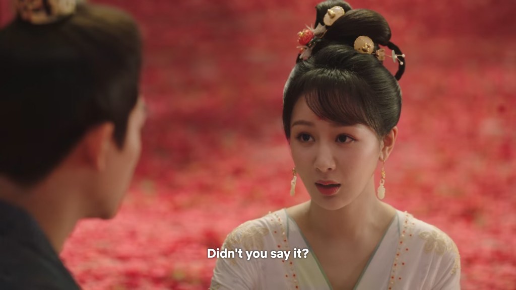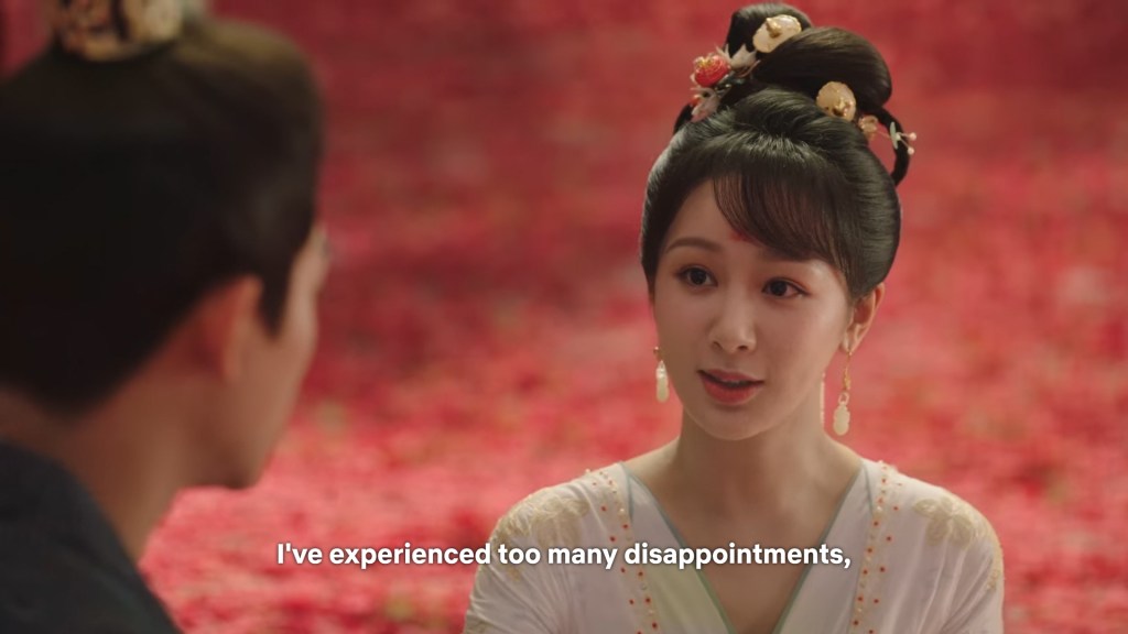 Xinyue asked Jing and Xiaoyao to sit down and as they did, Xinyue felt the scene before her very familiar, something suddenly clicked and she smiled at Fenglong “These two, had feelings for each other right under our noses. No wonder that day Xiaoyao’s song was appealing and full of affection.”