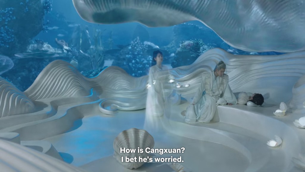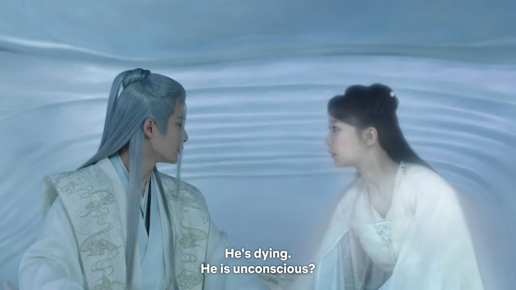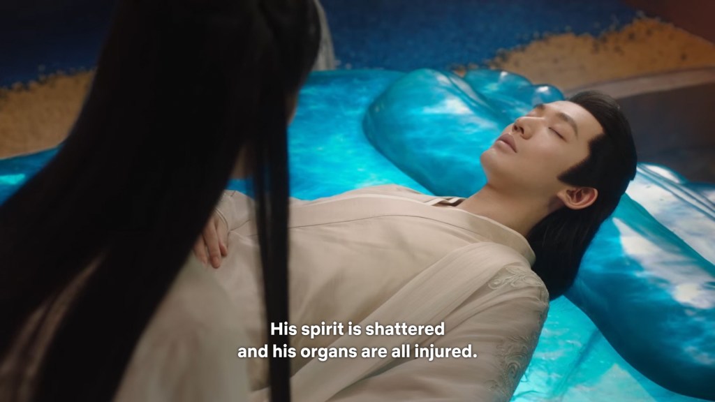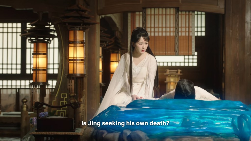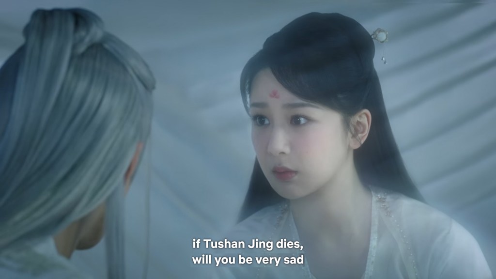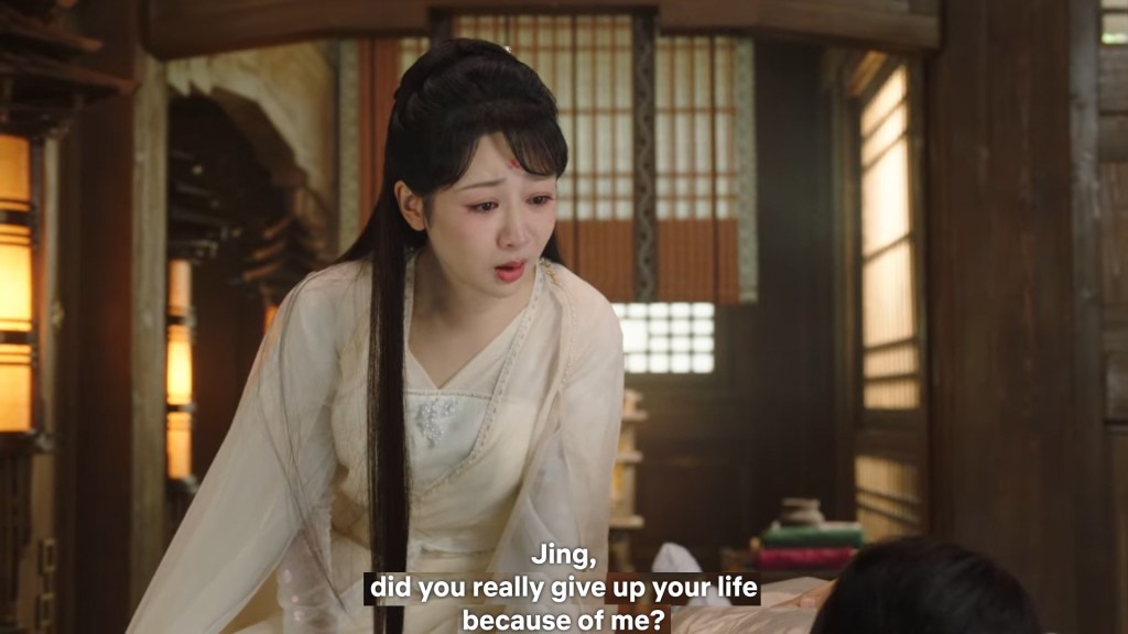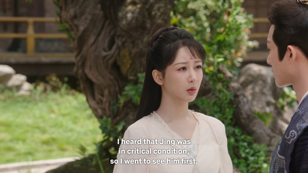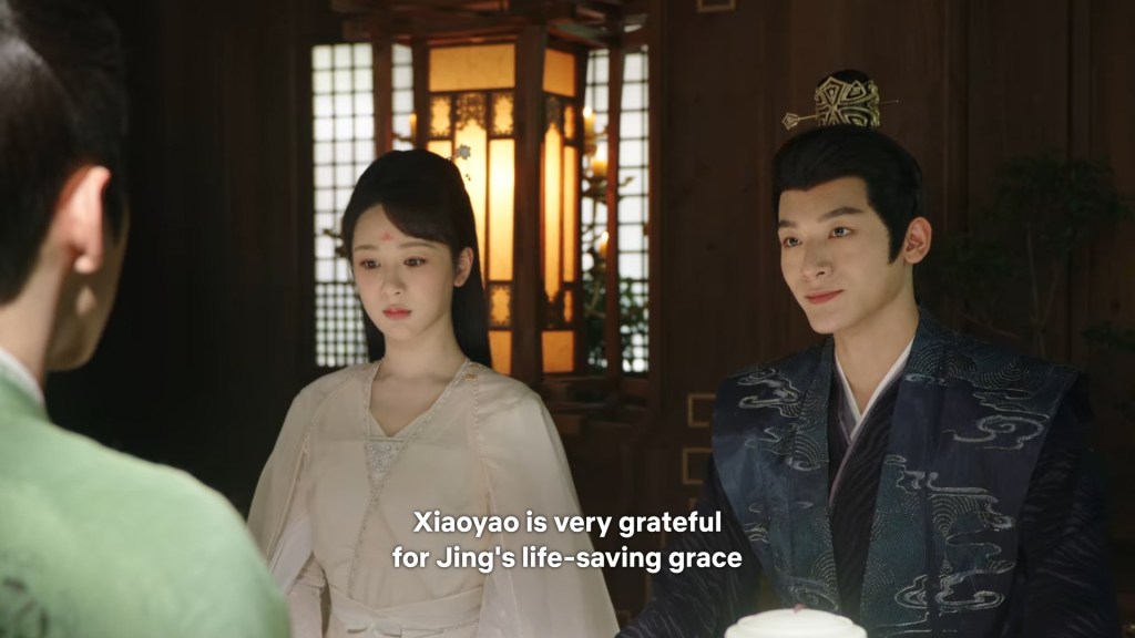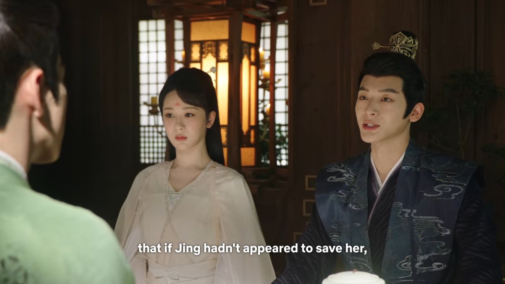 Cang Xuan told Xinyue and Fenglong ” I was just telling Xiaoyao, if Jing did not appear coincidentally to save her that day, even if I had rushed there it would have been too late. Xiaoyao is very grateful to him. She happens to know some remedies that may help, so she wants to stay to take care of Jing.”