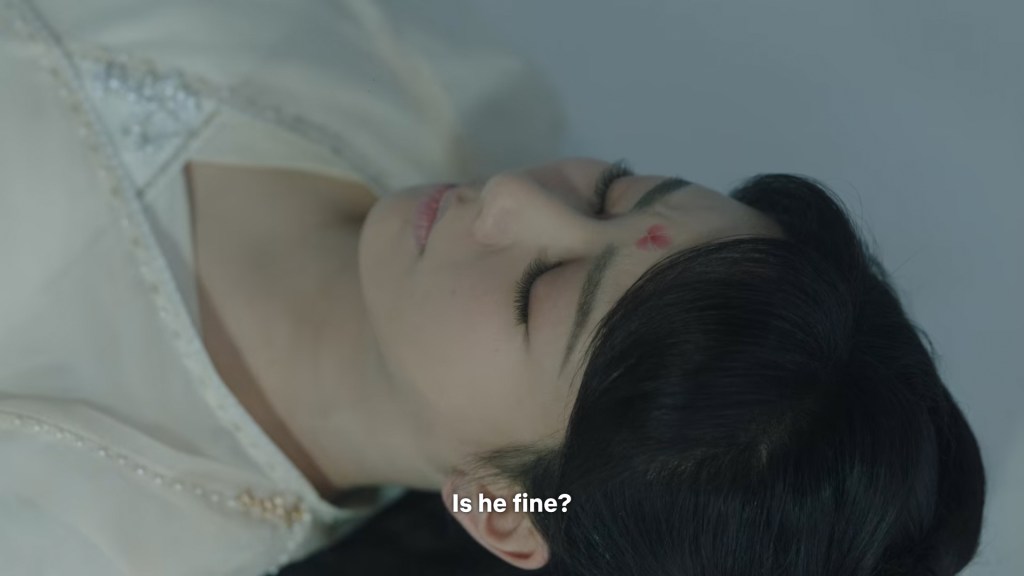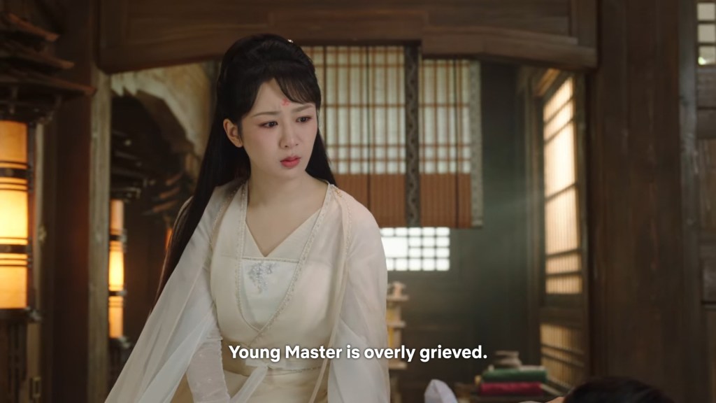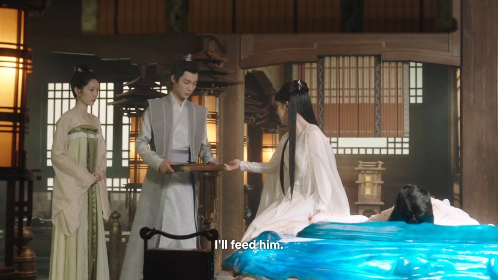 Jingye had prepared the medicine and was waiting anxiously for Xiaoyao. She had secretly tried to feed Jing some medicine, but it won’t go down at all, so she could only tidy things up and wait for Xiaoyao to return.