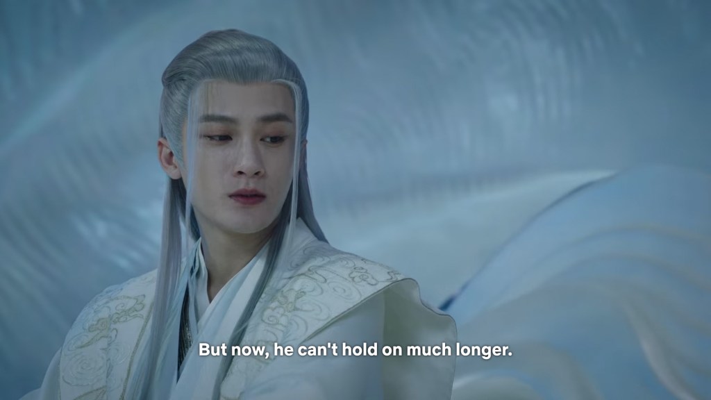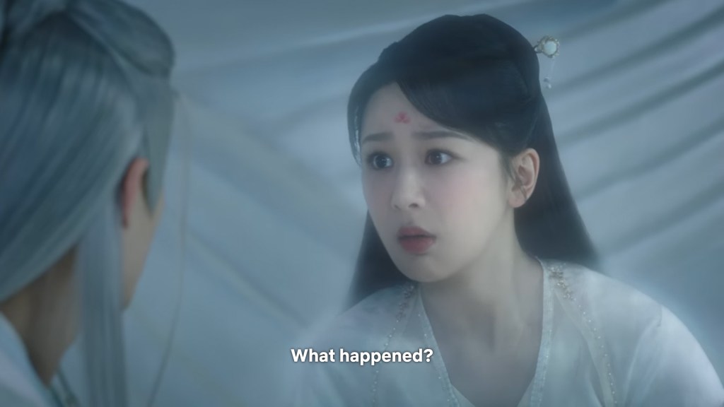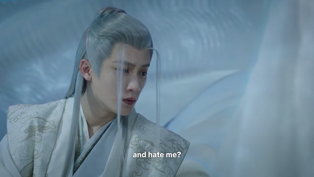 Xiaoyao thought she said the wrong thing again, when Fangfeng bei turned back into Xiangliu who sent her backing into Jing’s arms with his threatening demon eyes.