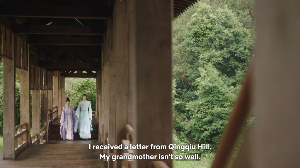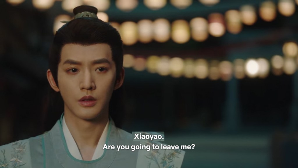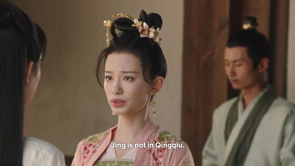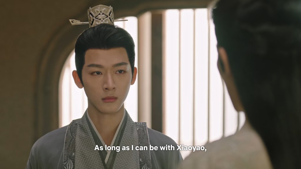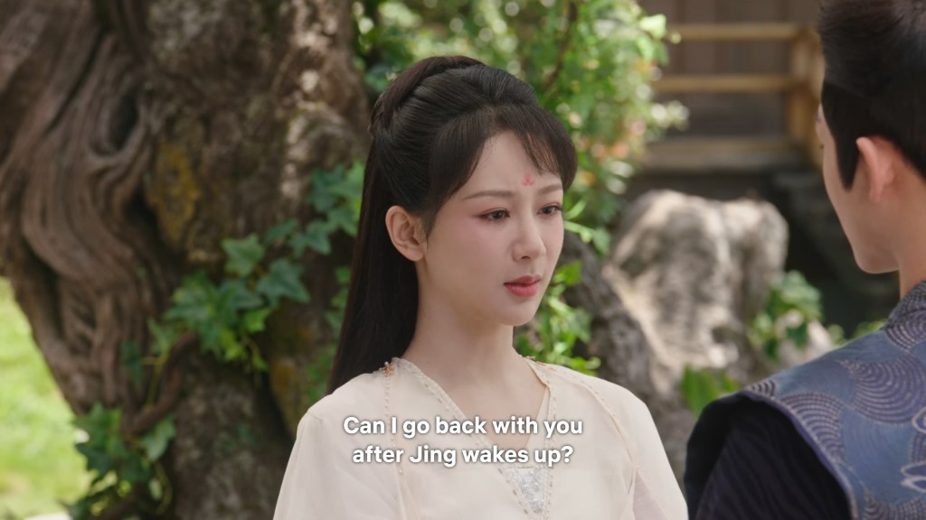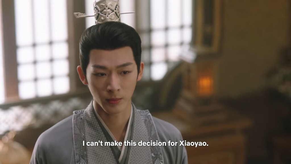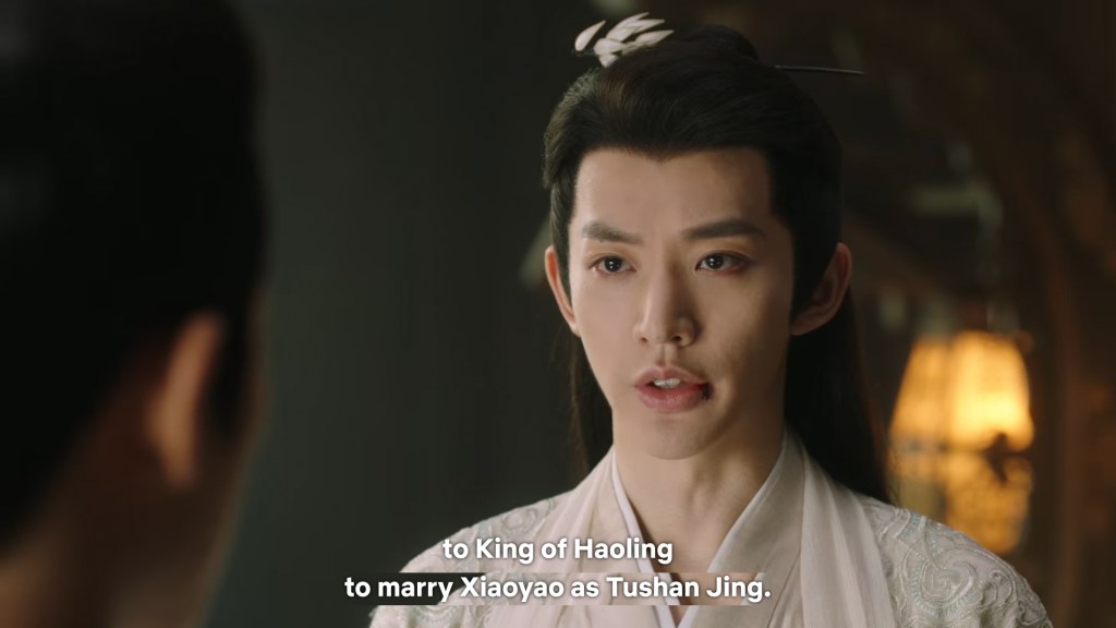 In the drama, Xiaoyao actually informed Jing she was going back to Haoling, which is different from novel Xiaoyao who left for Haoling without telling him. But in the novel, Xiaoyao had gone to Qingqiu with him to meet his grandmother first. This entire part was removed to simplify the storyline…