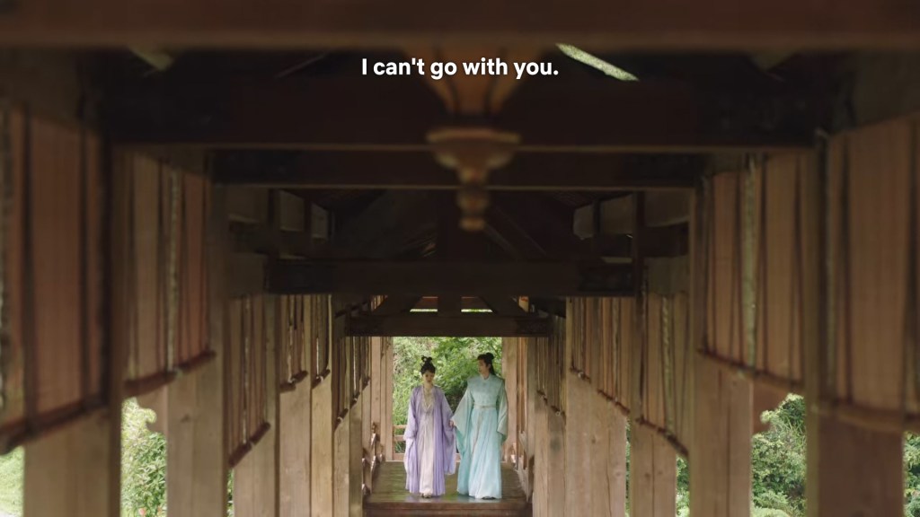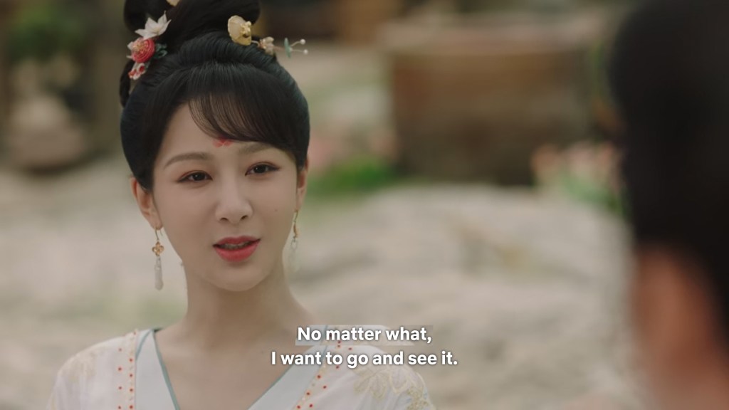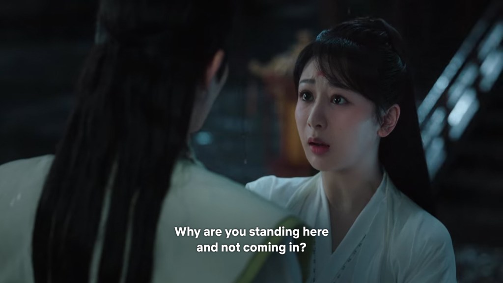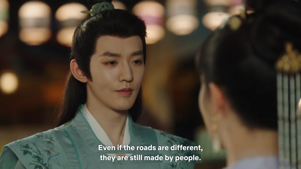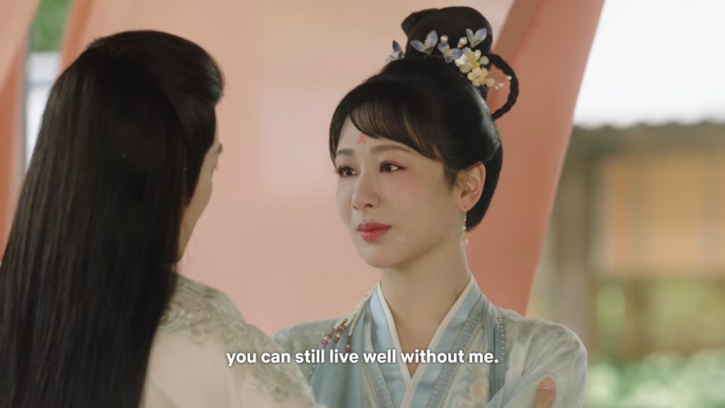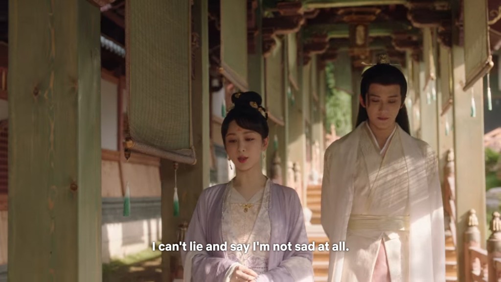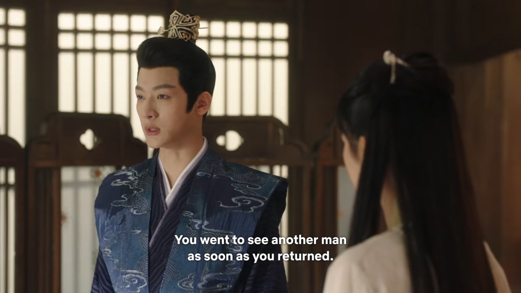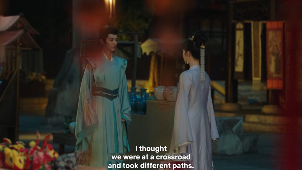 In the drama, Xiaoyao actually informed Jing she was going back to Haoling, which is different from novel Xiaoyao who left for Haoling without telling him. But in the novel, Xiaoyao had gone to Qingqiu with him to meet his grandmother first. This entire part was removed to simplify the storyline…