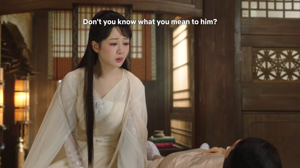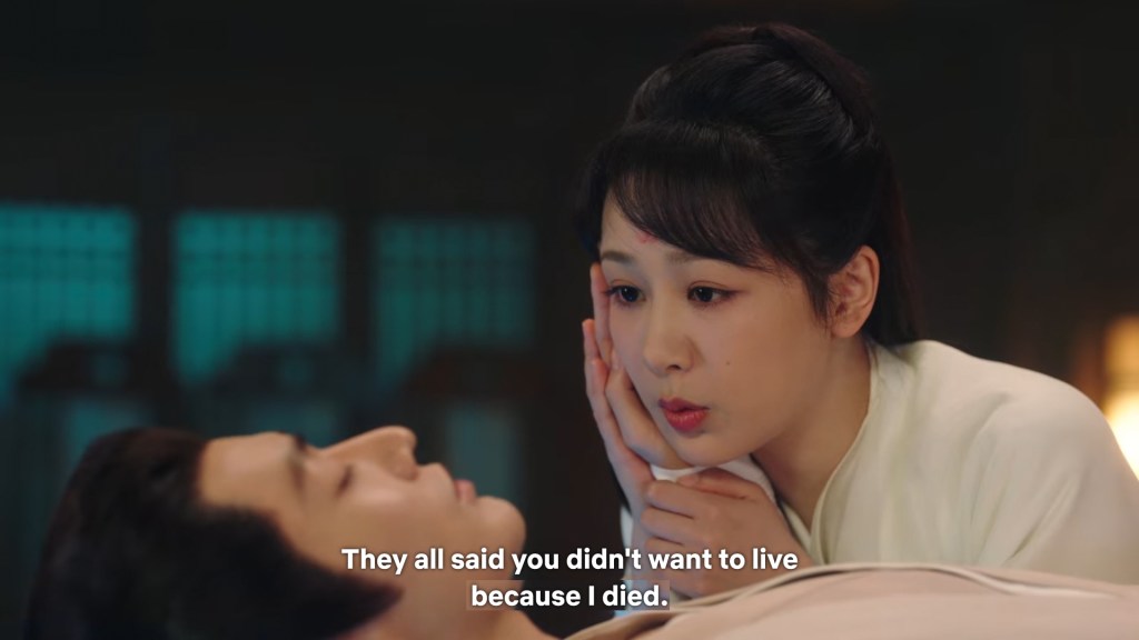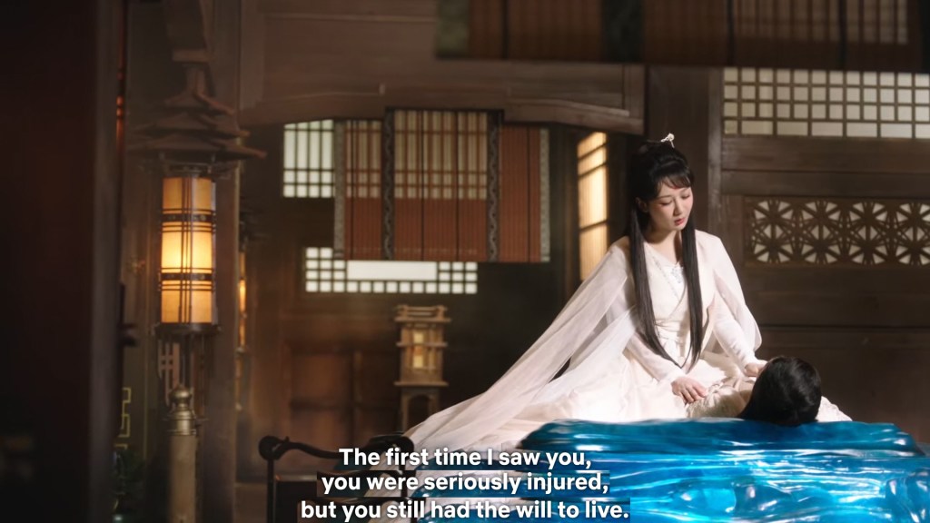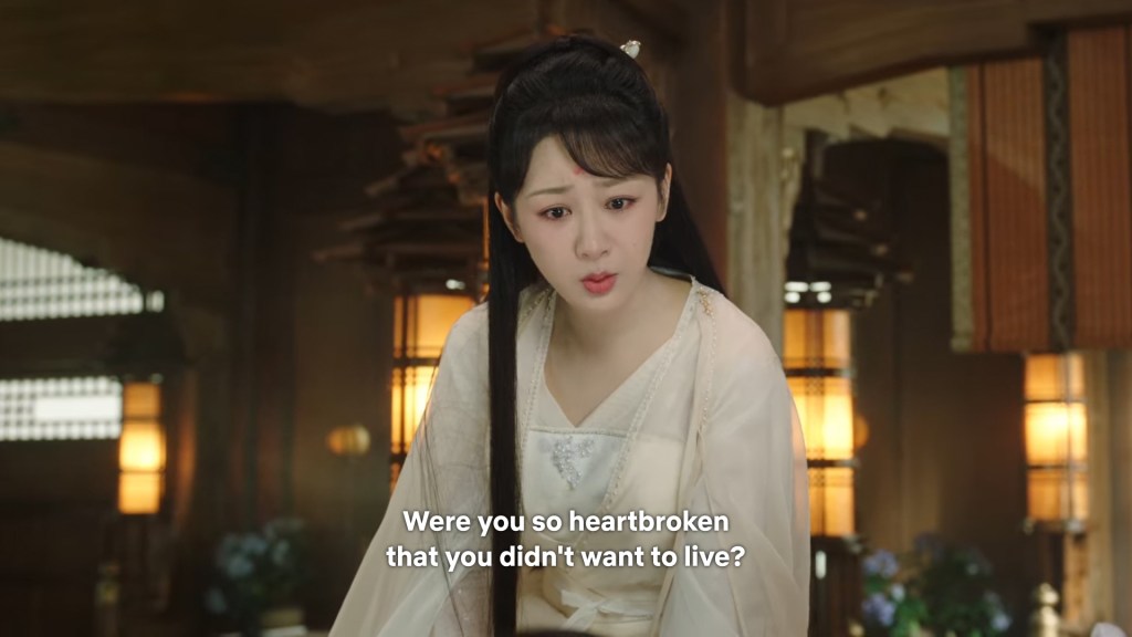 Xiaoyao leaned over Jing, and mumbled to herself ” Did you really give up living because you were grieving for me? Xiaoyao felt incredulous but the hard shell around her heart completely shattered, the thread that she had tried to cut a few times, finally become a net in this moment.