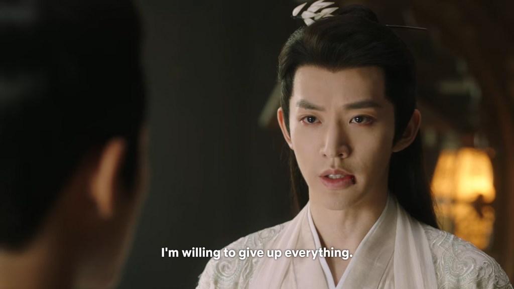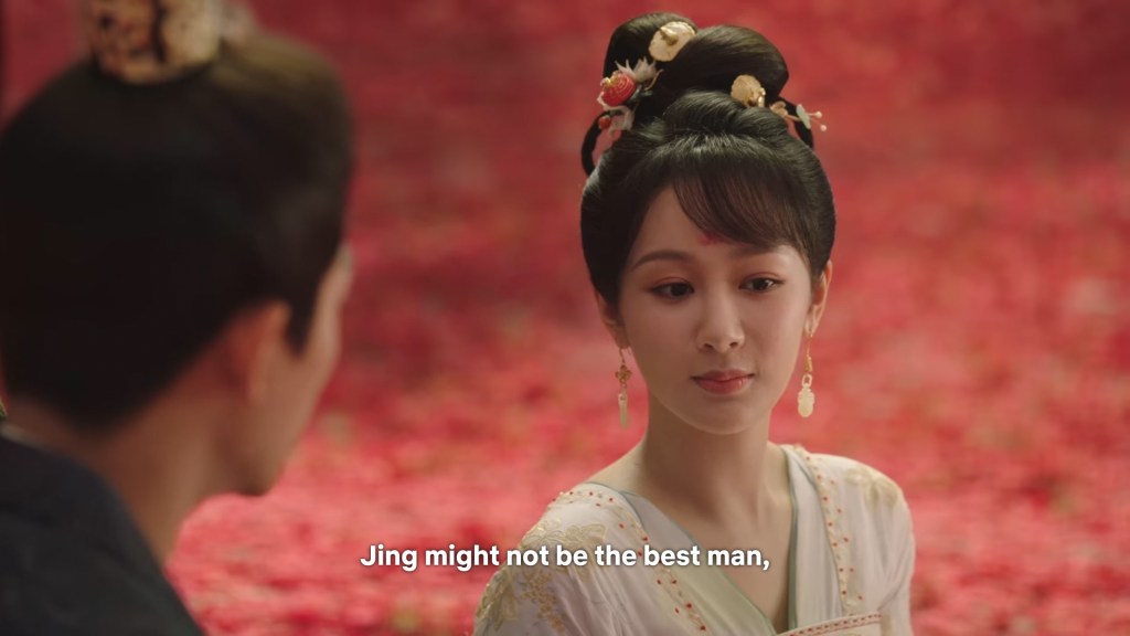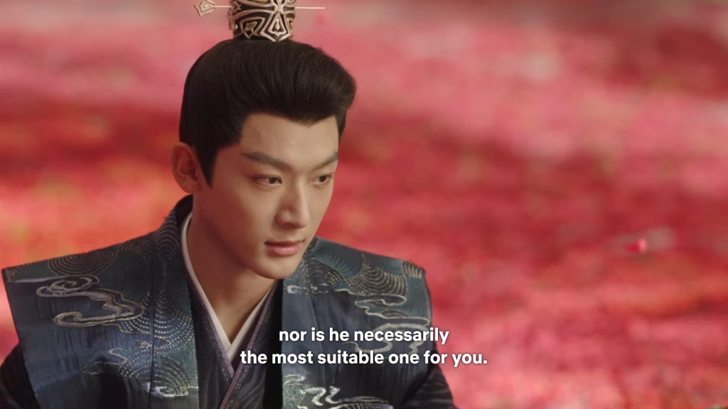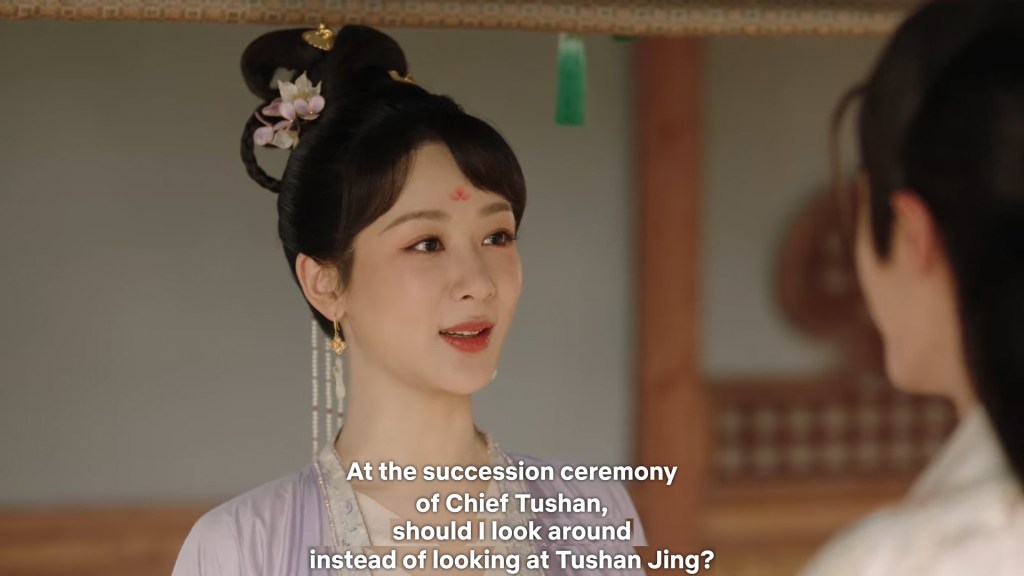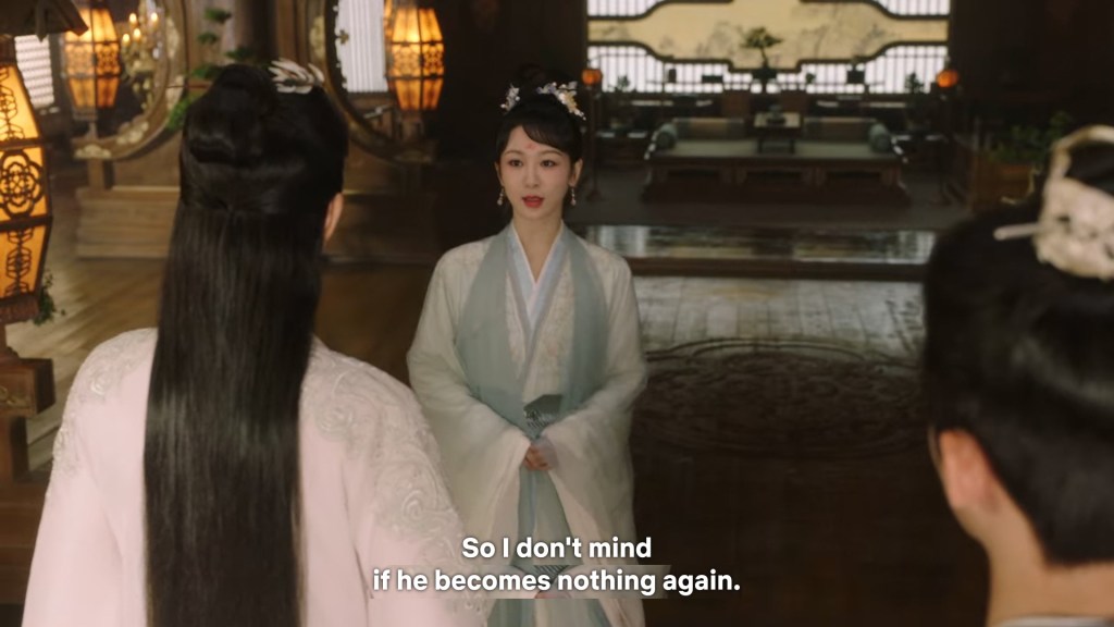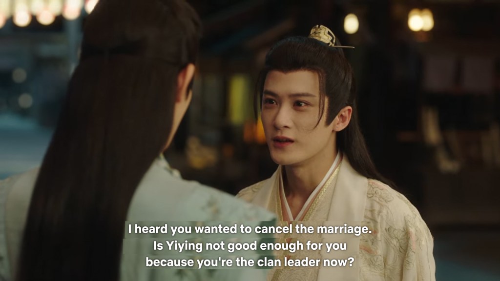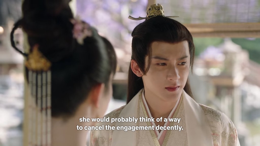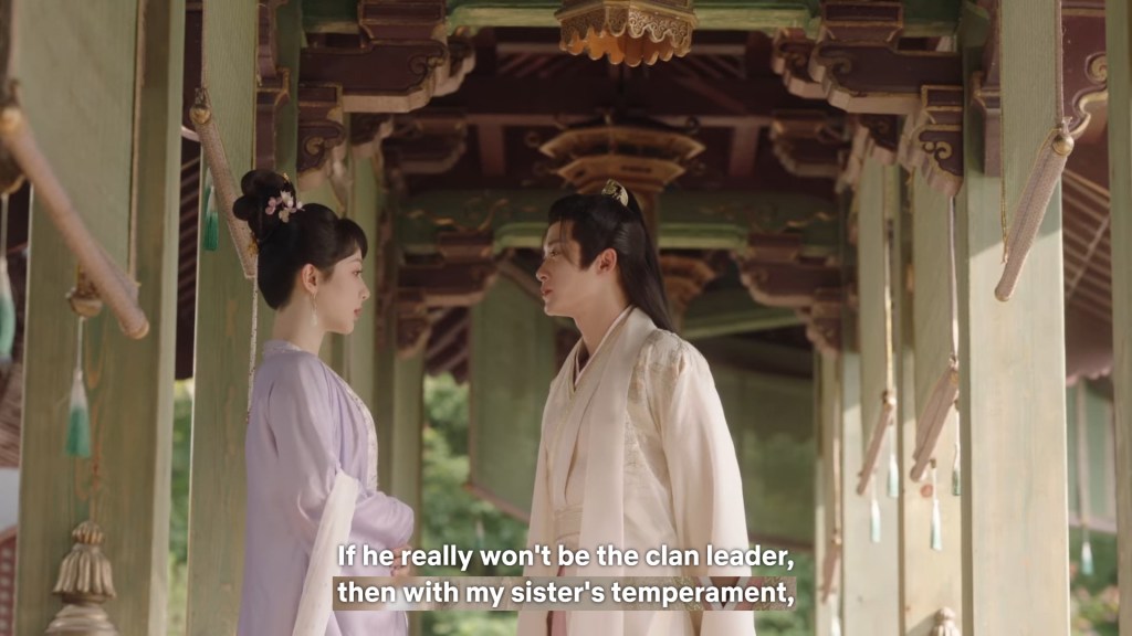 Fangfeng Bei said ” I heard from my sister that Jing did not want to become the clan leader. He had knelt in front of the Grand Madam’s room for a whole day to cancel his engagement. If he really won’t become the clan leader, knowing my sister, she would have found a decent way to cancel the engagement. But now Tushan Jing is the clan leader, her years of hope is right before her, she won’t give this up.”