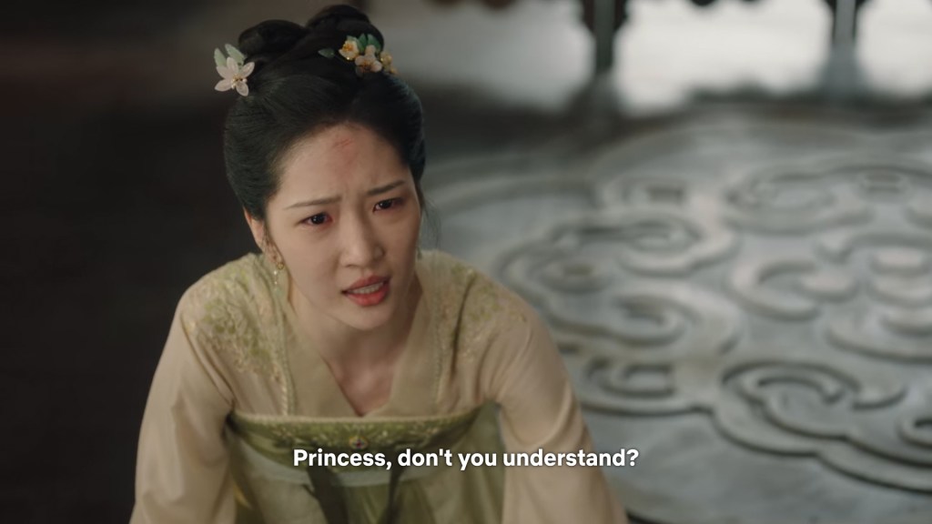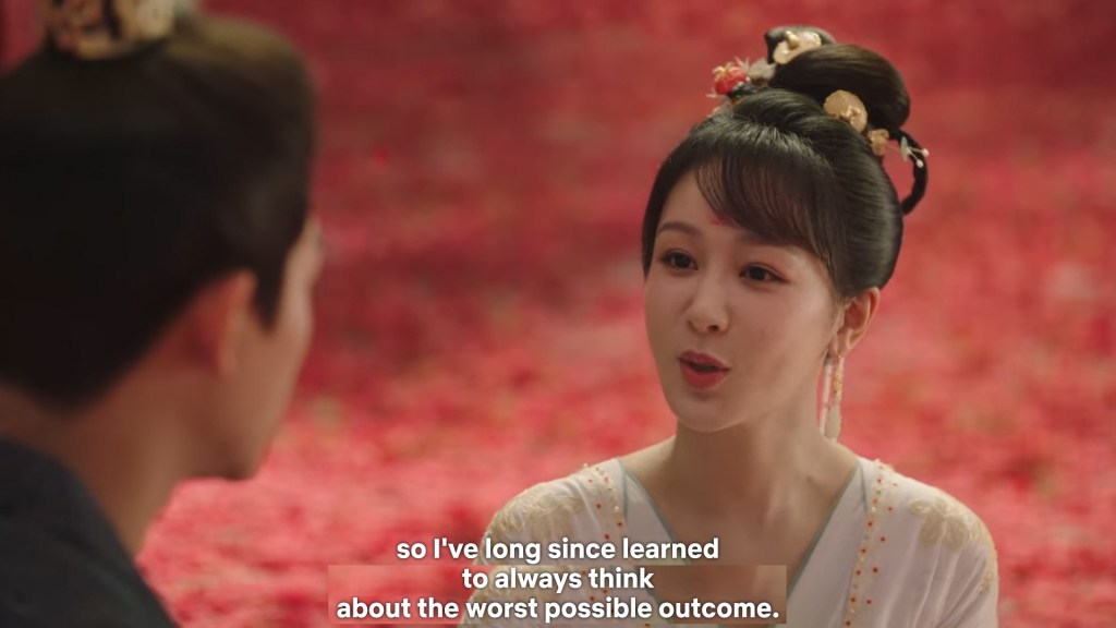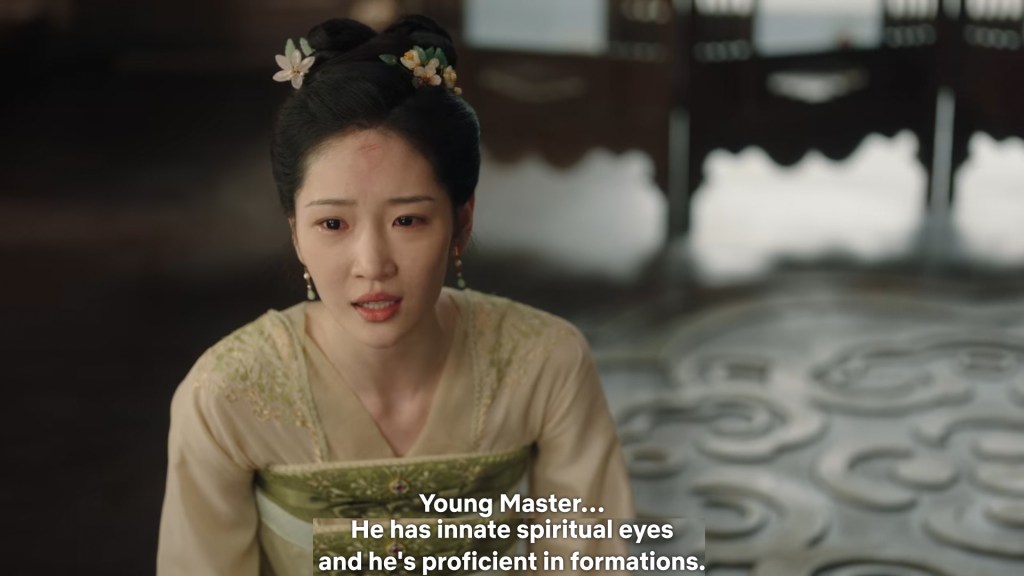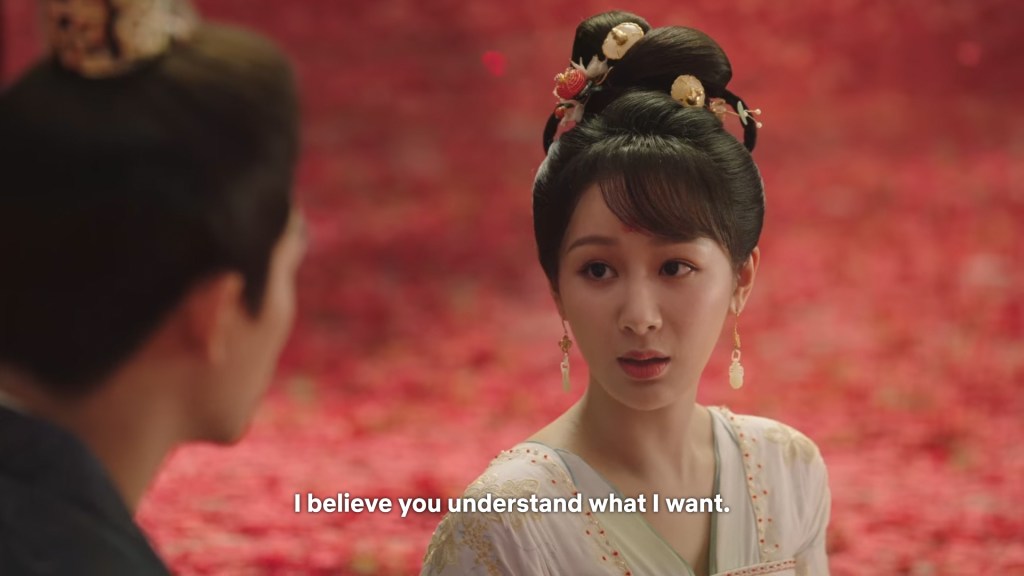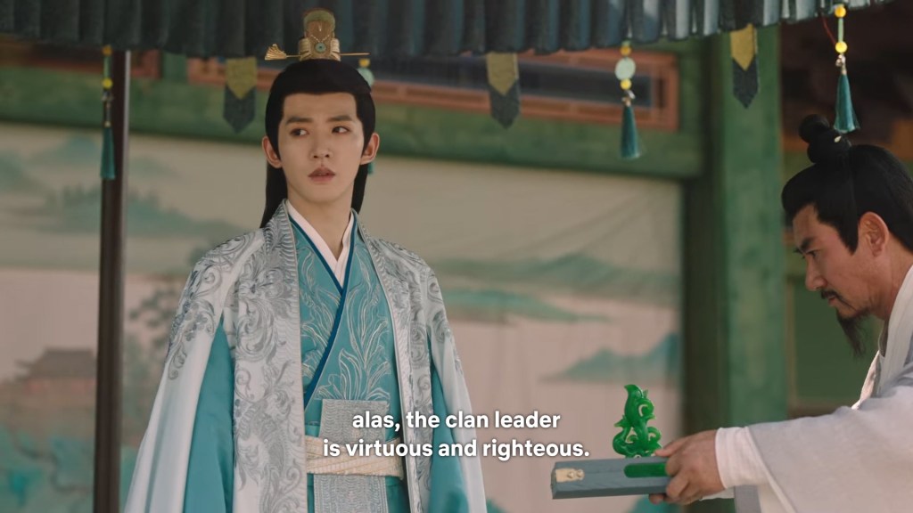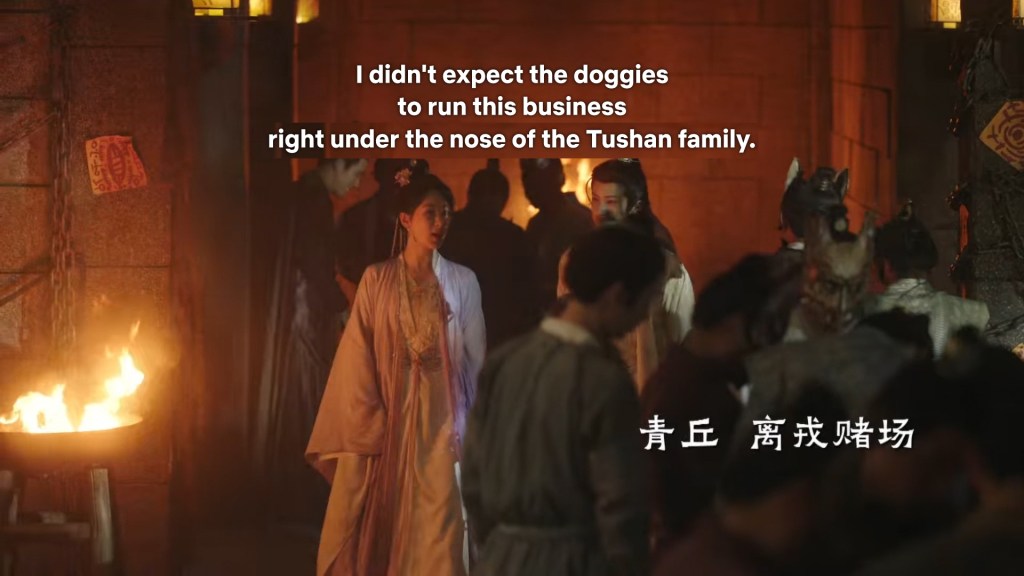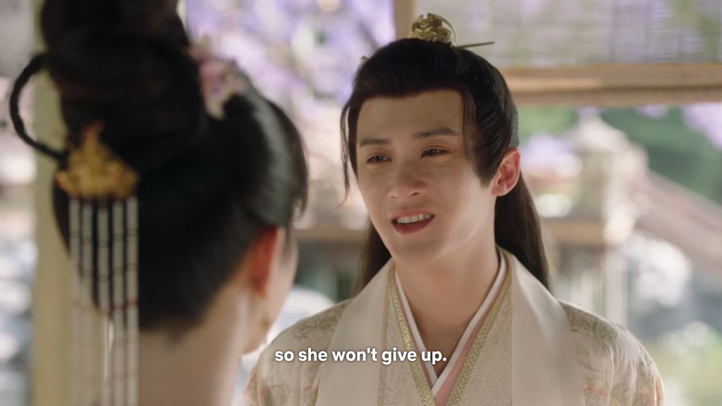 Fangfeng Bei said ” I heard from my sister that Jing did not want to become the clan leader. He had knelt in front of the Grand Madam’s room for a whole day to cancel his engagement. If he really won’t become the clan leader, knowing my sister, she would have found a decent way to cancel the engagement. But now Tushan Jing is the clan leader, her years of hope is right before her, she won’t give this up.”