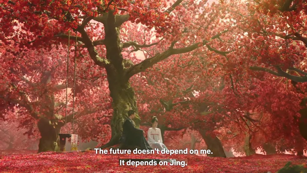 As both of them stood under the Osmanthus tree, Xinyue asked ” Xiaoyao, why would you choose Jing over my brother? How is my brother inferior to him?”