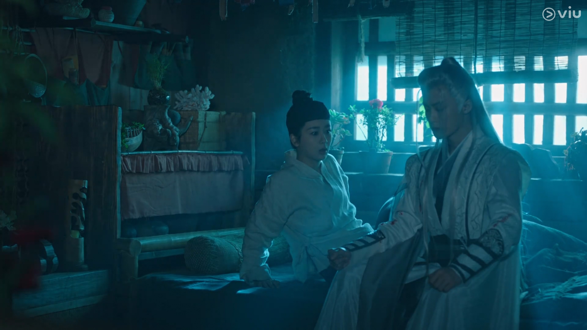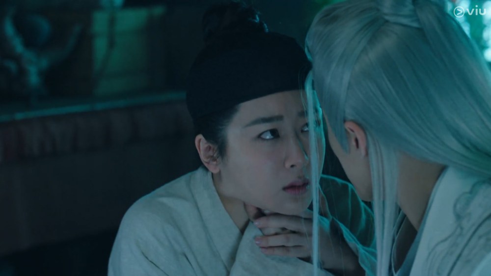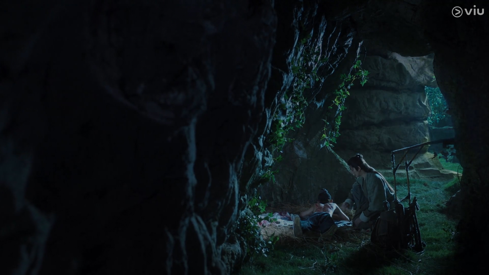 Jing locates the injured Xiaoliu in the cave and brings her back to recuperate.