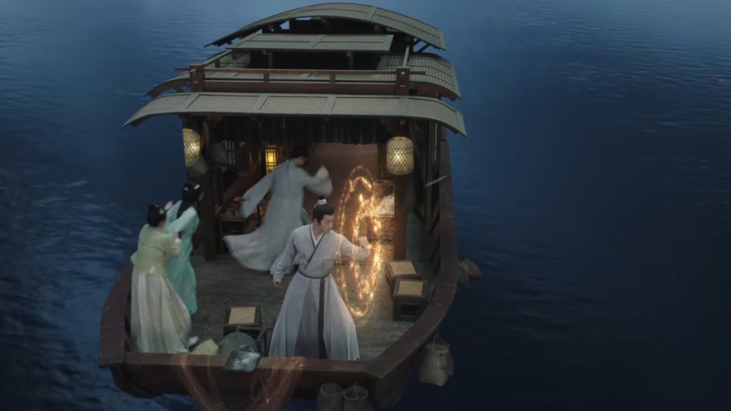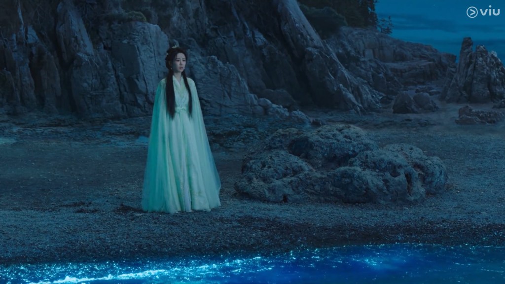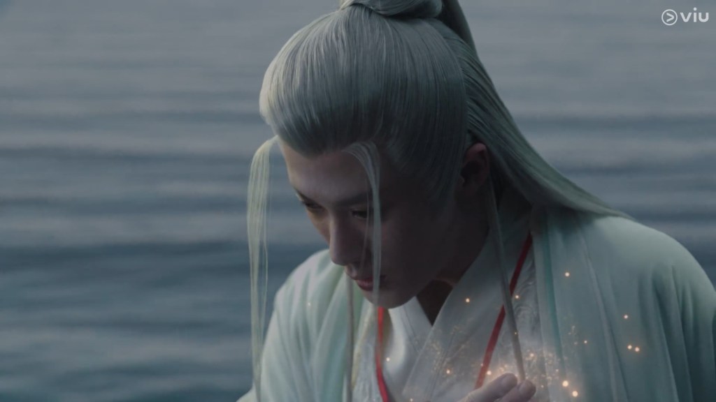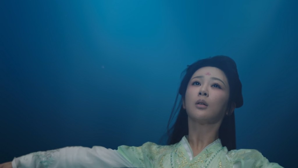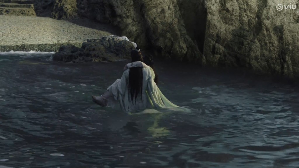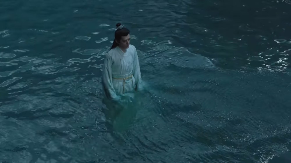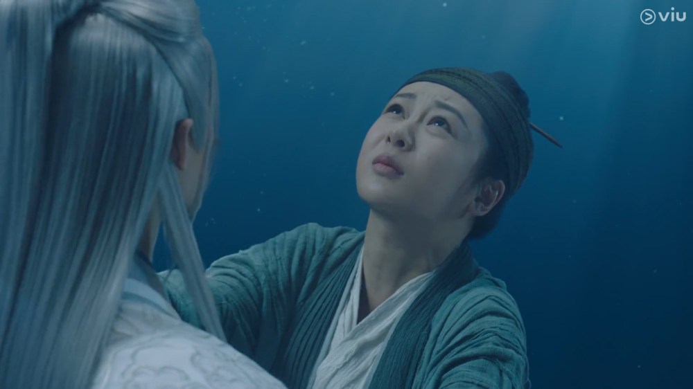 As Xiaoyao is overwhelmed by exhaustion, Jing suddenly appears by her side and brings her back to shore.