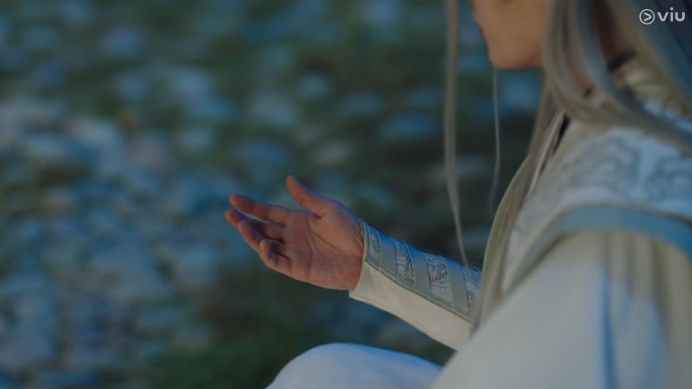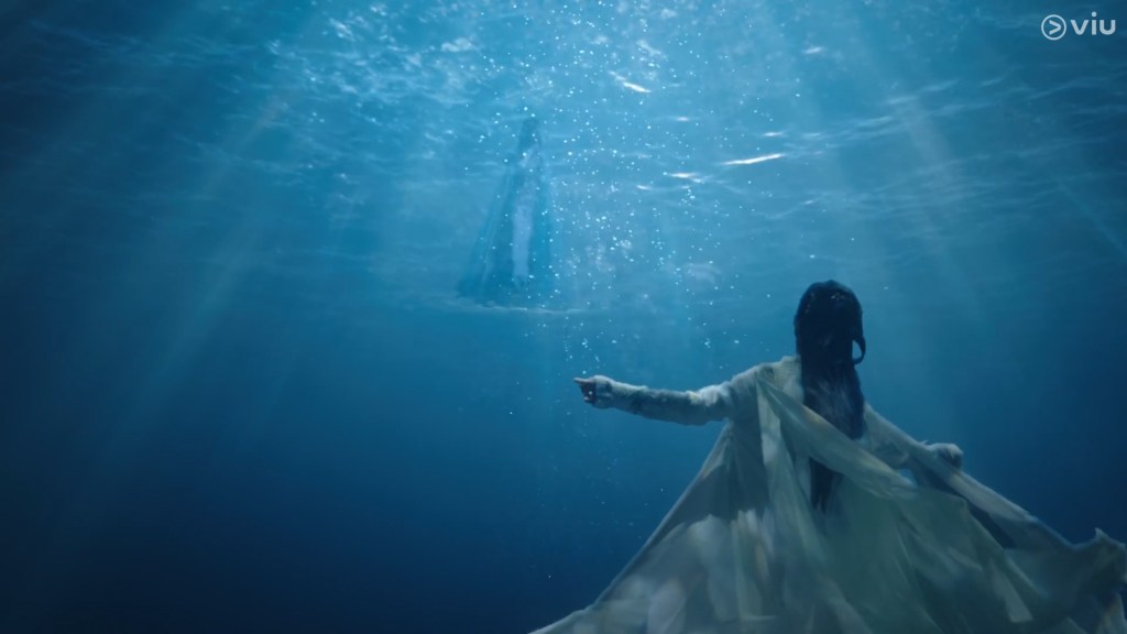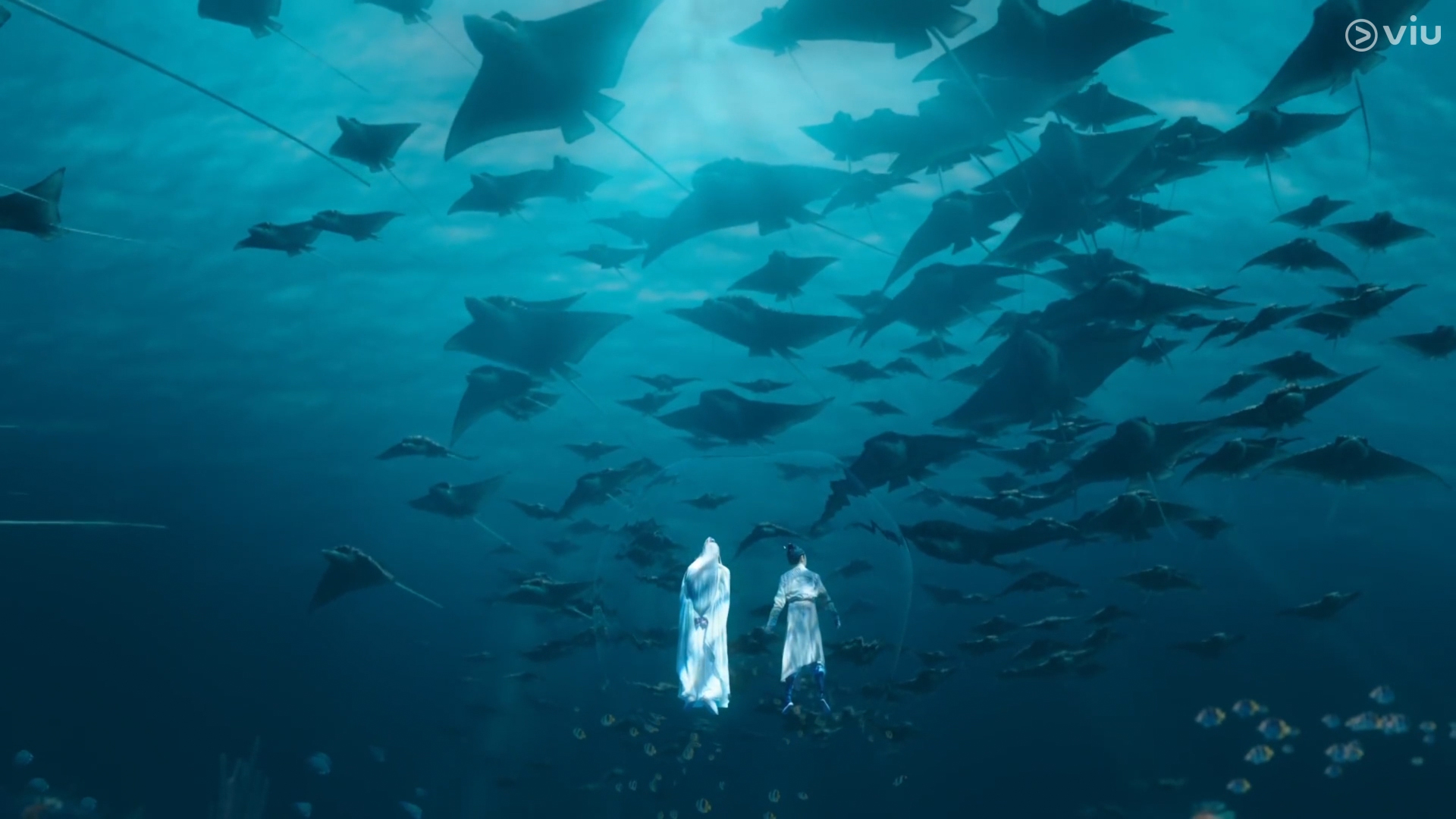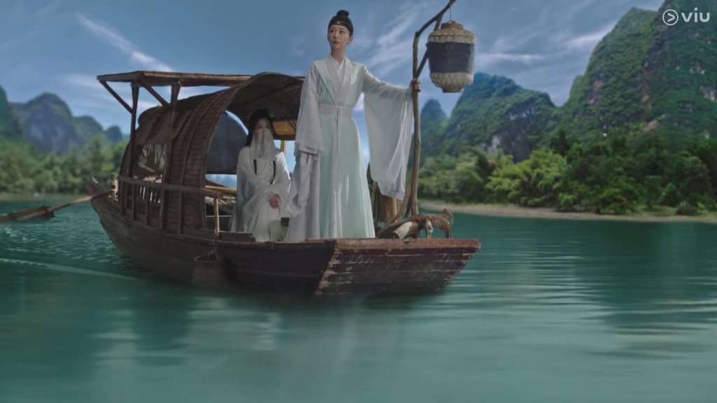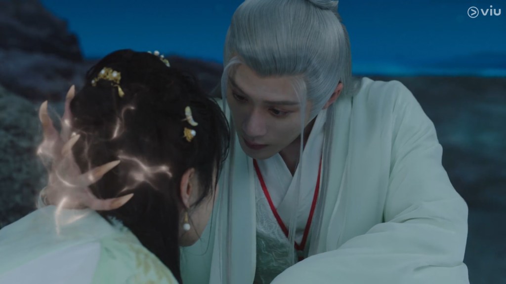 As Xiaoyao is overwhelmed by exhaustion, Jing suddenly appears by her side and brings her back to shore.