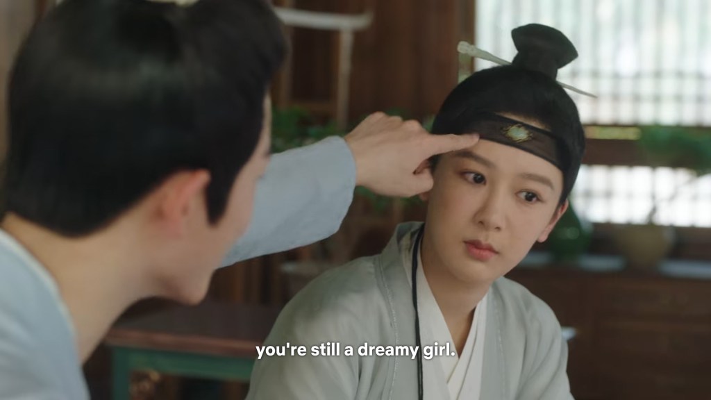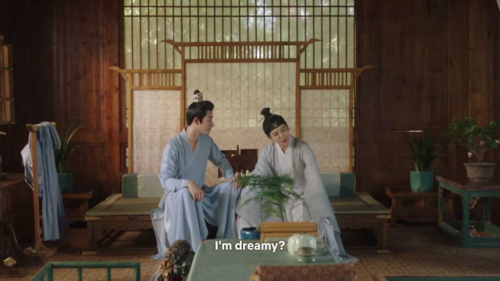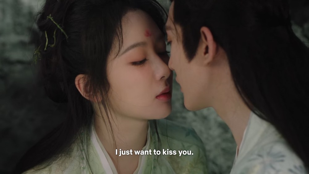 Xiaoyao wants to cheer Jing up. She tells him that ‘someone forced her to kiss him last night’ but she offers her first kiss to Jing. He was tempted to kiss her but held himself back and only kissed her forehead. She wonders why he won’t kiss her.
