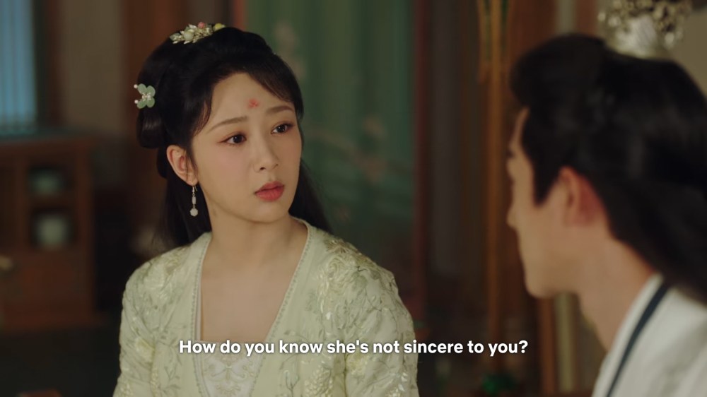 She remembers what Jing told her, and verifies with Cangxuan about the sincerity of women.