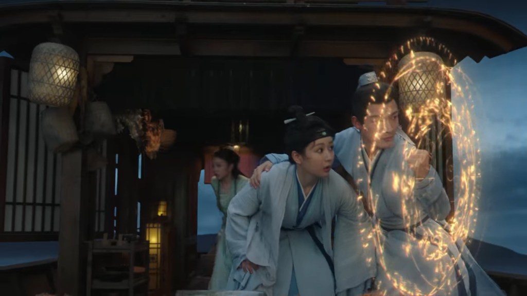 Xiaoyao escapes with Nian and Haitang from the sudden attack by Fangfeng Yiying.