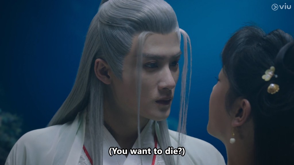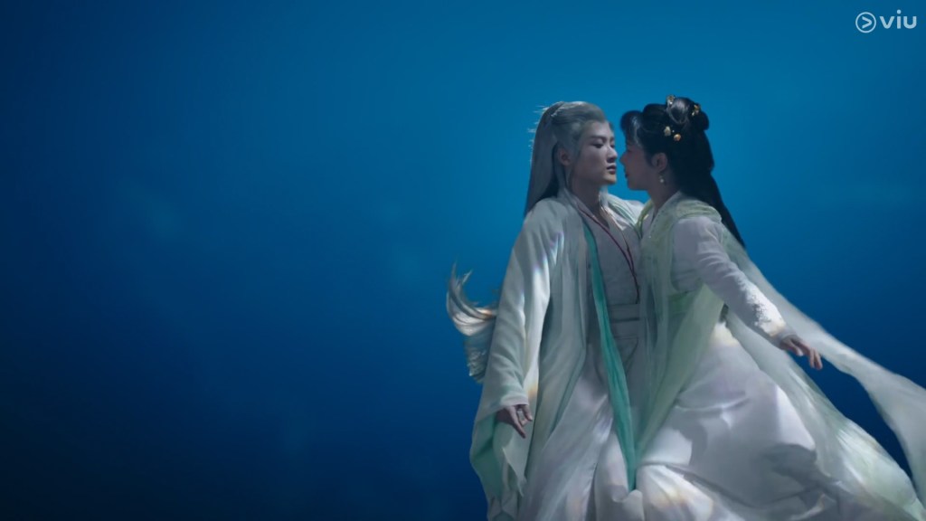 He drags Xiaoyao into the depths of the sea and offers his lips for survival.