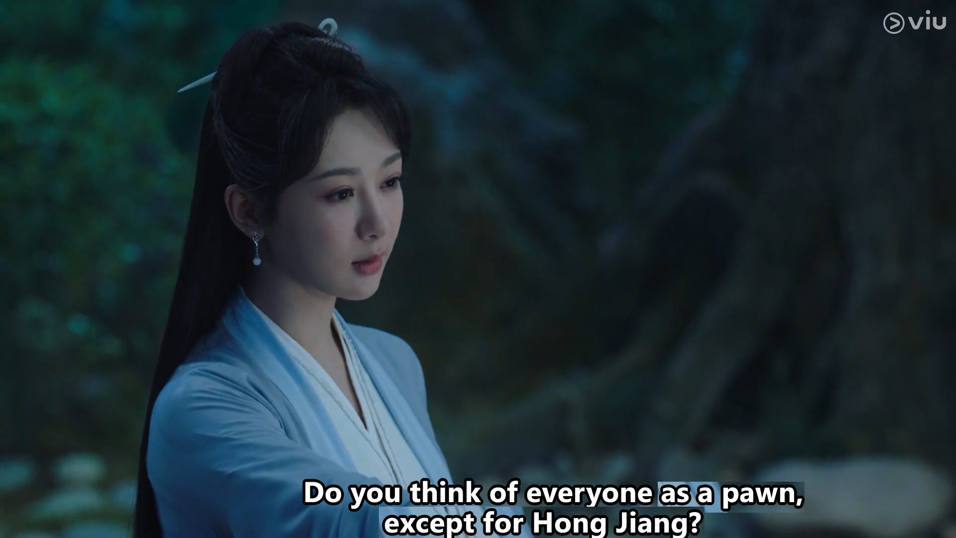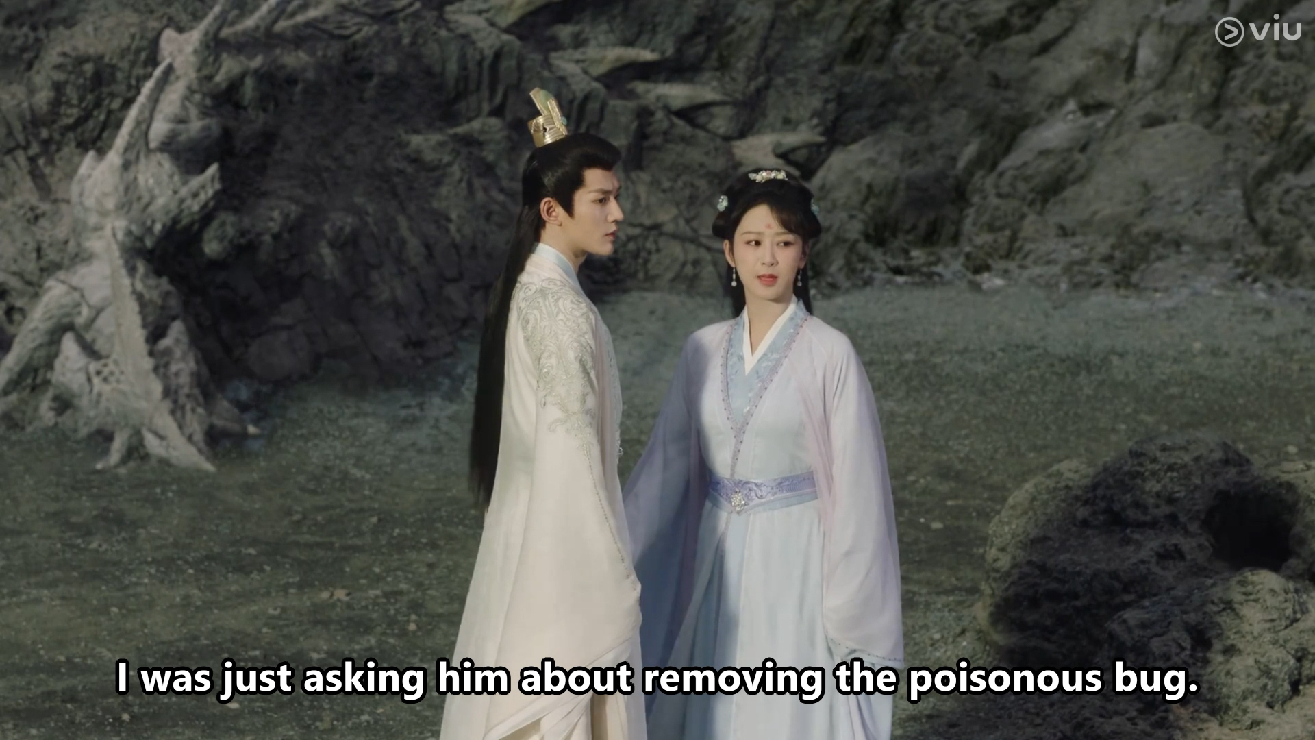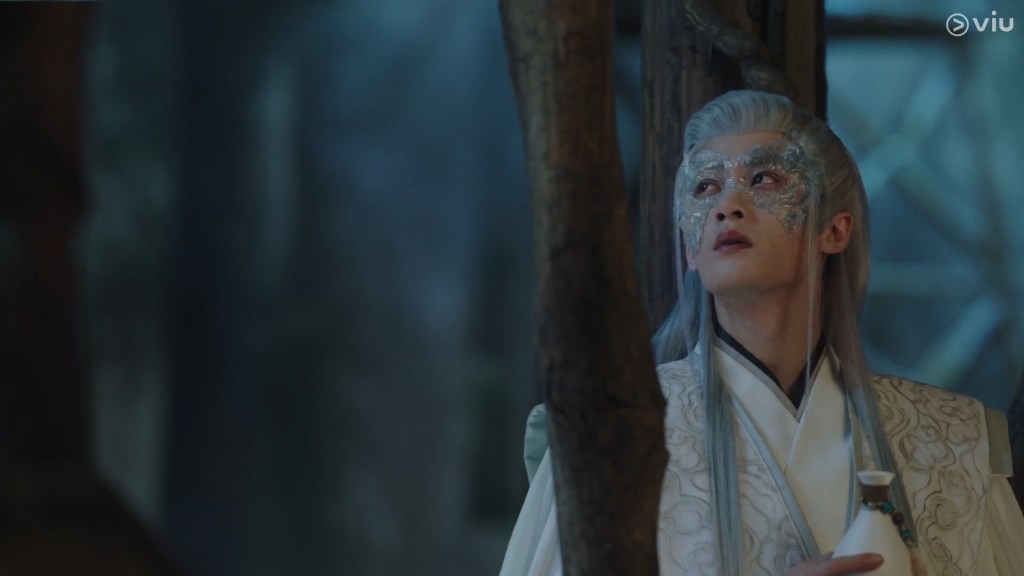 When Cangxuan saw the couple at Mount Jade after Jing’s return, he thought Xiaoyao and Jing looked like the bamboo under the moonlight – Xiaoyao in the white gown of the Queen Mother and Jing in his green robes.