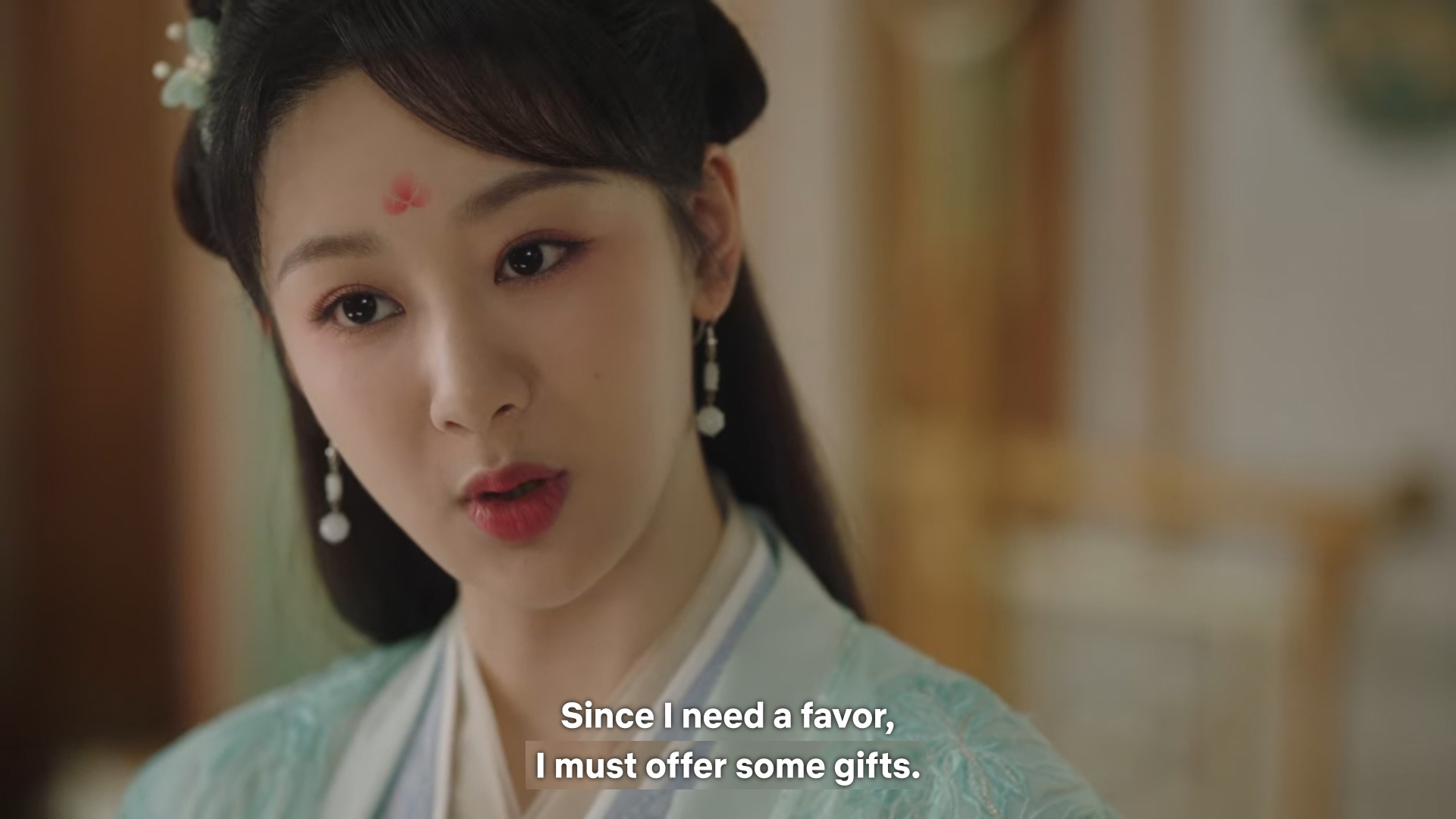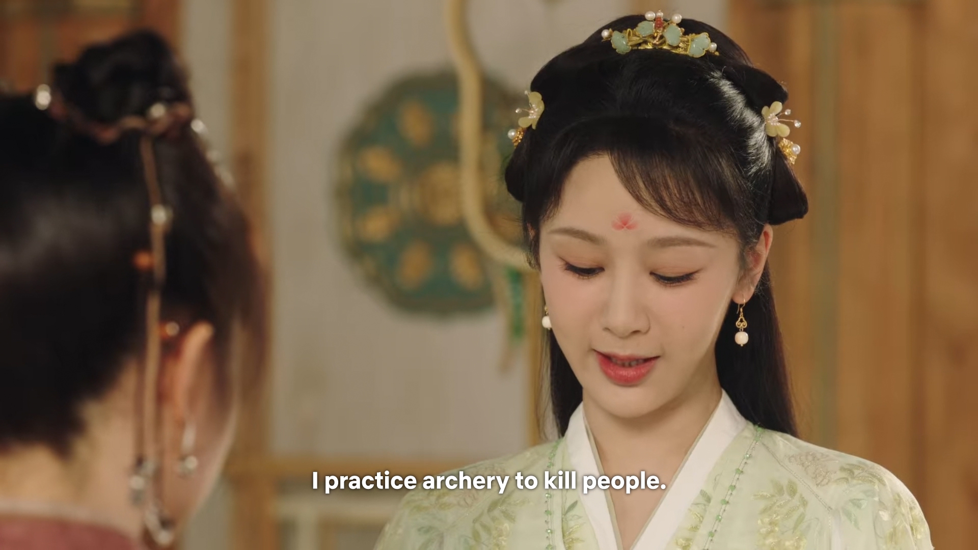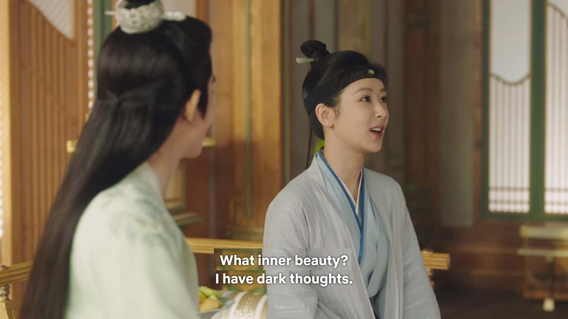 When Cangxuan saw the couple at Mount Jade after Jing’s return, he thought Xiaoyao and Jing looked like the bamboo under the moonlight – Xiaoyao in the white gown of the Queen Mother and Jing in his green robes.