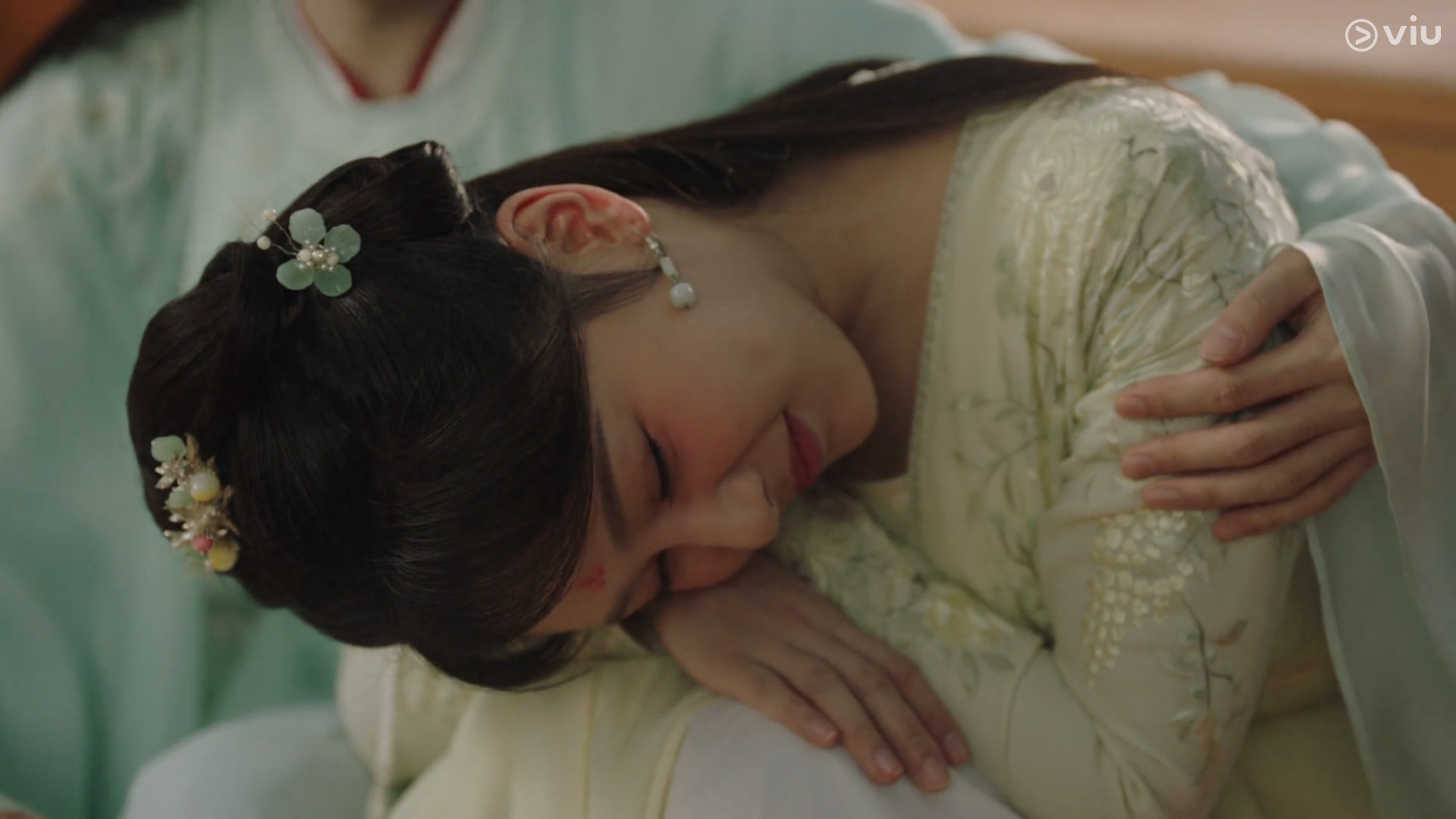小夭一头扑进了璟的怀里,泪水滚滚而下,呜呜咽咽地说:“璟,璟,你终于回来了!”